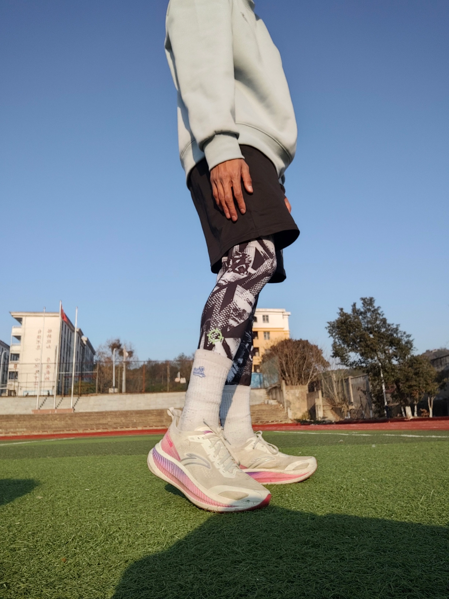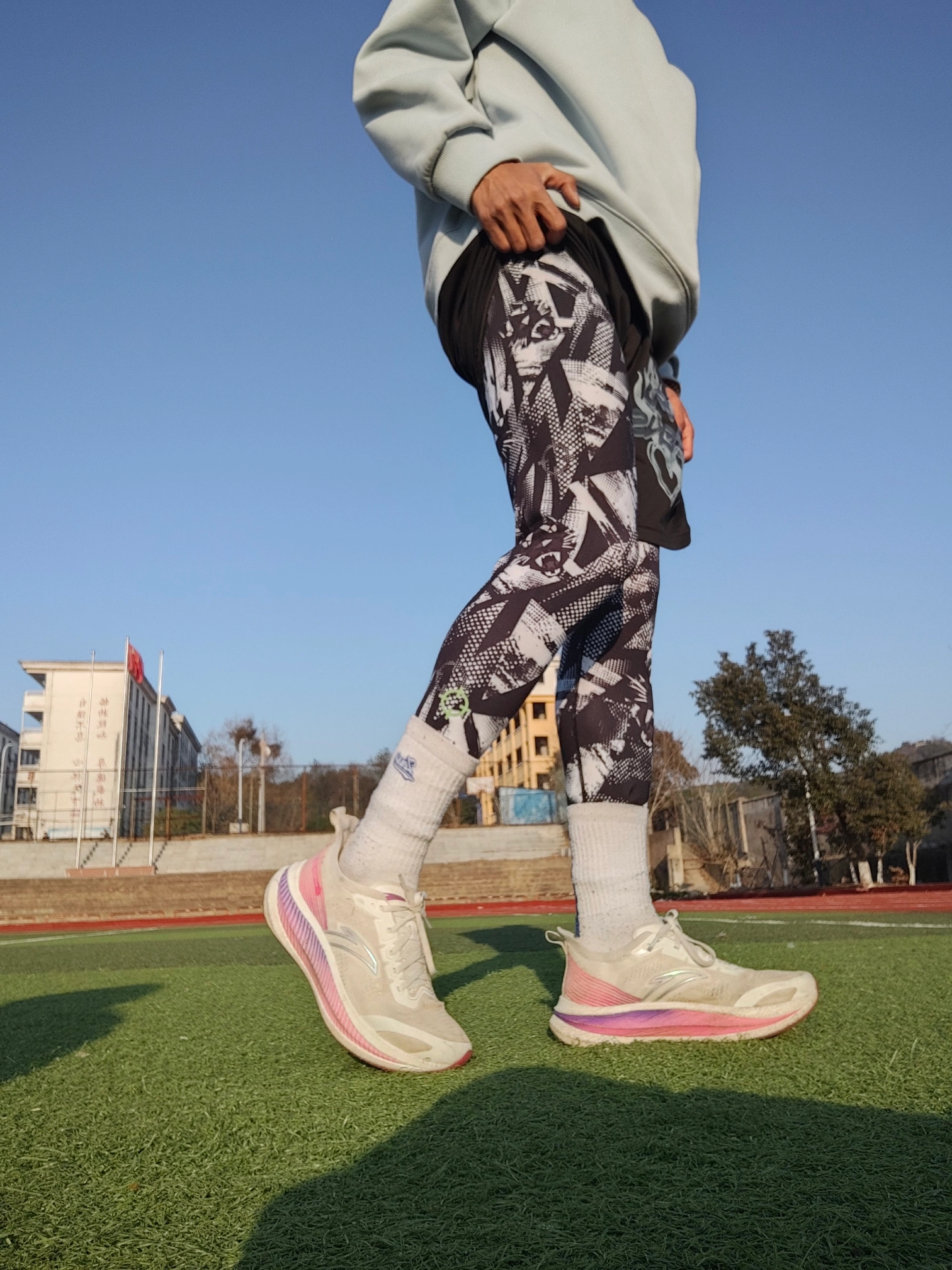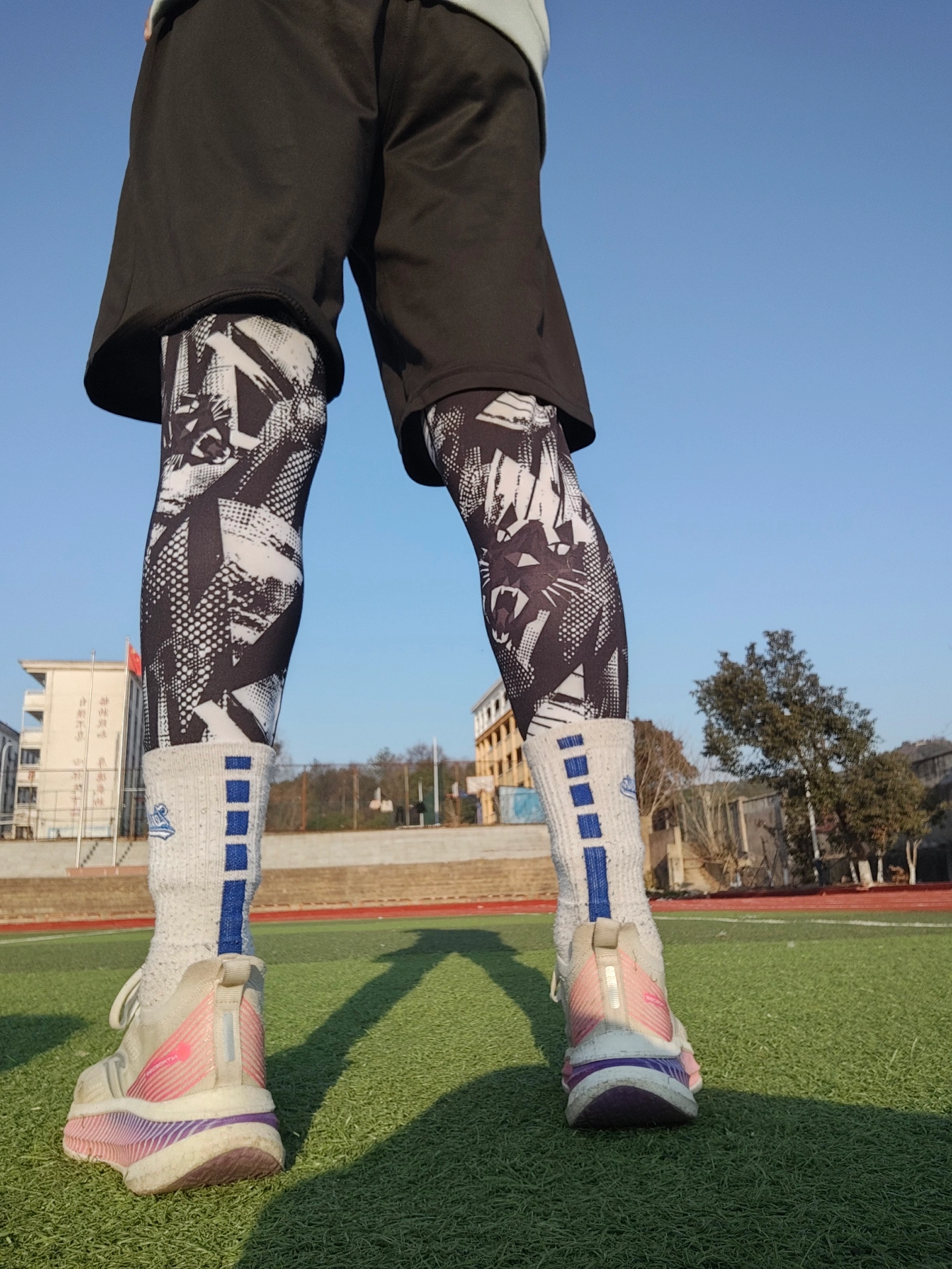 今天穿这个紧身裤去训练,感觉还是挺不错的,很帅,这个紧身裤是准者篮球 的一款 这个是涂鸦款的,外观比较好看,虽然有点花哨,但是很帅 这个四季都可以穿,透气性不错,不会感觉到闷热,即使运动出了很多汗,还是会比较的舒服 现在天气比较冷,穿这个也不会那么冷,再搭配个短裤,训练刚刚好 你们体育生是不是也喜欢这样的呢