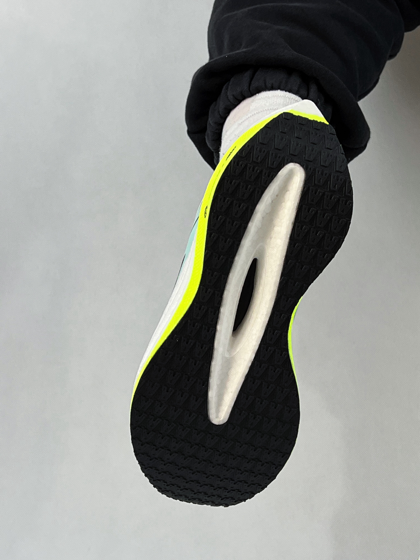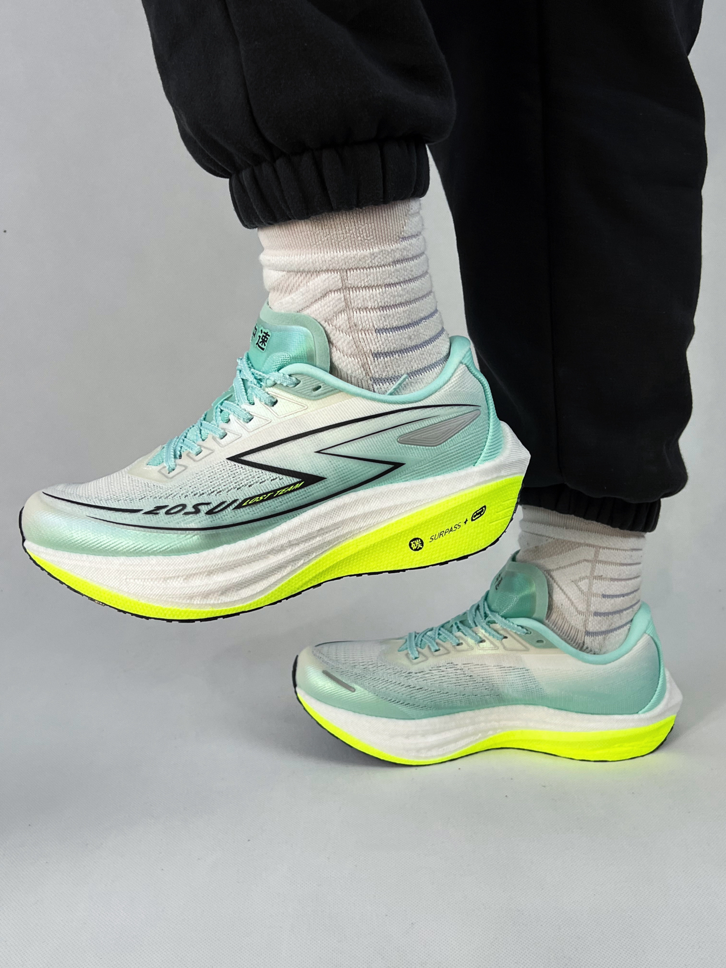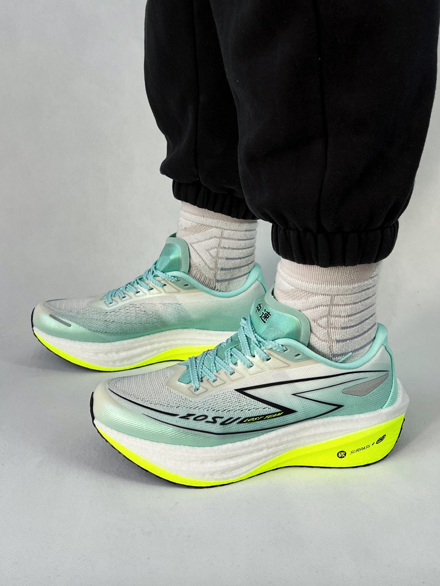 今天和大家分享一双高颜竞速跑鞋 就是这双中速 无垠1.0 清新绿 实物上脚颜值还是蛮酷的哦 网纱鞋面的透气性不错 中底搭载了超临界发泡材料+碳板 脚感很韧弹、启动回弹不错 外底的耐磨防滑问题不大 对于体测竞速、训练、有氧等场景蛮推荐 尺码选购建议正码 鞋 双 双鞋了 好礼物