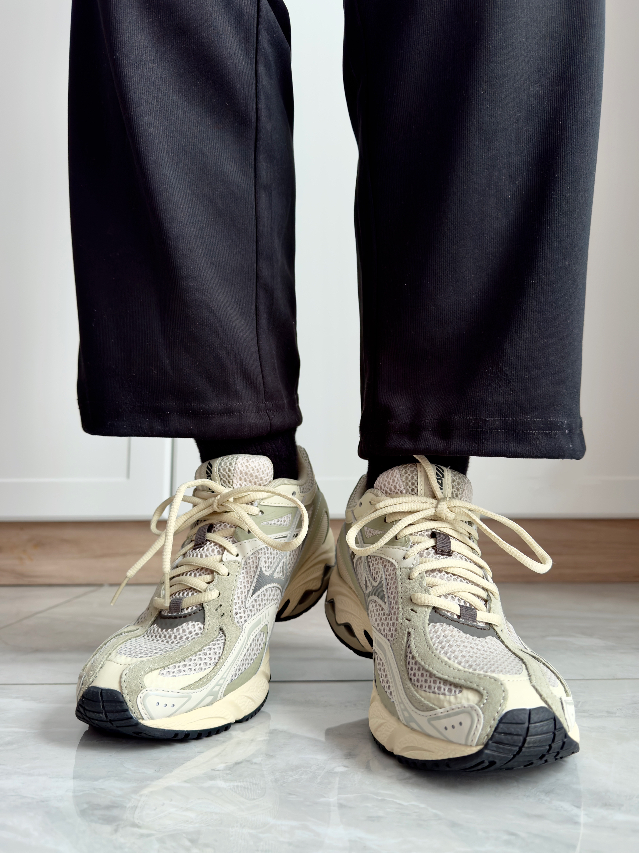 这个低饱和度的灰绿色,看着真舒服 既复古又百搭,很有春季氛围感 美津浓的鞋型设计我一直都很喜欢 穿上脚轻便舒适还十分柔软 鞋面网布和皮革拼接,层次丰富还透气 无论是通勤休闲还是运动穿都OK 防滑耐磨的橡胶鞋底,走路很有安全感 尺码方面不偏码,正常码选择即可~