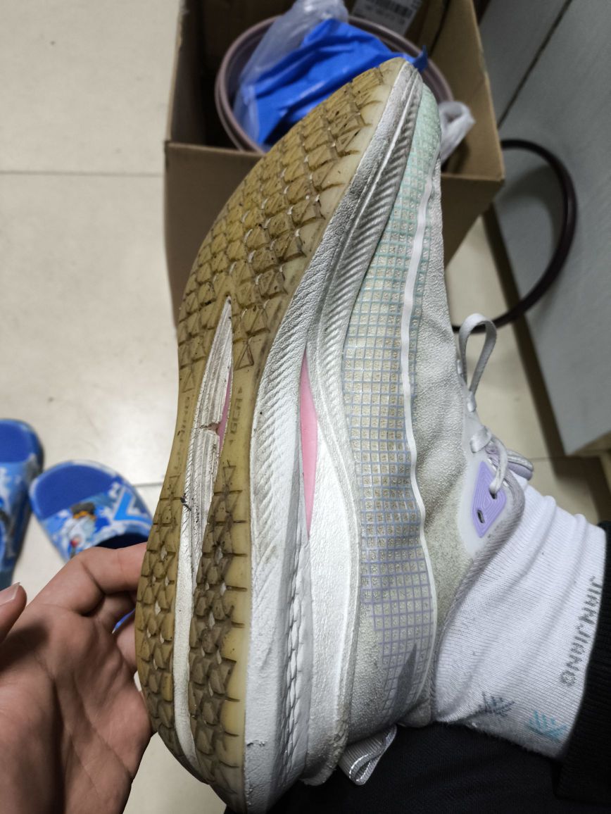 今天给大家看看我这双李宁赤兔7 Pro目前的战损情况,中底的䨻材料,已经开始有颗粒掉落了,就是大家俗称的开始掉渣了[愤怒_blue][愤怒_blue][愤怒_blue][愤怒_blue] 这双鞋也是陪我跑步了许多步,我穿着最主要是慢跑,还有平常通勤,所以各种各样的路面都用过,还是挺不错的[狗头_blue][狗头_blue][狗头_blue] 我选的配色是樱花粉,这双鞋子和这个配色比较推荐大家通勤用...