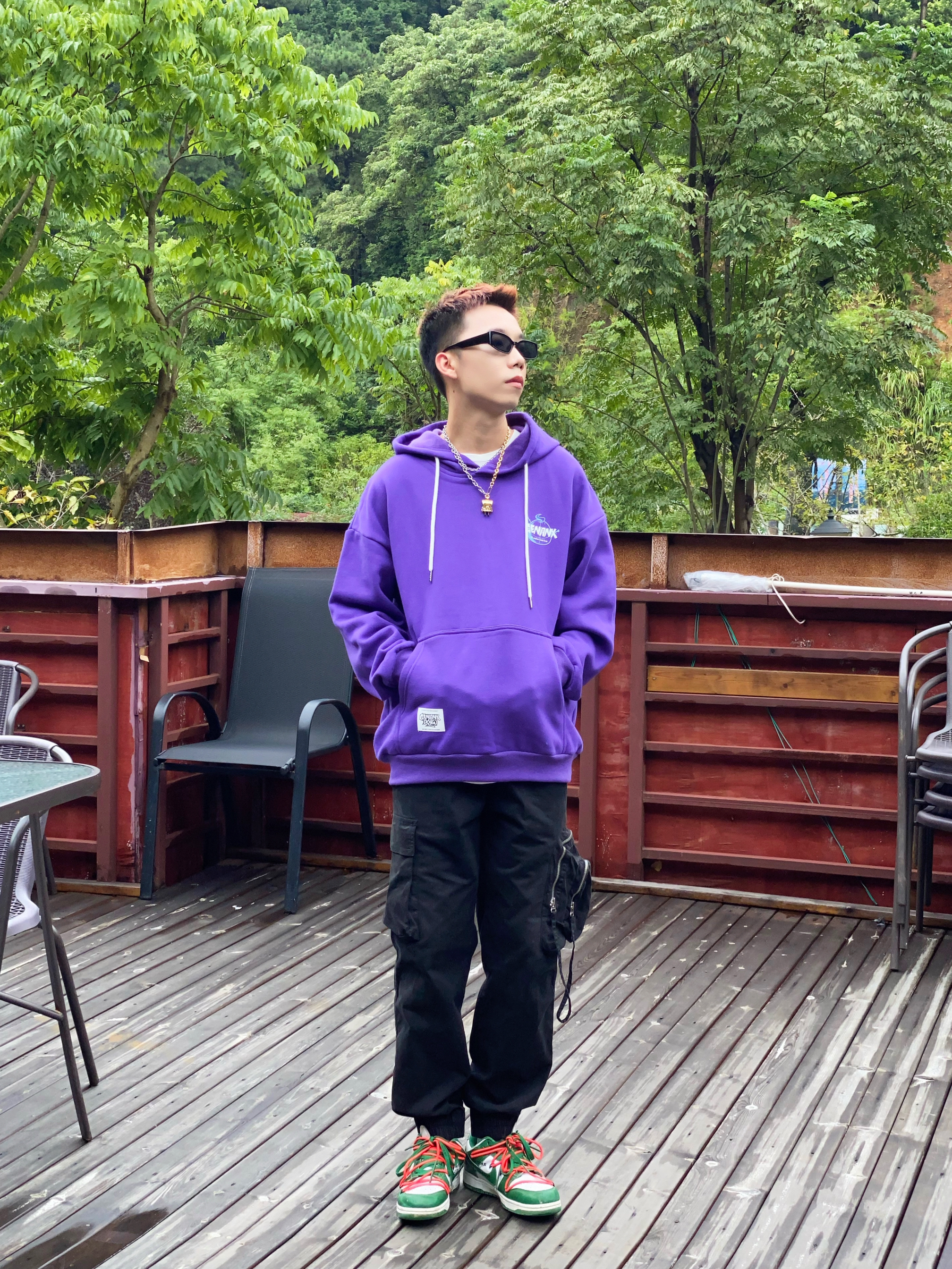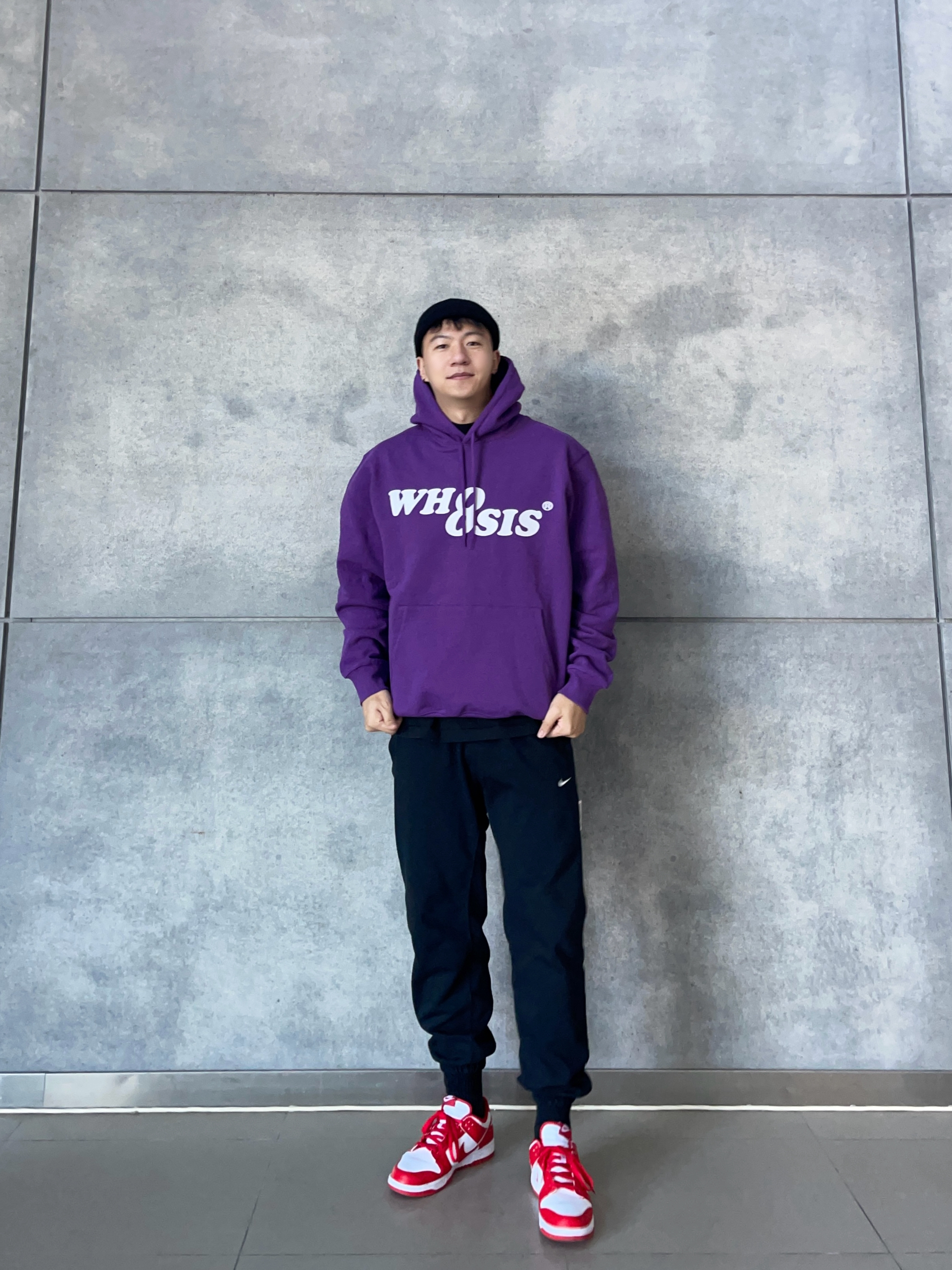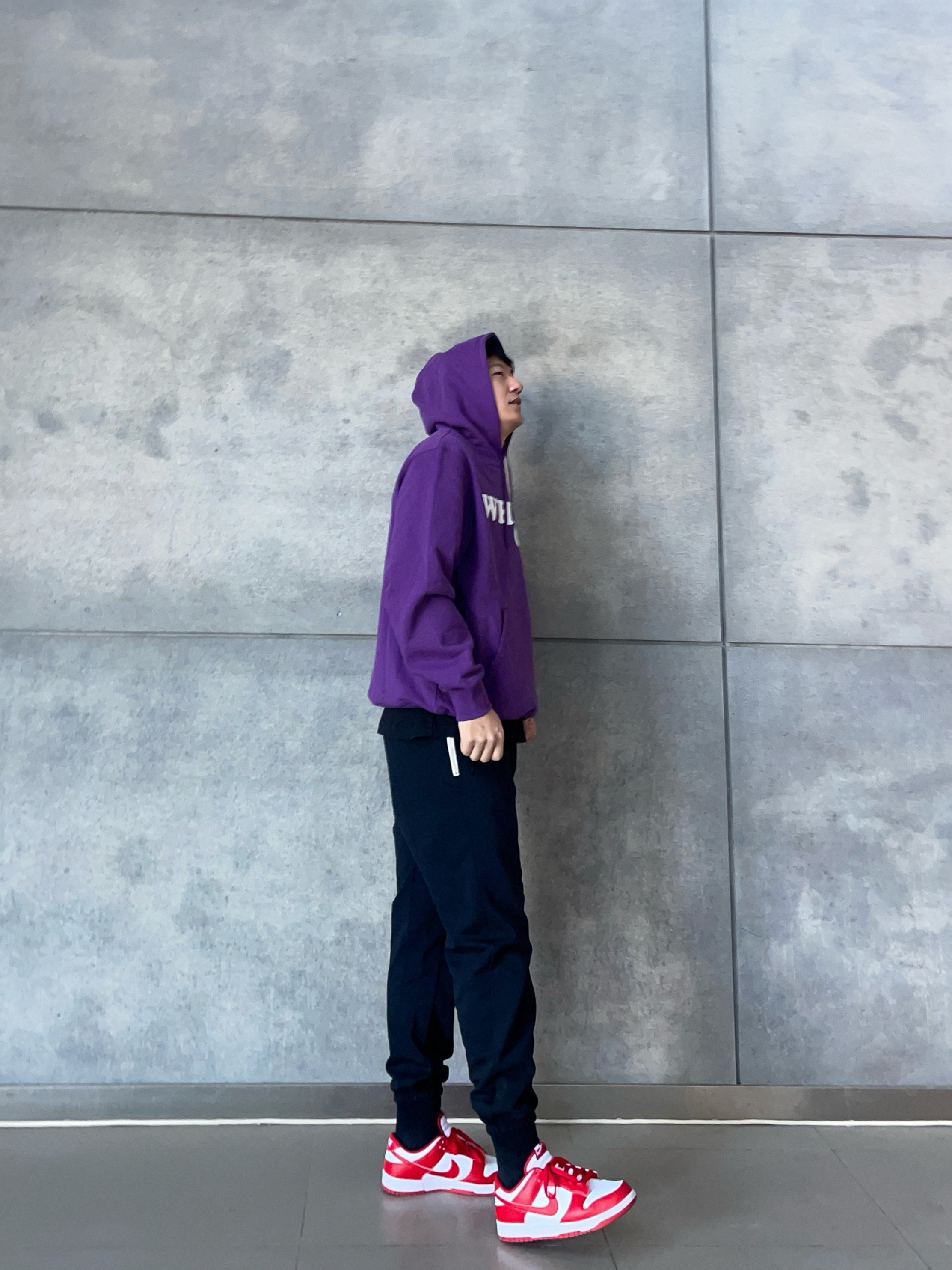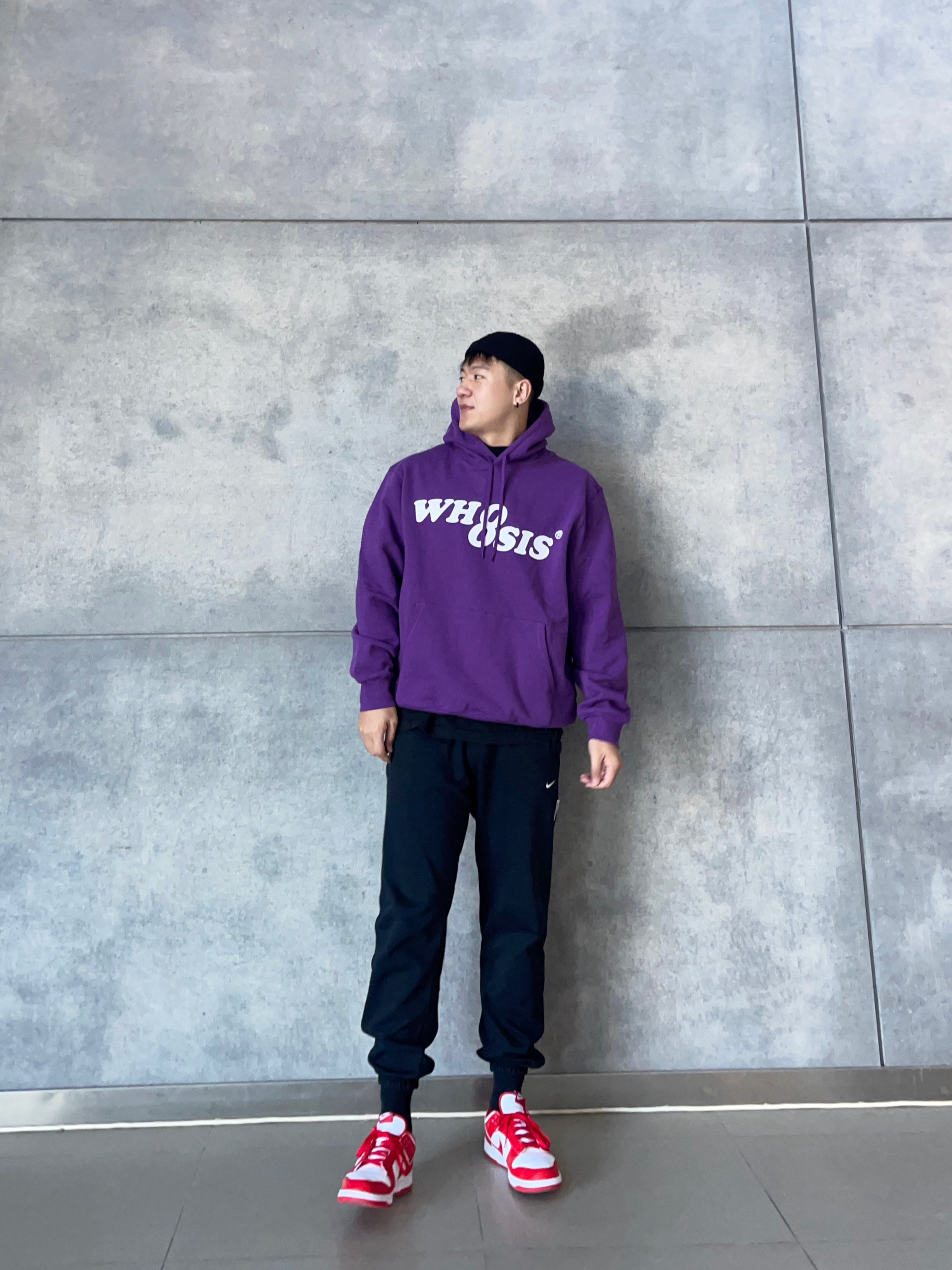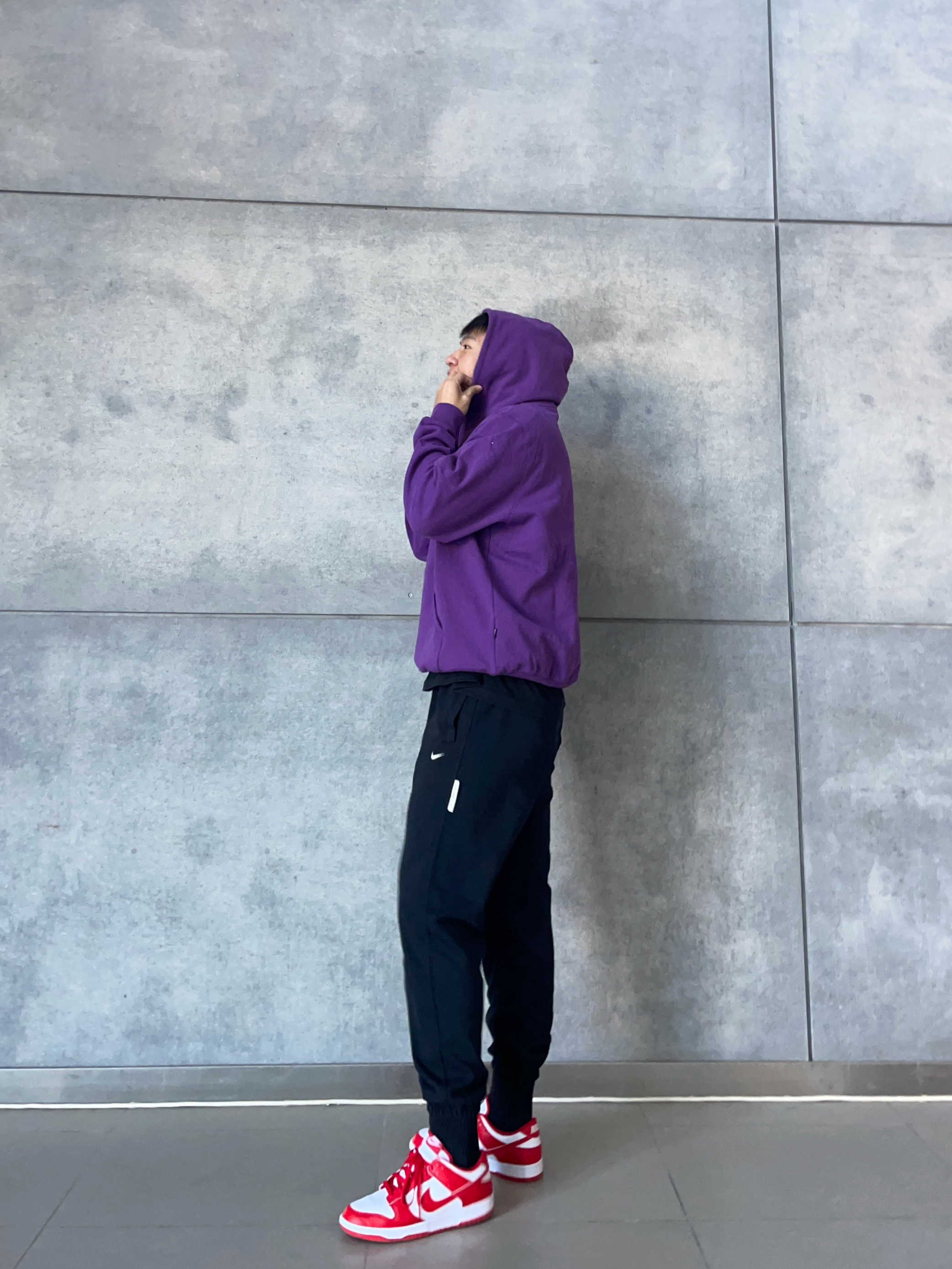 💜卫衣超帅 紫色重磅卫衣,oversize版型+复古字母印花, 秋冬叠穿不臃肿💥 显白又自带慵懒滤镜~ 🖤束腿卫裤 Nike经典束脚卫裤, 运动or出街都可以~ 👟Dunk红白 红白经典撞色+加厚鞋舌, 复古校园感拿捏👌 📸【搭配公式】 美式街头混搭校园感, 日常上课/炸街回头率稳了~ 👦🏻:188 | 85 🧥:XXL 👖:XXXL