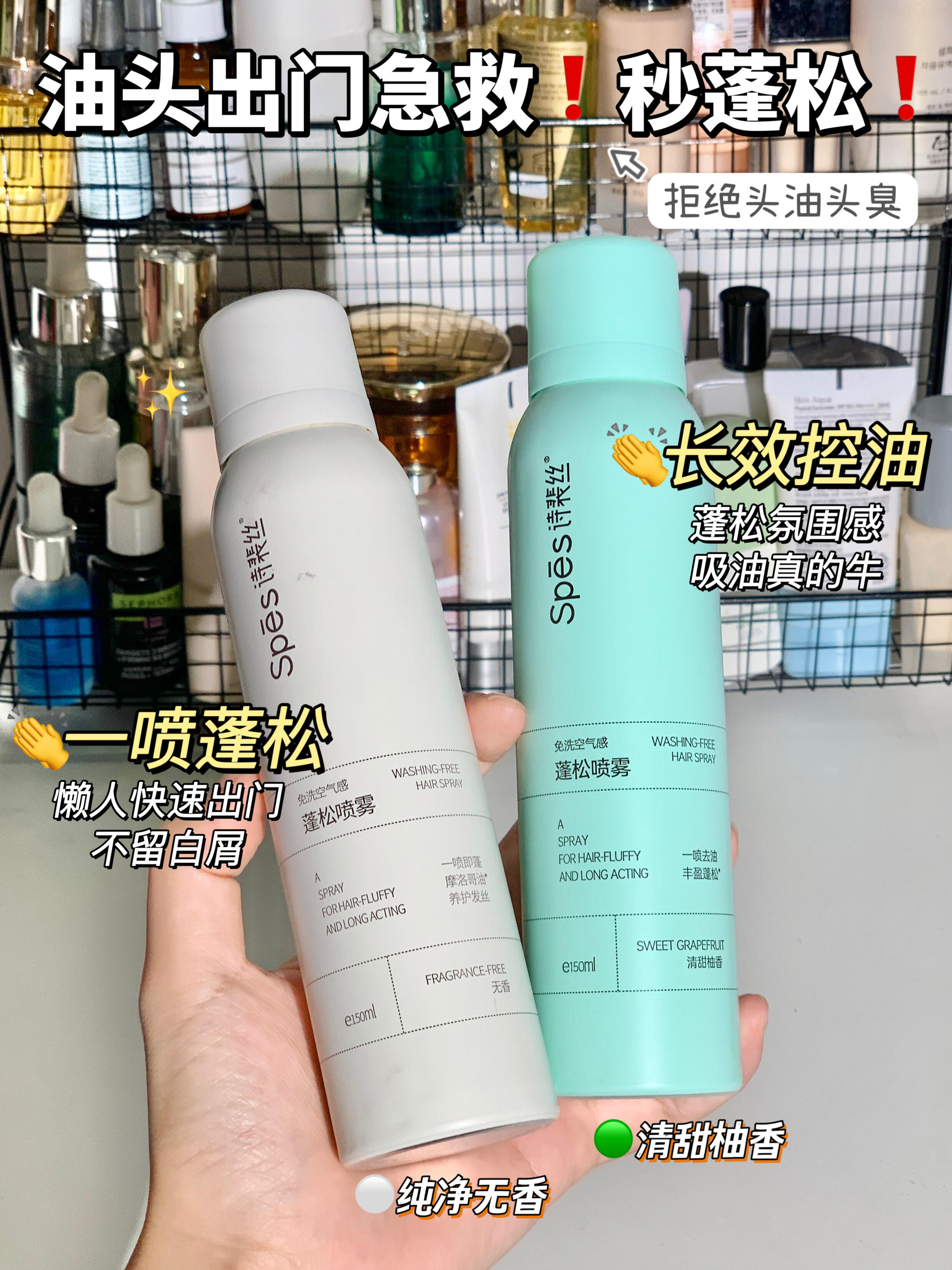 本篇笔记关联了Spes 免洗空气感蓬松控油干爽干发喷雾套装 去异味 青柠150ml+无香150ml等商品,为用户提供真实的使用体验和购买参考。