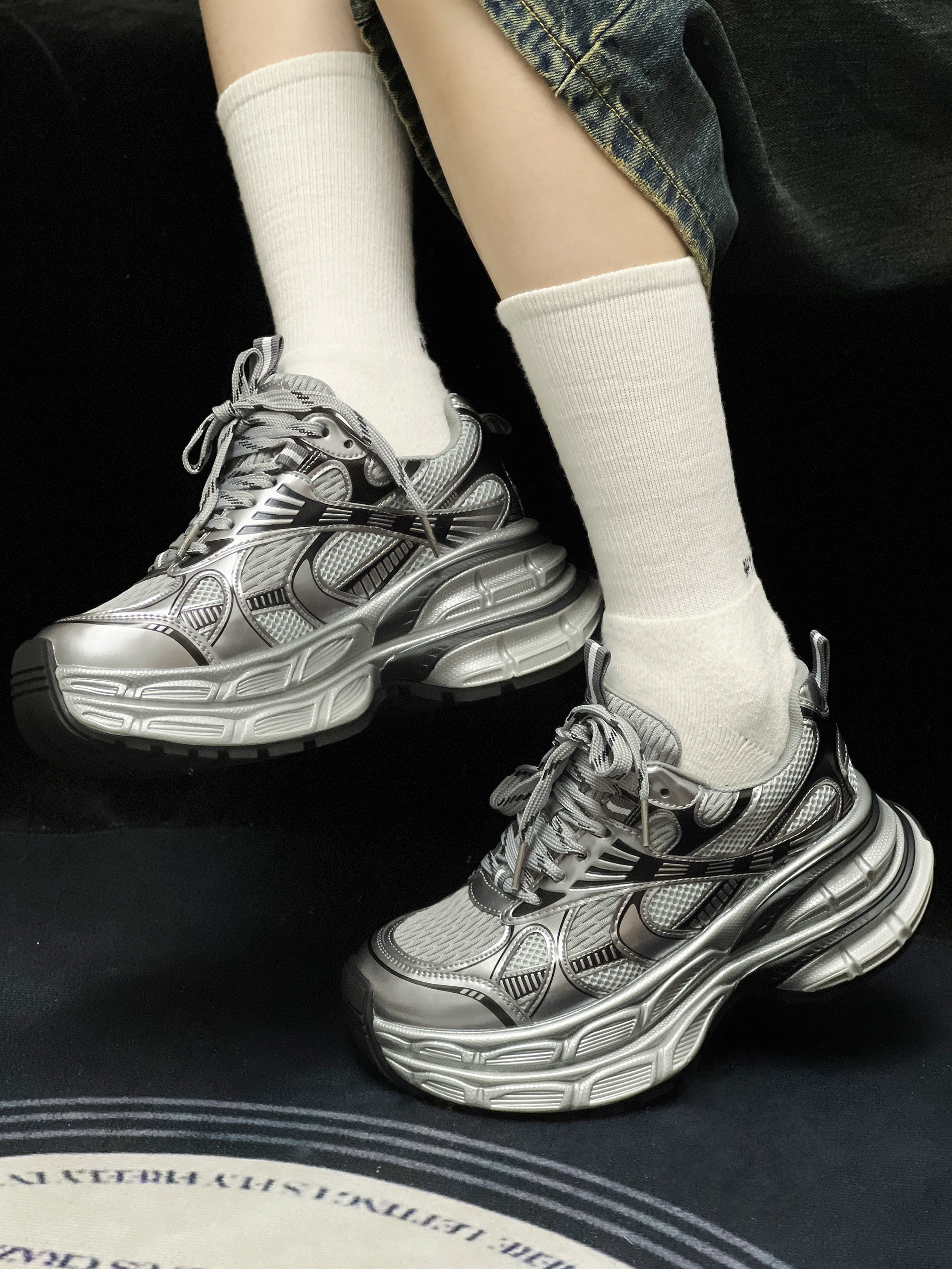 小个子狂喜★∷☡这双鞋子自带7cm增高❕ 🩶巴味十足的银灰老爹鞋👟NewVintage感💯