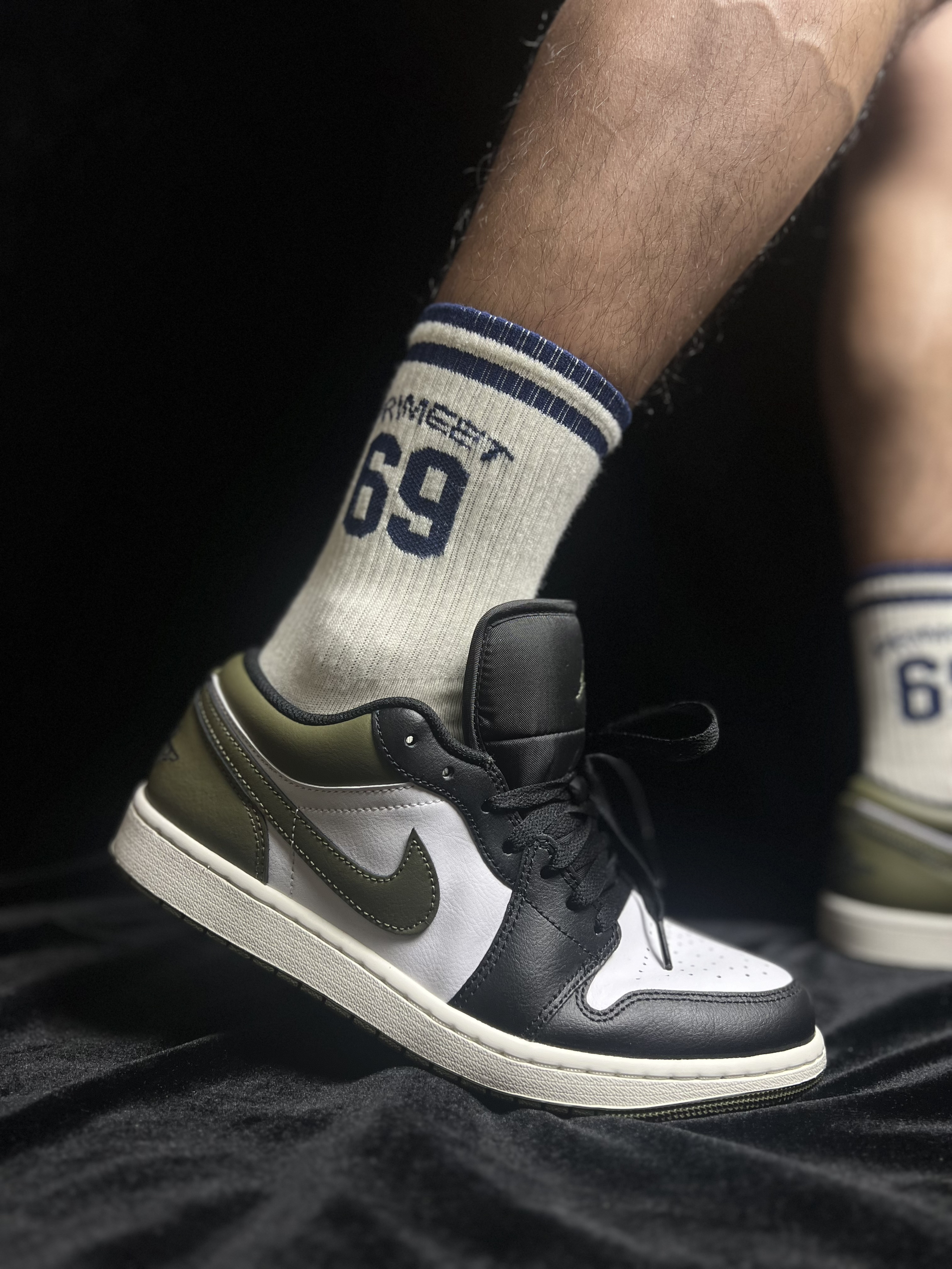 这款aj1配色高冷,鞋型很经典,穿搭太好搭配了,透气性很好,皮革质感不错,是一款高端大气的作品!