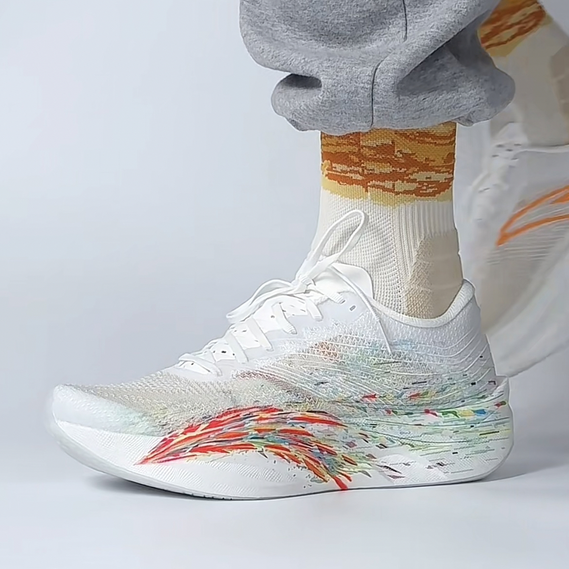 C202是安踏跑马入门的一款鞋,这次的两种配色都是美到我心里了。 第一款,格桑花,设计灵感来源于藏族的五色经幡,格桑花在藏语里又是美好幸福的意思,浅浅的淡绿色和白色的主色调,给人一种宁静的感觉。 第二款,心跳,设计来源于凤凰磐涅重生,整个线条给人一种血脉喷张的感觉。鞋头是银丝,鞋身是红色,给人一种活力的感觉。 配置上,鞋子采用的上下两层氮设计,中间嵌入了一块滑动碳板,有助于提高整双鞋在跑动时的推进...