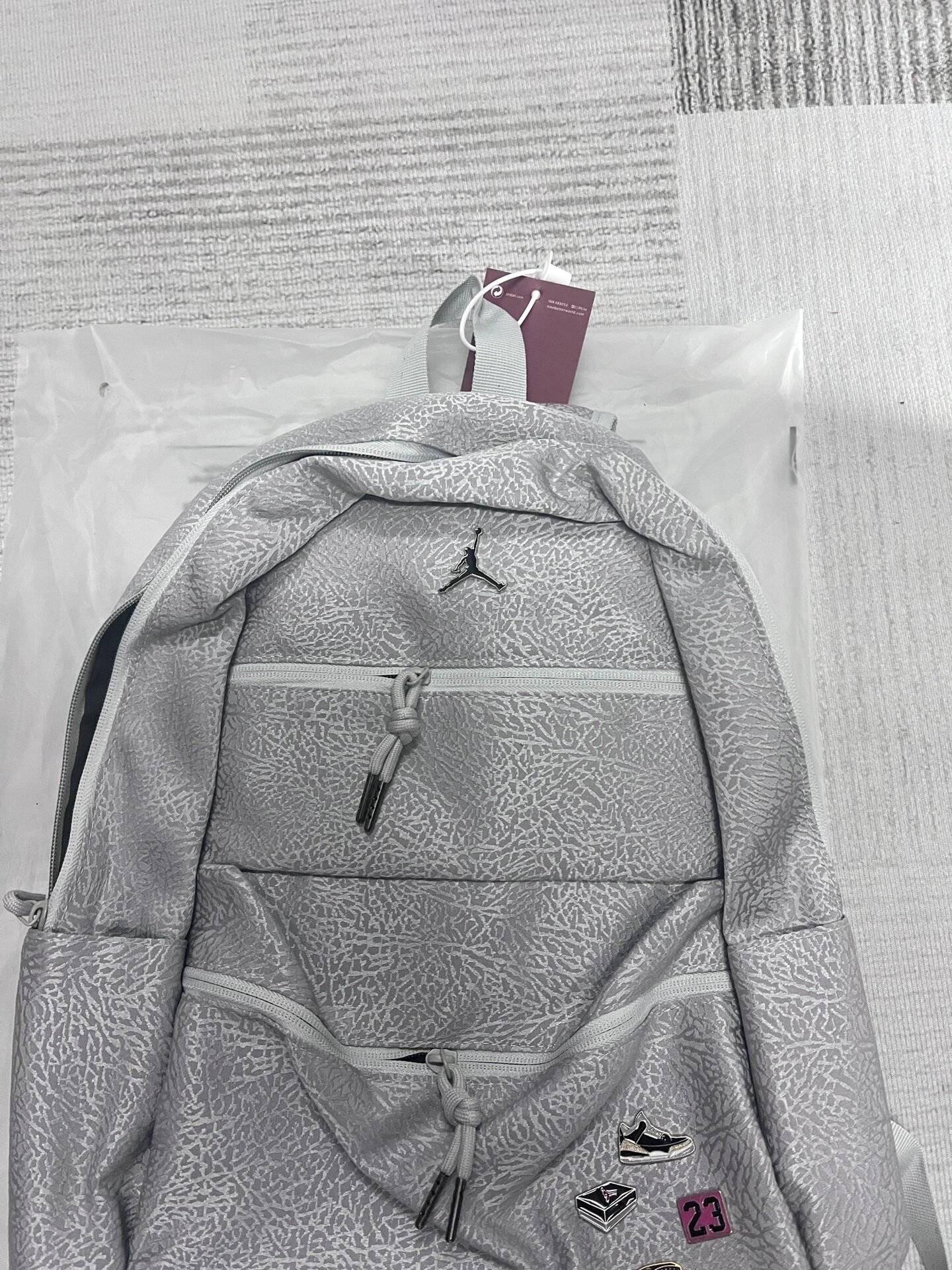 本篇笔记关联了Jordan 爆裂纹金属飞人logo球鞋徽章初中高中生书包篮球包双肩包 水泥灰 9A0090-G3A等商品,为用户提供真实的使用体验和购买参考。