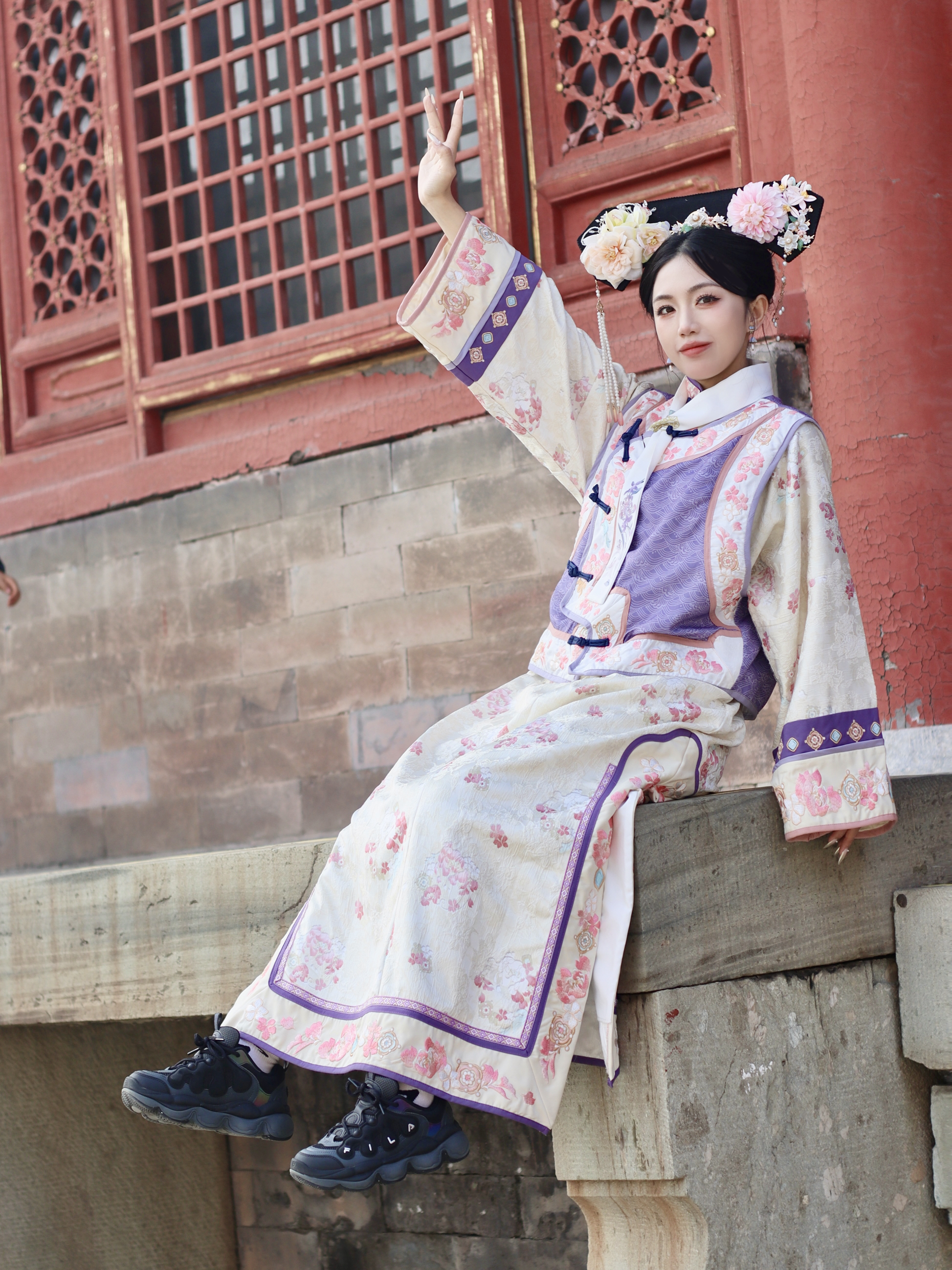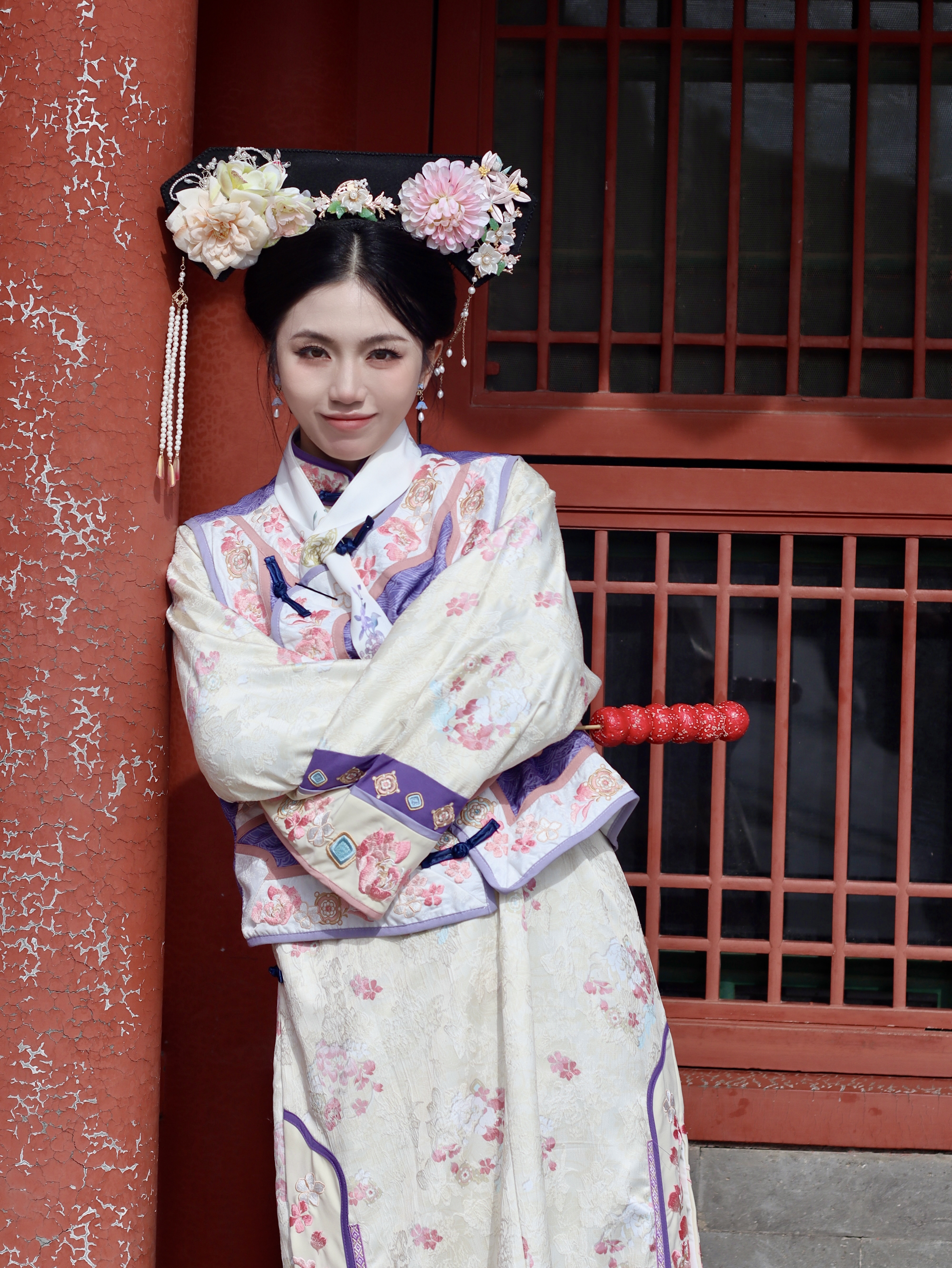 穿格格服饰拍照真的太出片啦 传统的旗装,精致的刺绣,每一处都是东方美学的极致体现。再配上复古的旗头,瞬间穿越回宫廷。 但我这次玩了点新花样,戴上了超酷的墨镜∞ 传统与现代的碰撞,复古又时髦,时尚感直接拉满,手里拿上一支糖葫芦。独特又吸睛,在红墻绿瓦前拍照,氛围感绝了。 无论是去古风景点,这样穿都能成为焦点;宝子们快试试