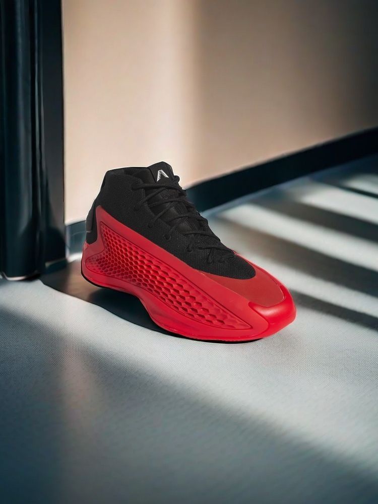 👀今天分享一双adidas红宝石配色的AE1 配色设计来自爱德华兹的母校佐治亚大学,呼应校队球衣配色。 👟球鞋上脚的感受: 1⃣鲜明的亮红色放在鞋身上,颜值简直拉满,如同红宝石一般。 2⃣袜套部分依旧还是是黑色,其余的细节地方则用白色点缀。 3⃣织物+3D打印的蜂窝鞋面科技感拉满,上脚后舒适度和性能在线。 今天的分享就到这里,下期想看什么鞋评论区留言🫡