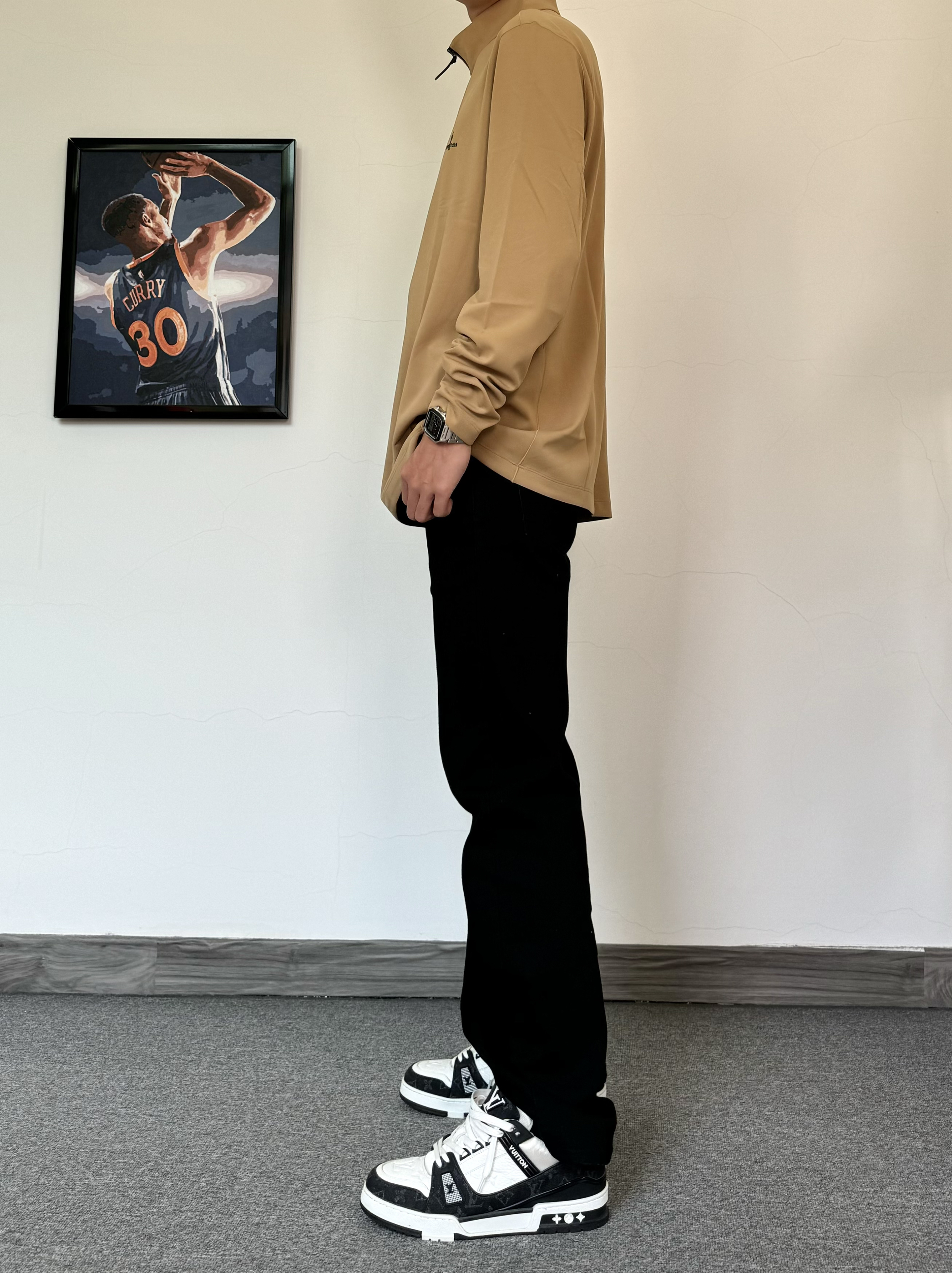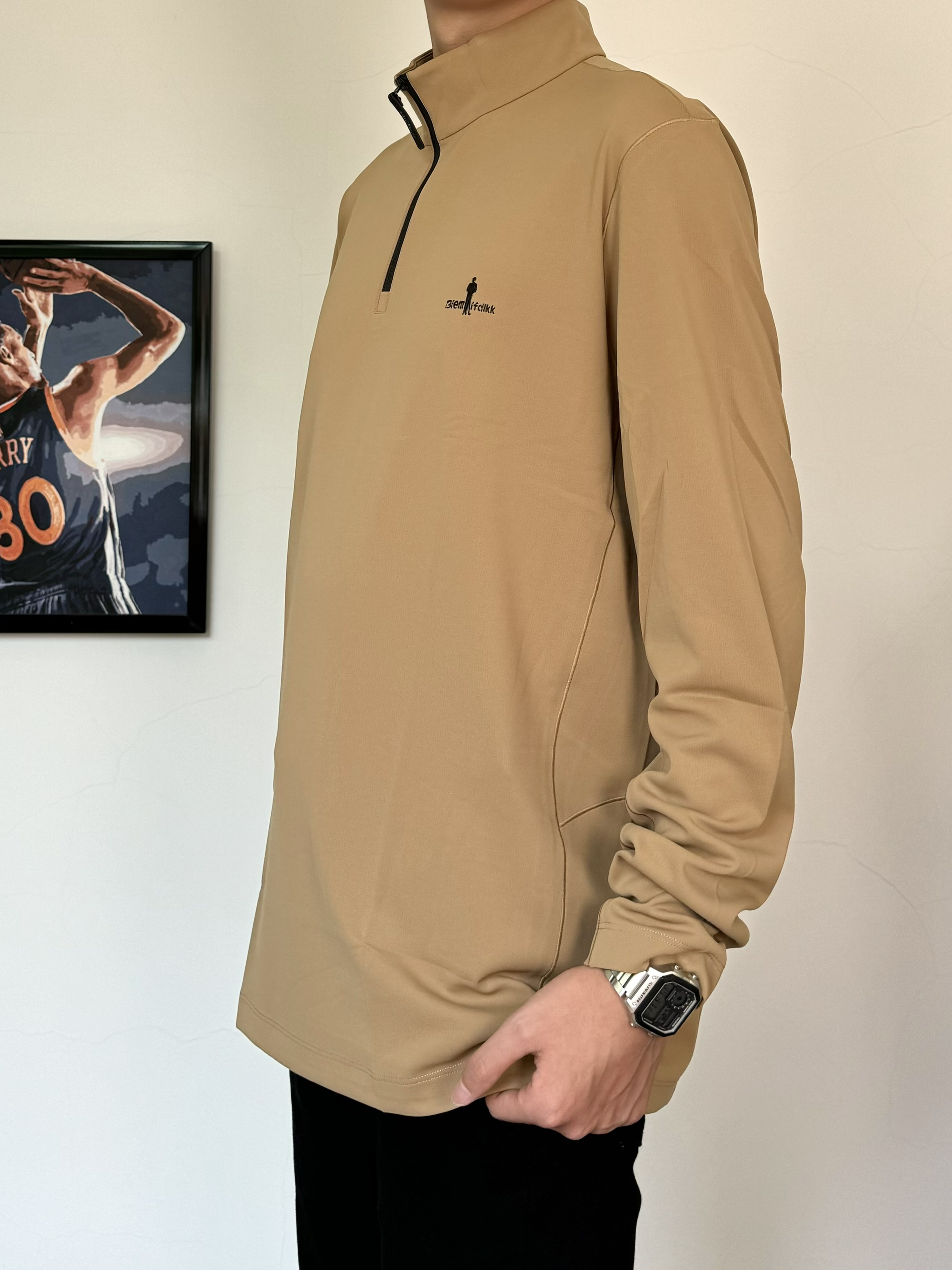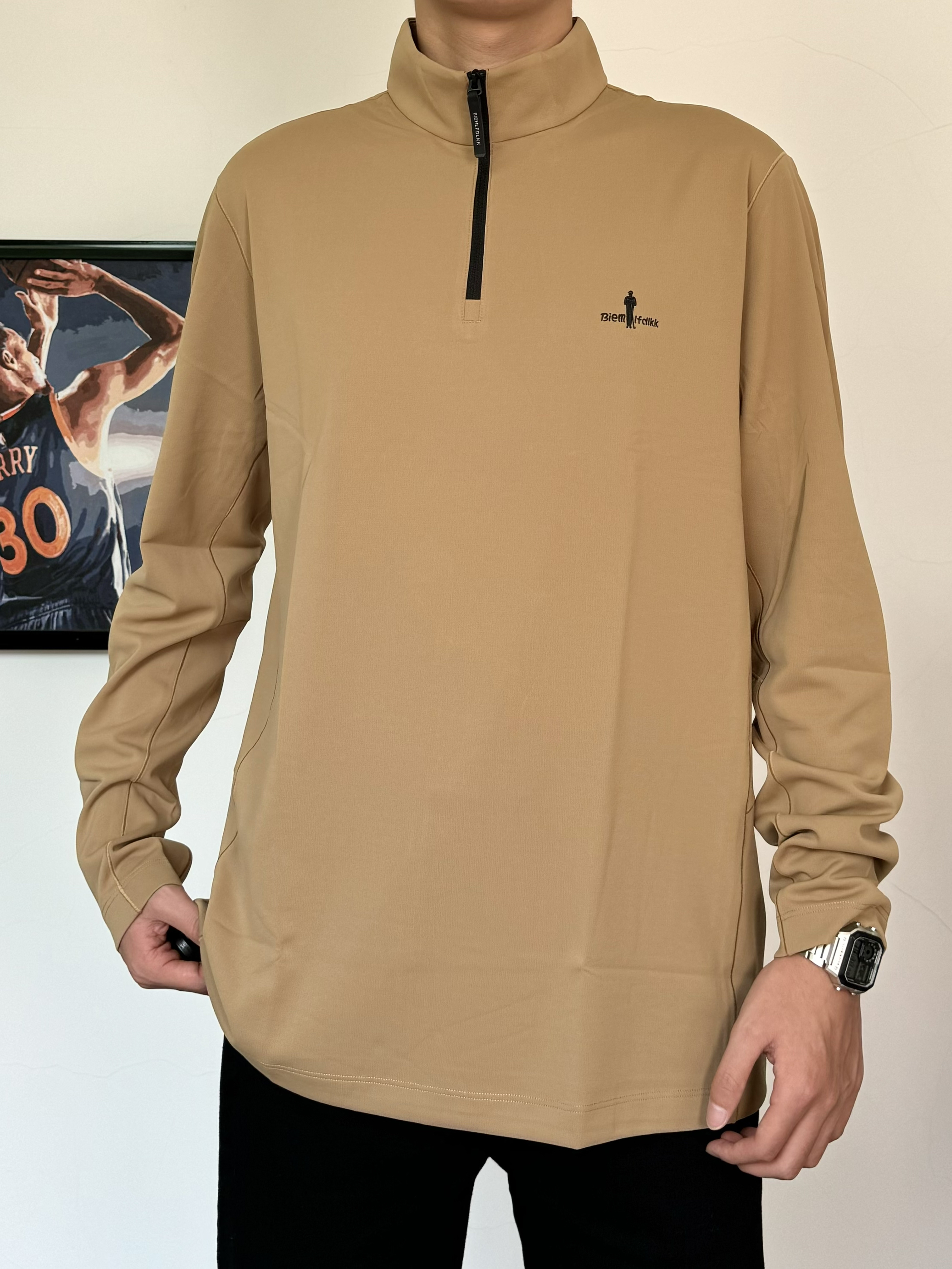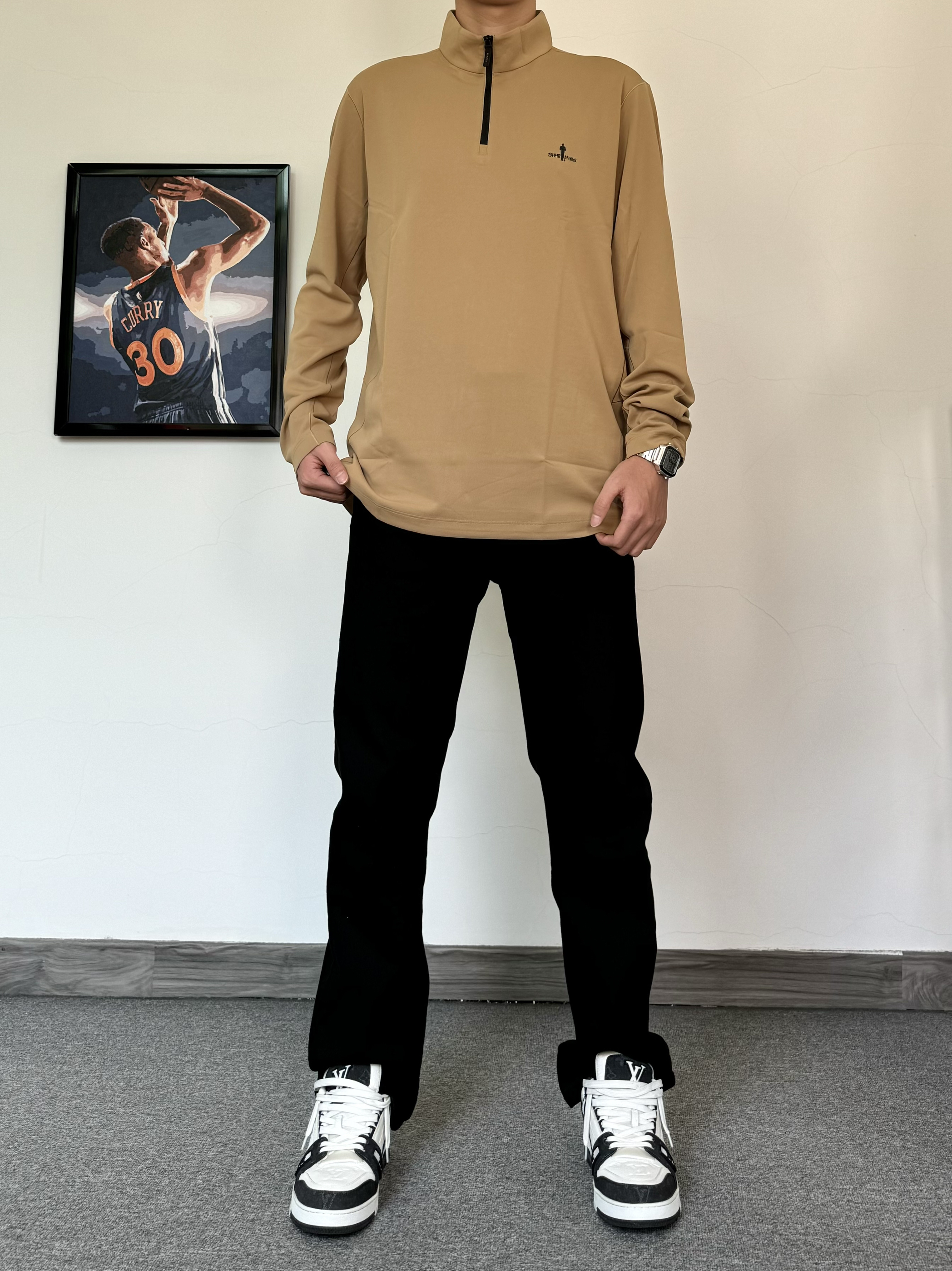 初春真的太好穿衣服了 上身一件质感立领T恤 面料柔软舒适 卡其色主打气质 搭配纯黑色牛仔裤配经典板鞋 黑白配色真的百搭! 轻松打造男大即视感✨