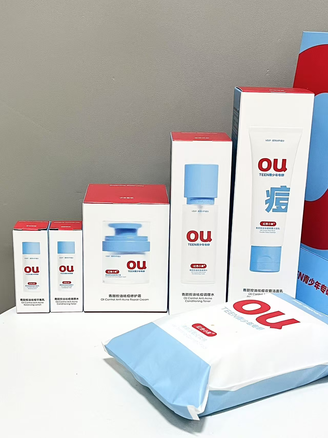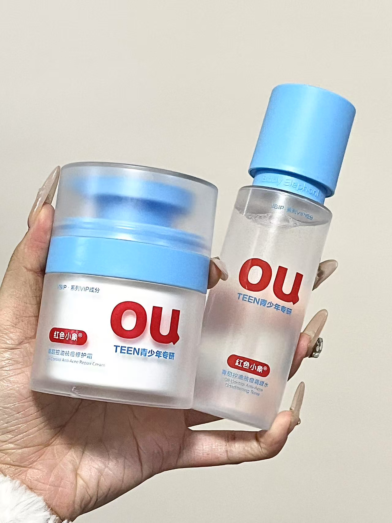 妹妹马上要开学啦 因为过年没注意饮食 再加上青春期 皮肤容易泛红敏感和长痘 精挑细选给她准备了 红色小象0U青少年套组 一套有调理水、平衡乳、洁面乳 可以满足她的日常精简护肤 适合13岁以上的的青少年 洁面乳双管设计温和不刺激 水乳质地清爽不黏腻上脸好吸收 坚持用一段时间皮肤状态稳定了不少唉 希望妹妹收到她会开心