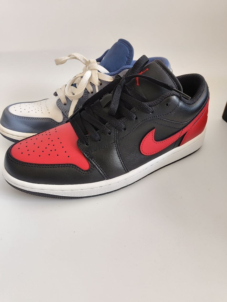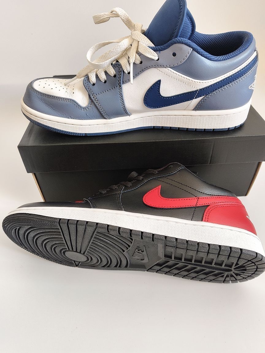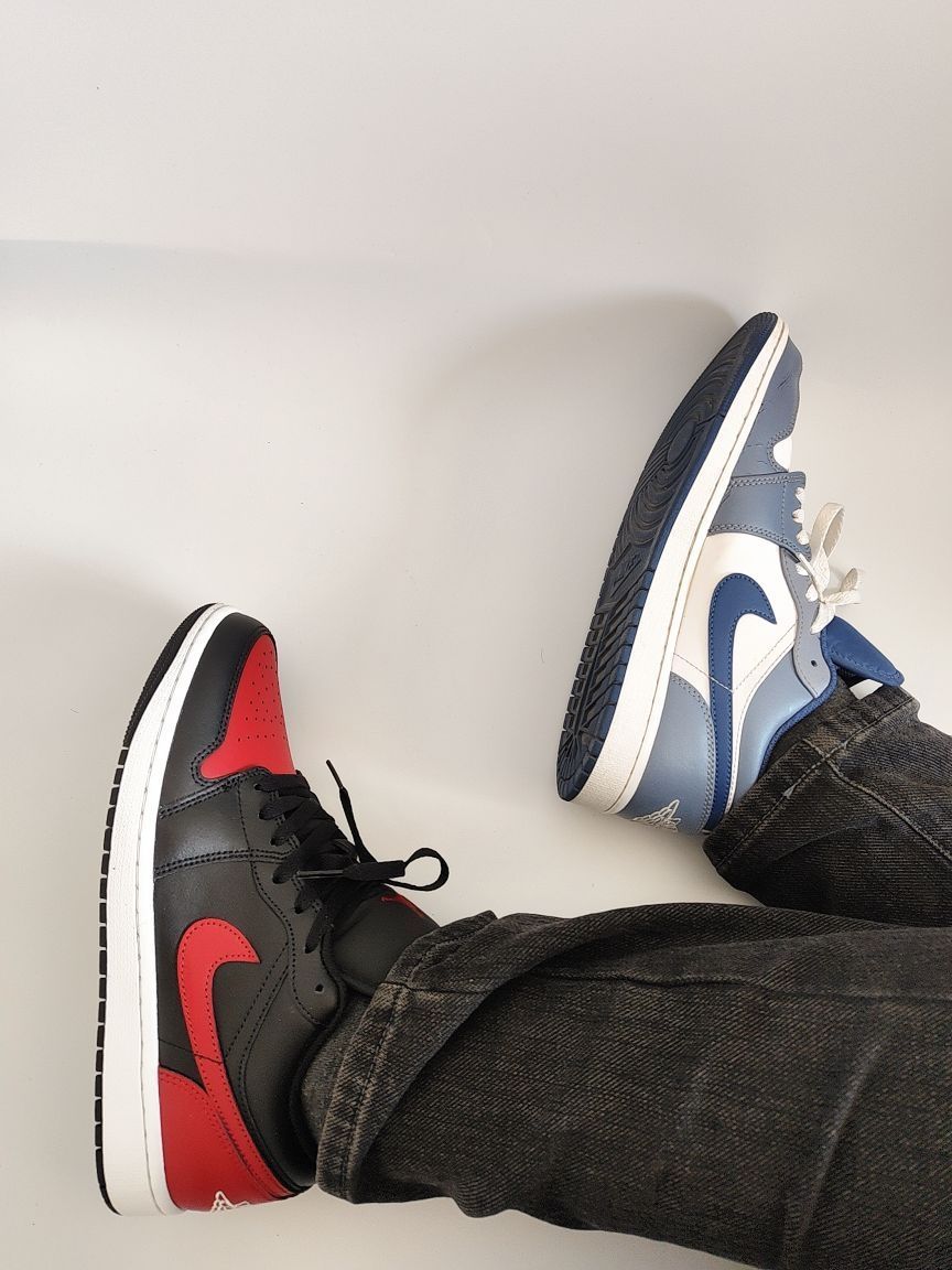 AJ1海军蓝和AJ1红黑色,两款鞋子cp感太强了,蓝色很早就入手了,穿了一年左右,鞋面有点开裂,但是自我感觉AJ1脚感还是很舒服的价格五开左右穿一年还挺合适的