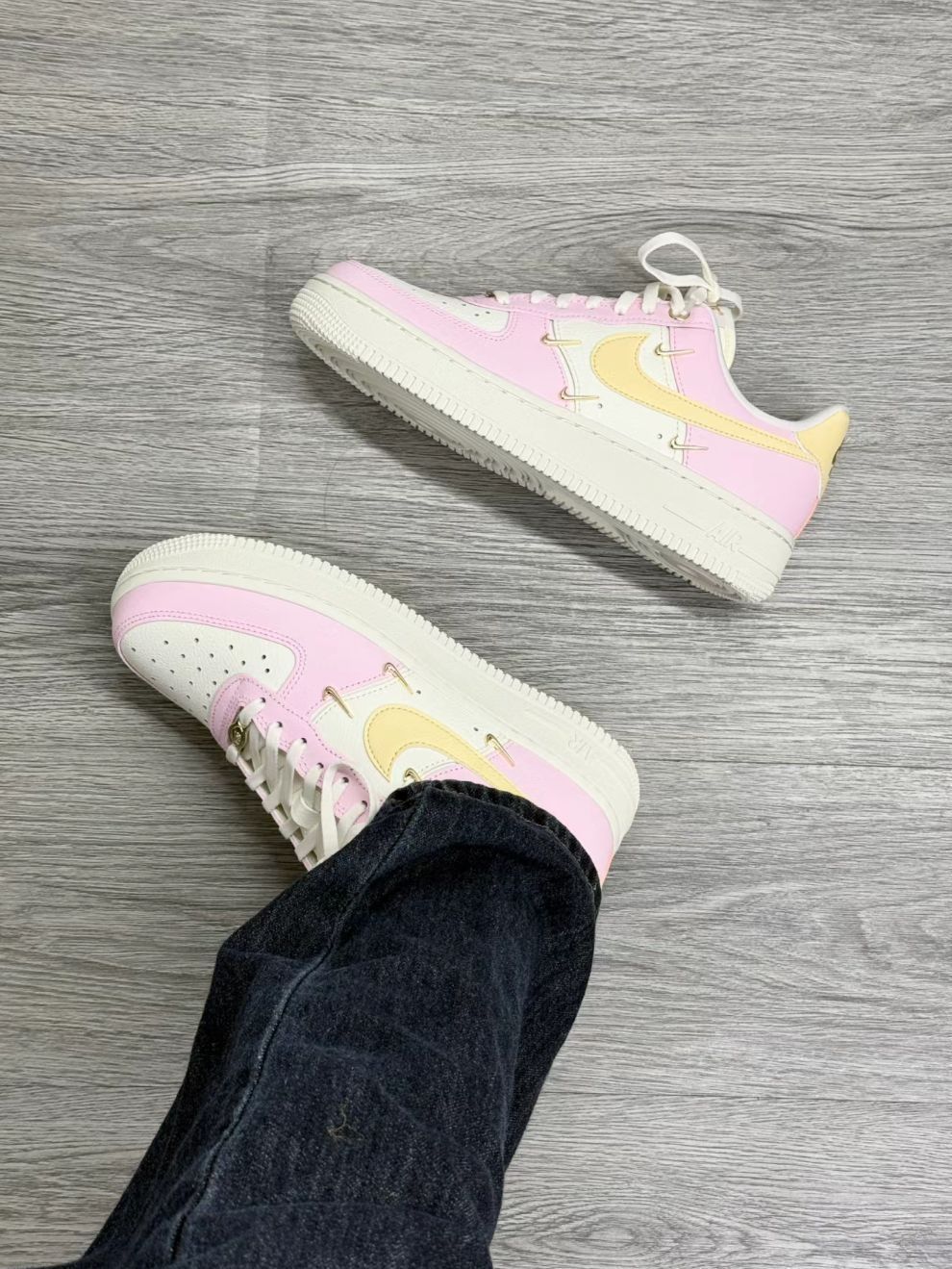 AF1带来柔和魅力!今天的主角是阳Nike品牌的秘密武器——无与伦比的运动风范第一鞋款。其色彩融合了蜜桃粉勾边和细腻的奶白麂皮,仿佛自带柔光滤镜,令人一见倾心。这款鞋款巧妙设计的厚底不仅提供了绝佳的支撑和舒适感,还具有隐形的增高效果,可瞬间让双腿比例完美提升约五厘米。对于那些喜欢展现甜美气质的女孩来说,这双鞋如同魔法一般,瞬间变身漫画中的时尚女神。这不仅是一双鞋,更是你时尚态度的完美诠释。尽享阳光...