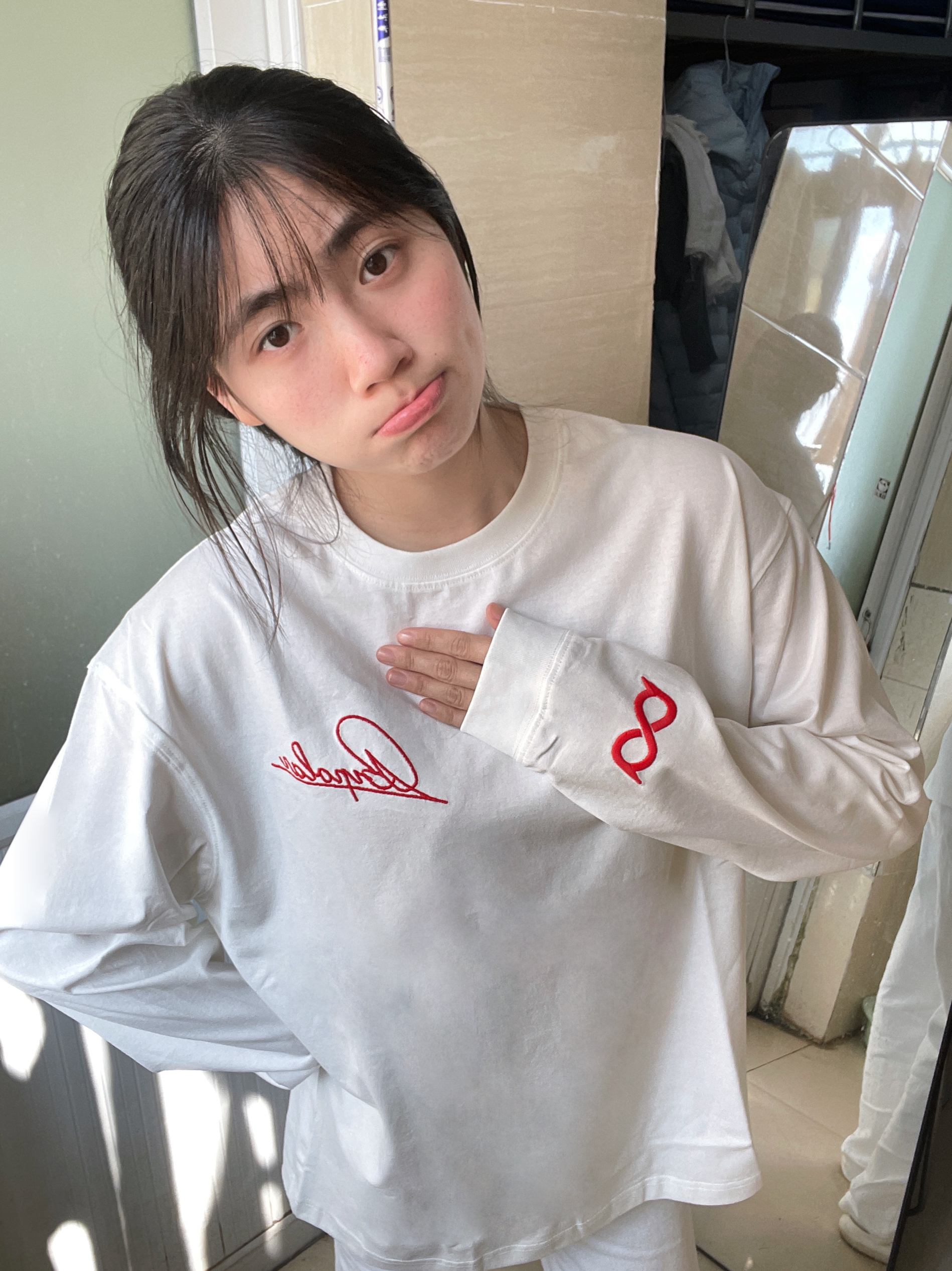 166 102穿的是M码 logo都是刺绣的 简约又百搭呢 而且我觉得不会透勒 可以做内搭热一点就外穿都好看 喜欢的宝宝可以参考一下哦