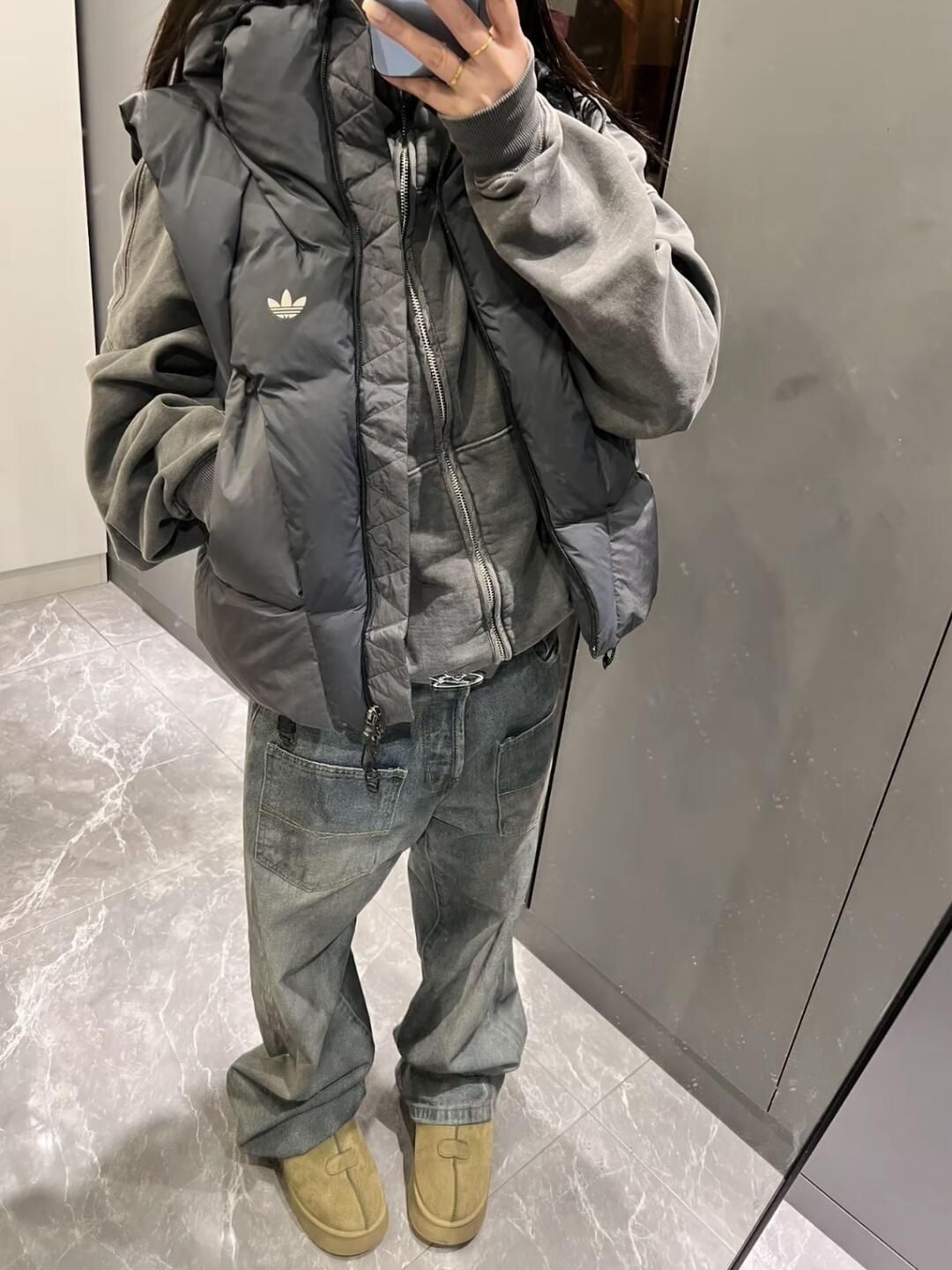 新购入了阿迪的马甲 我170cm穿l码刚好盖到屁股 很轻盈 好好看😻 推荐购买! 快冲