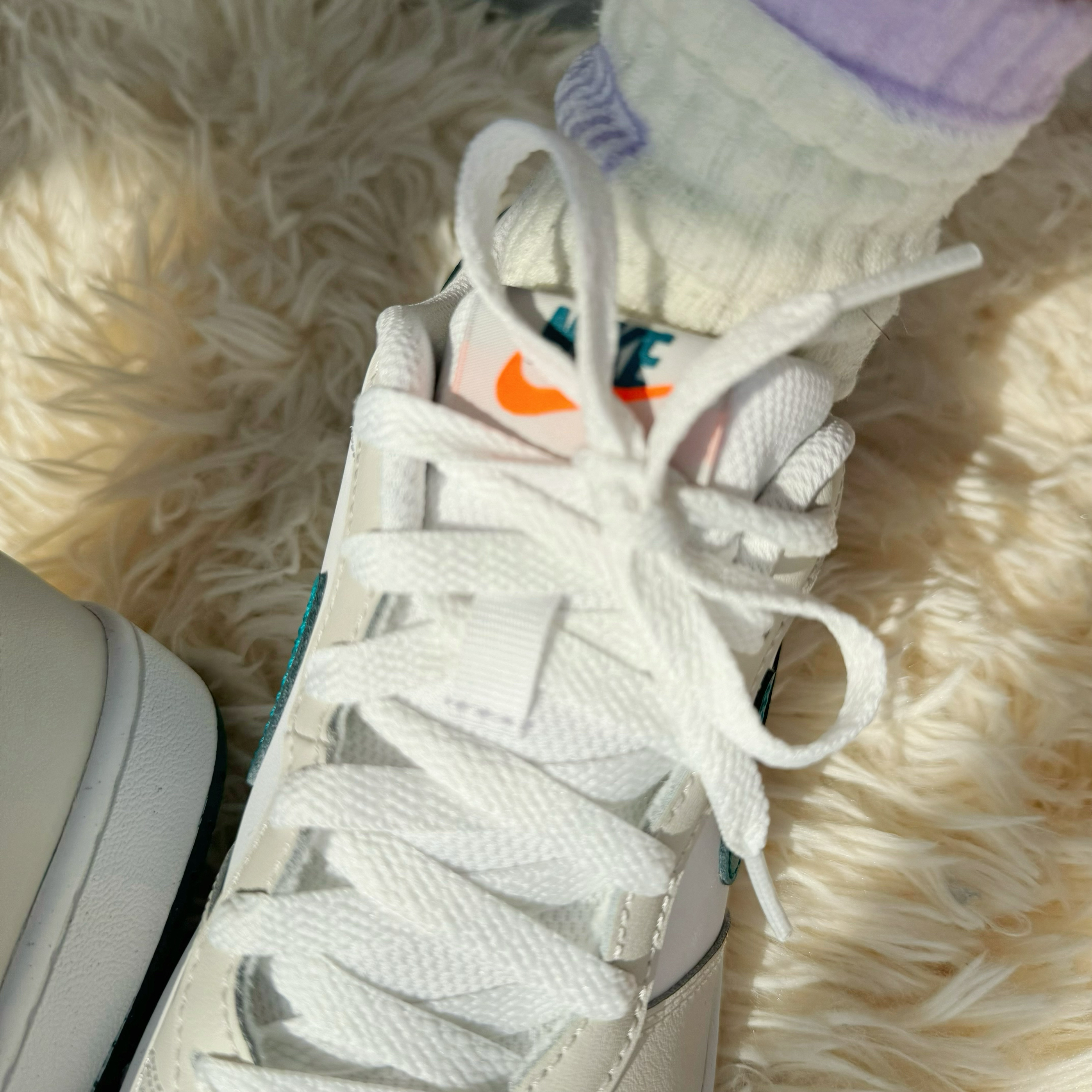 一眼爱上,配色真的太好看了! 绿色是那种带点绿松石的感觉配上浅米色 真是又复古又奶呼呼 鞋舌和后跟的橙色logo 更是点晴之笔一下子就活泼灵动起来了 很好搭配,嘻哈/韩系/甜妹/运动衣服都可以搭可盐可甜哦!