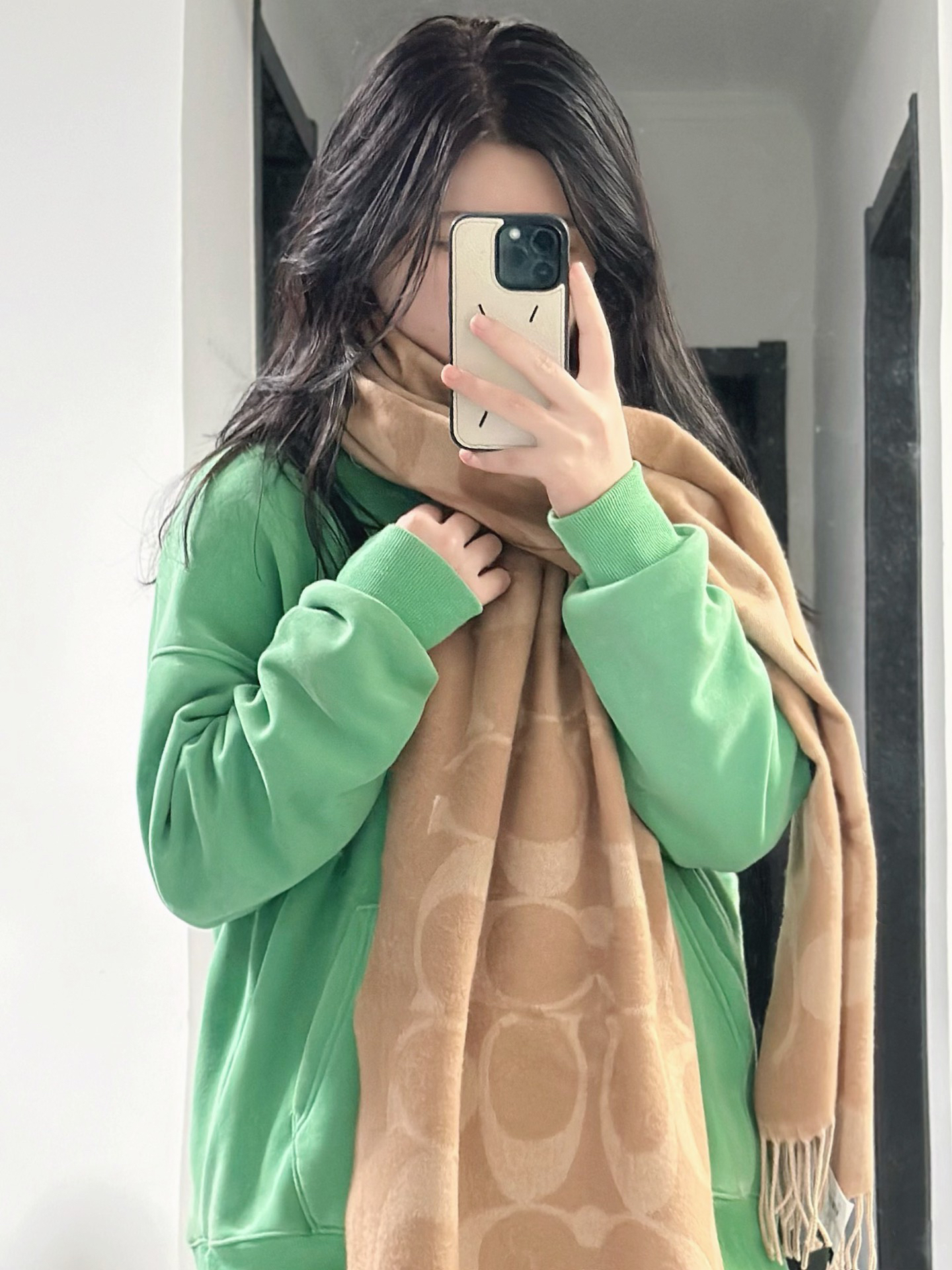 最近爱上了围巾披肩类的,超级显气质。入手蔻驰真的超值,百分之97的羊毛,太舒服了吧,完全不输Gucci呀。