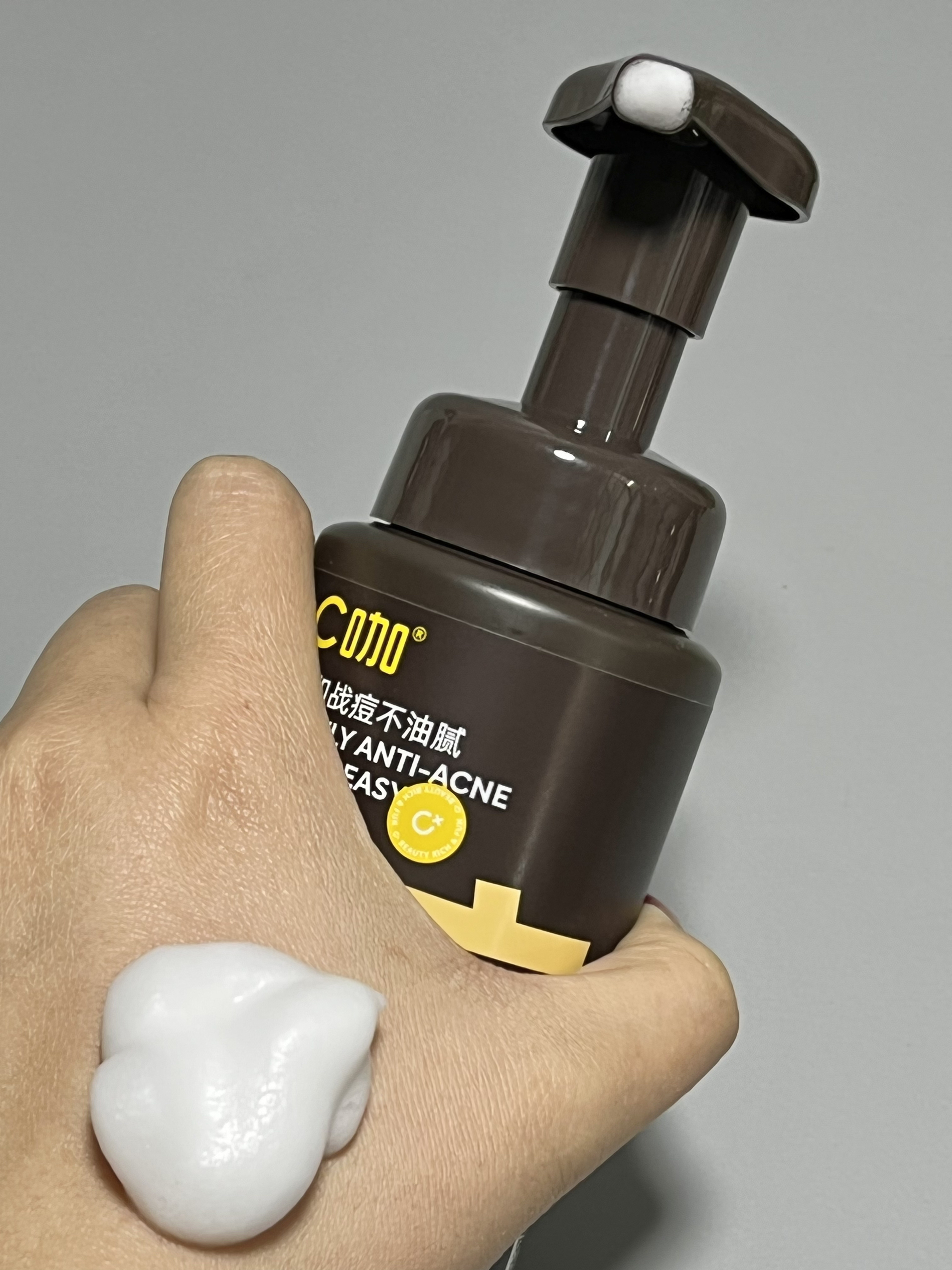 是C咖的洁面慕斯耶! 按压泵头,挤出来就是泡沫的质地 泡泡绵密,洗完皮肤滑嫩嫩的 控油效果蛮不错的,坚持用了一段时间皮肤状态都越来越好啦 还有小样出门带着太方便咯