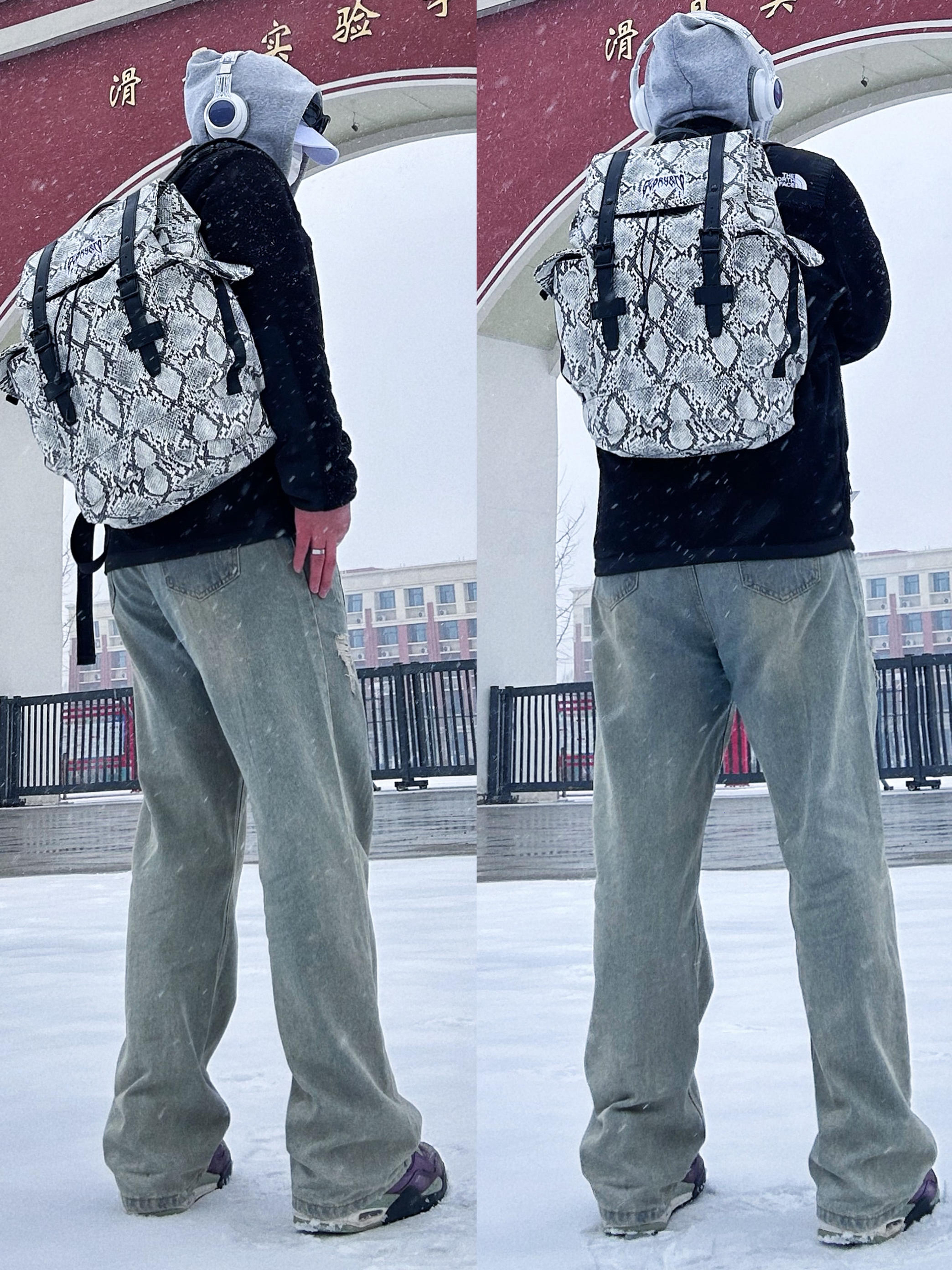 开学也该换一个新书包了 牛仔帆布的设计 Lee 而且容量很大,耐磨性也不错 平时图书馆上自习通勤出街都可以背着 简单的出行双肩背包穿搭