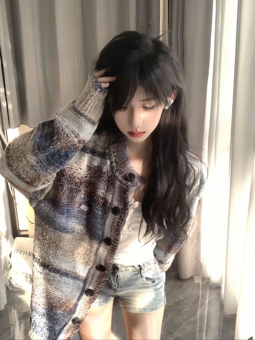 本篇笔记关联了【郭颖Yamy同款】F426 美式不规则油画彩虹渐变撞色V领单排扣开衫毛衣 BDMY23SS-4950 咖蓝等商品,为用户提供真实的使用体验和购买参考。