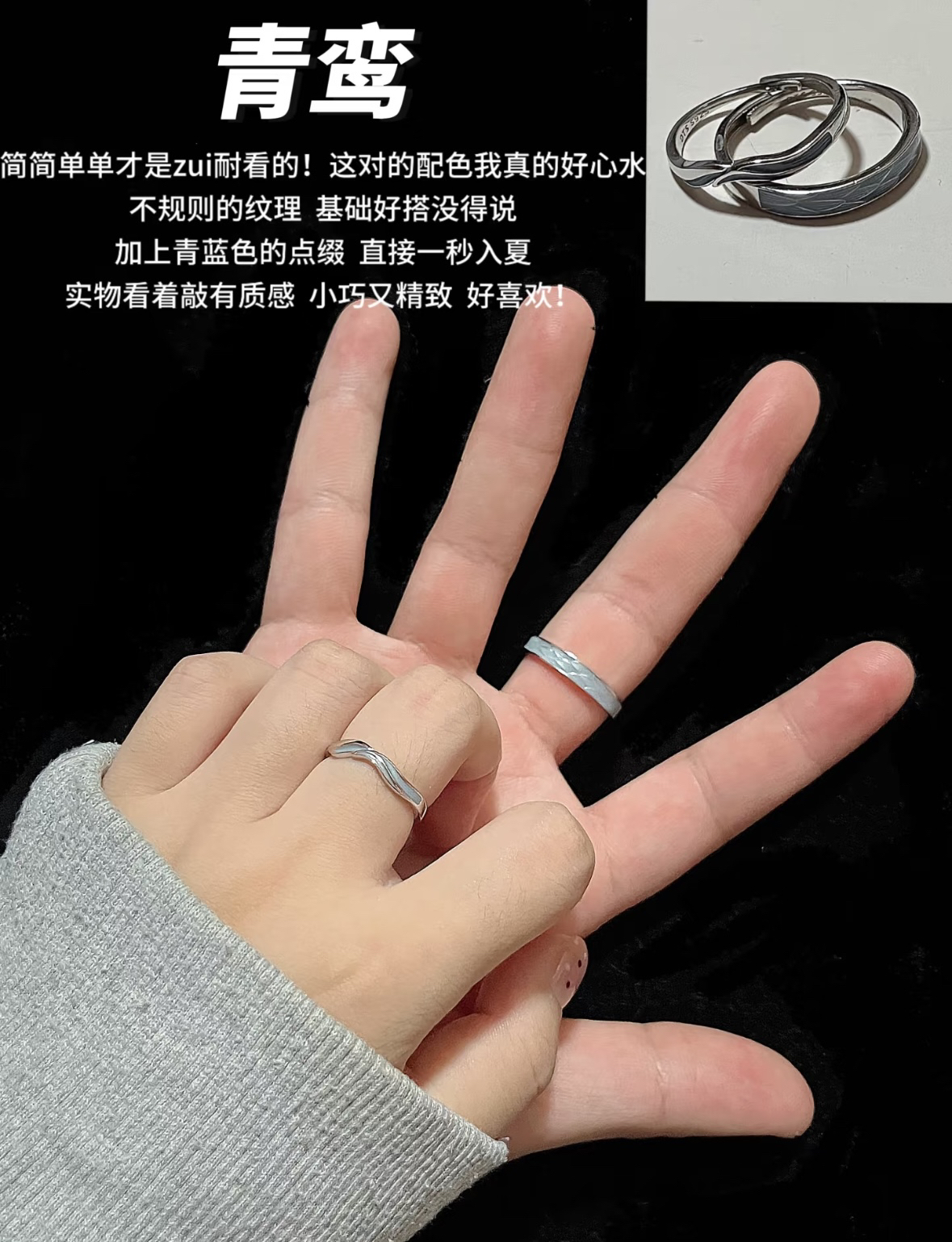 谁懂!情侣戒指真的既有仪式感又充满纪念意义~精挑细选了四对晶莱欧。不出错的款式质感和颜值真的没话说!七夕送对像刚刚好而且!都是开口设计的 可调节大小 925银的 洗澡也不用摘 一百出头就能拿下 学生党宝宝码住!【配饰推荐】