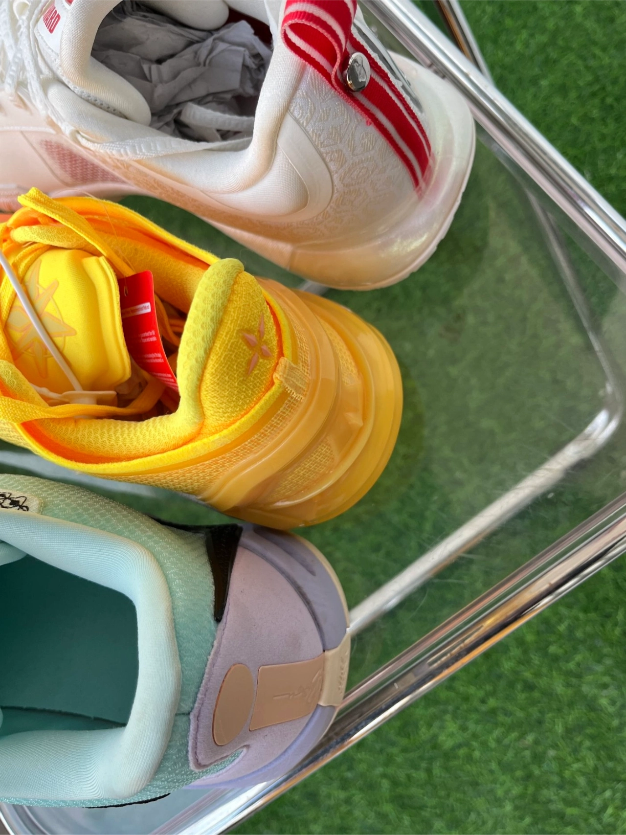 哈喽朋友们 今日球鞋分享来了 海沃德5 红蓝鸳鸯配色 萨布丽娜一代 绿色调 利刃4v2 橙色调 真的很奈斯 一起来看一下细节吧! 门鞋子 哇塞礼物 则