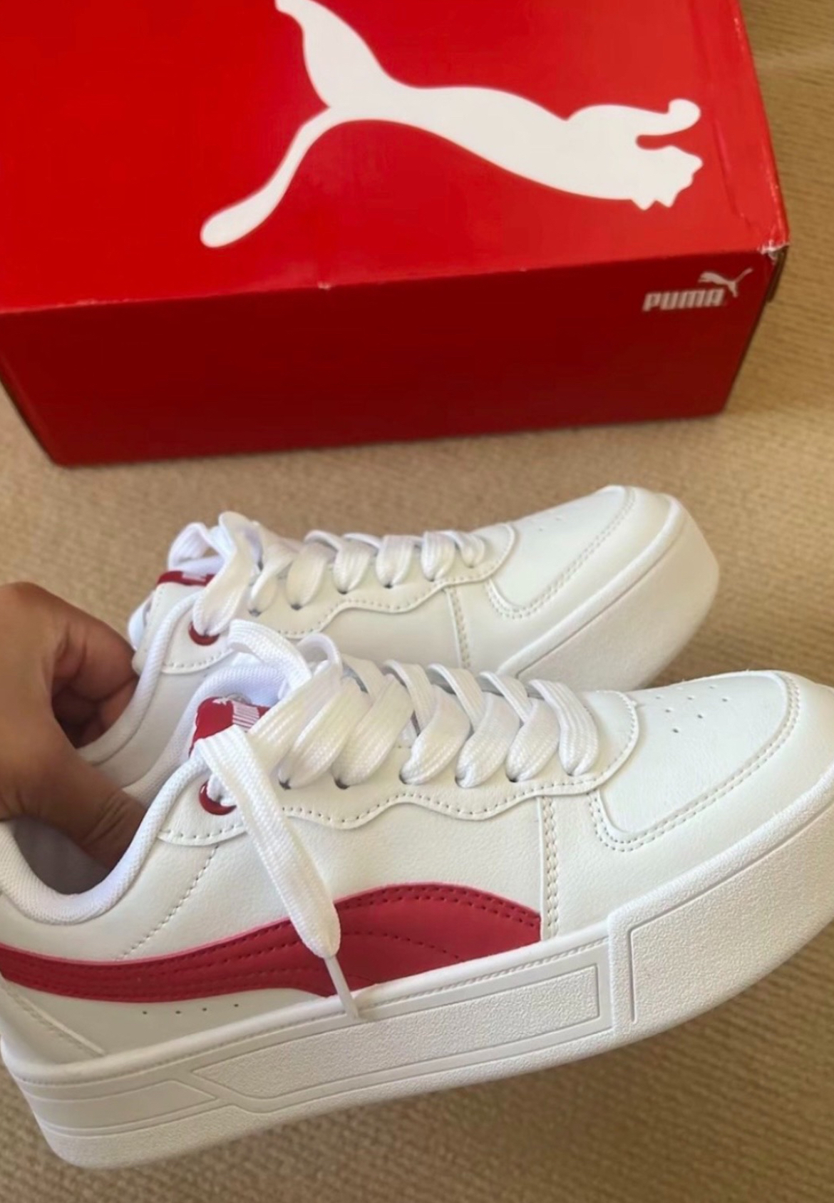 彪马这款小白鞋,经典永不过时!纯净的白色鞋面,点缀热情红元素,简约又不失活力。不管是休闲出街还是运动健身,都能轻松适配,为你增添时尚魅力,助你舒适畅行每一天!