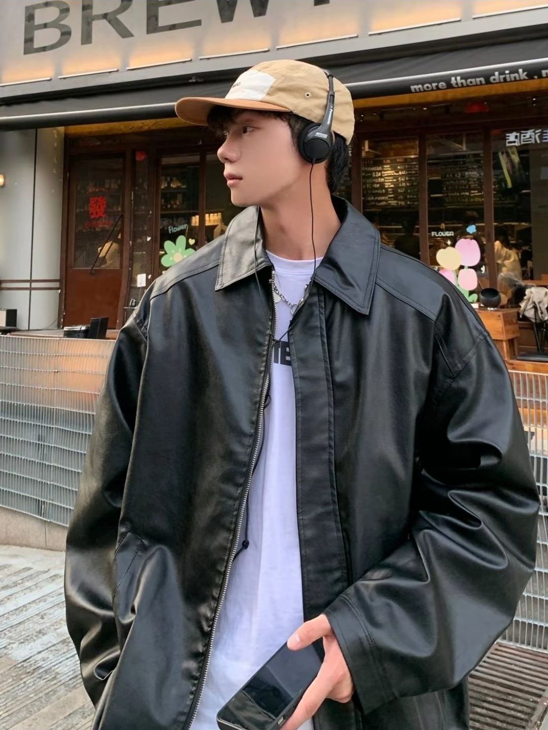 VIISHOW 高级感拉链按扣翻领防风PU皮衣🌶 🌶皮衣外套真的是永不过时,更何况黑色!真的超级百搭又好看啊家人们~xl码刚刚好🌶是我喜欢的版型已经安利给室友们啦!!强烈推荐!!🌶会穿皮衣的男生有多酷!!帅气与温柔并存hhhh,简直不要泰帅辣。介件黑色皮衣敲击有质感!!H2P~🌶摸起来好软糯,平时也hi好打理,不易过时的合体利落廓形。🌶但又不会过于oversize,领口翻领设计,增添几分机车感。...