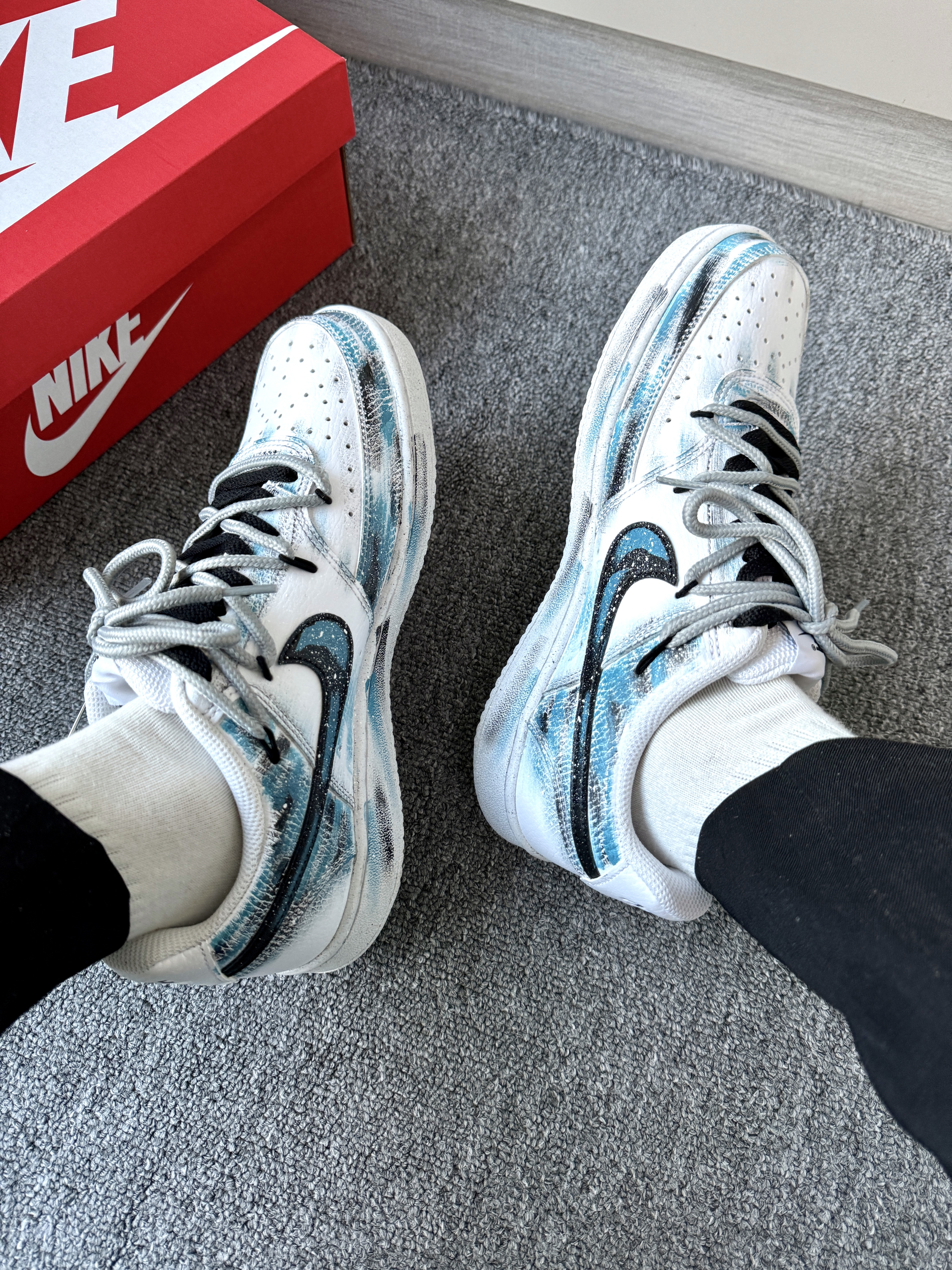 【涂鸦水墨蓝的NIKE小板鞋搭配白袜绝绝子✌️】,由用户 华华分享好物 分享,来自吉林。这是一篇来自识货社区的真实用户分享笔记。