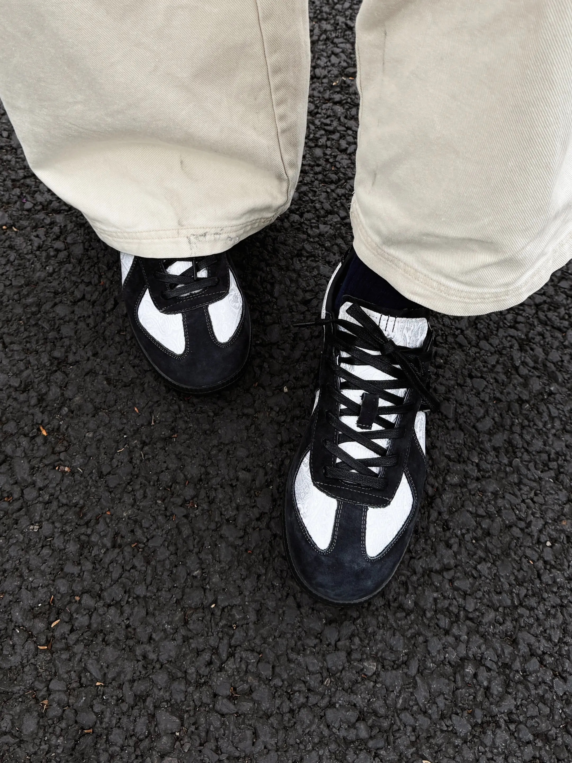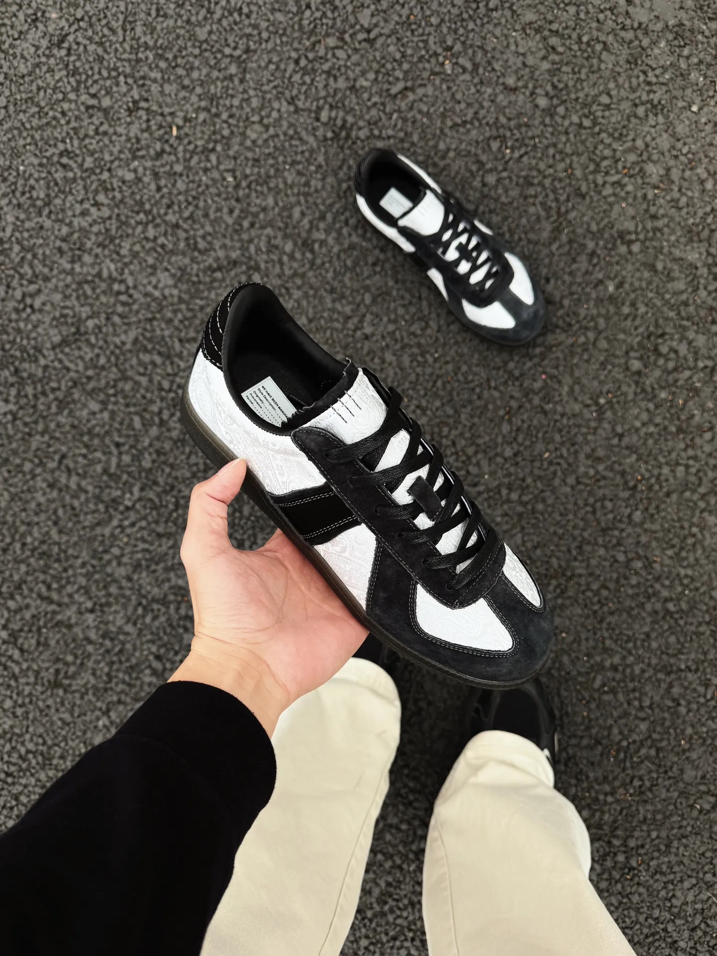 宝子们,又到了我这个鞋控的好物分享时间,今天必须给你们种草马登家的这款德训鞋 MX2401407! 一拿到手,这鞋的质感真的绝了。丝绸材质拼接,满满的国潮风,把东方的典雅韵味和现代潮流完美融合。墨色和白色的配色经典又高级,不管是搭牛仔裤还是小裙子,都能轻松hold住,说它是百搭神器一点都不过分。 而且它是平底设计,走路超舒服,完全不用担心累脚。平时逛街、上班穿都很合适。复古的版型又让它充满了独...