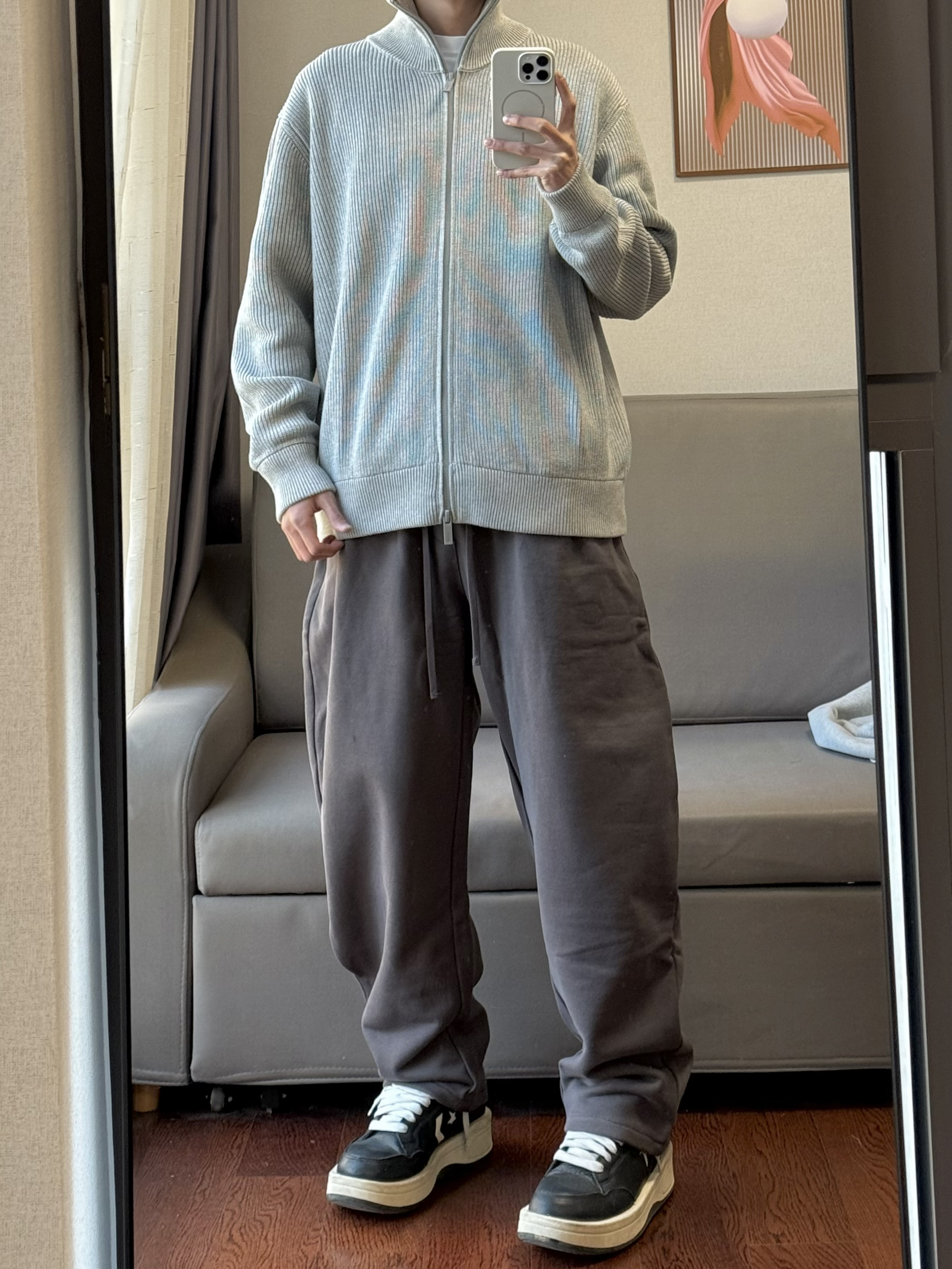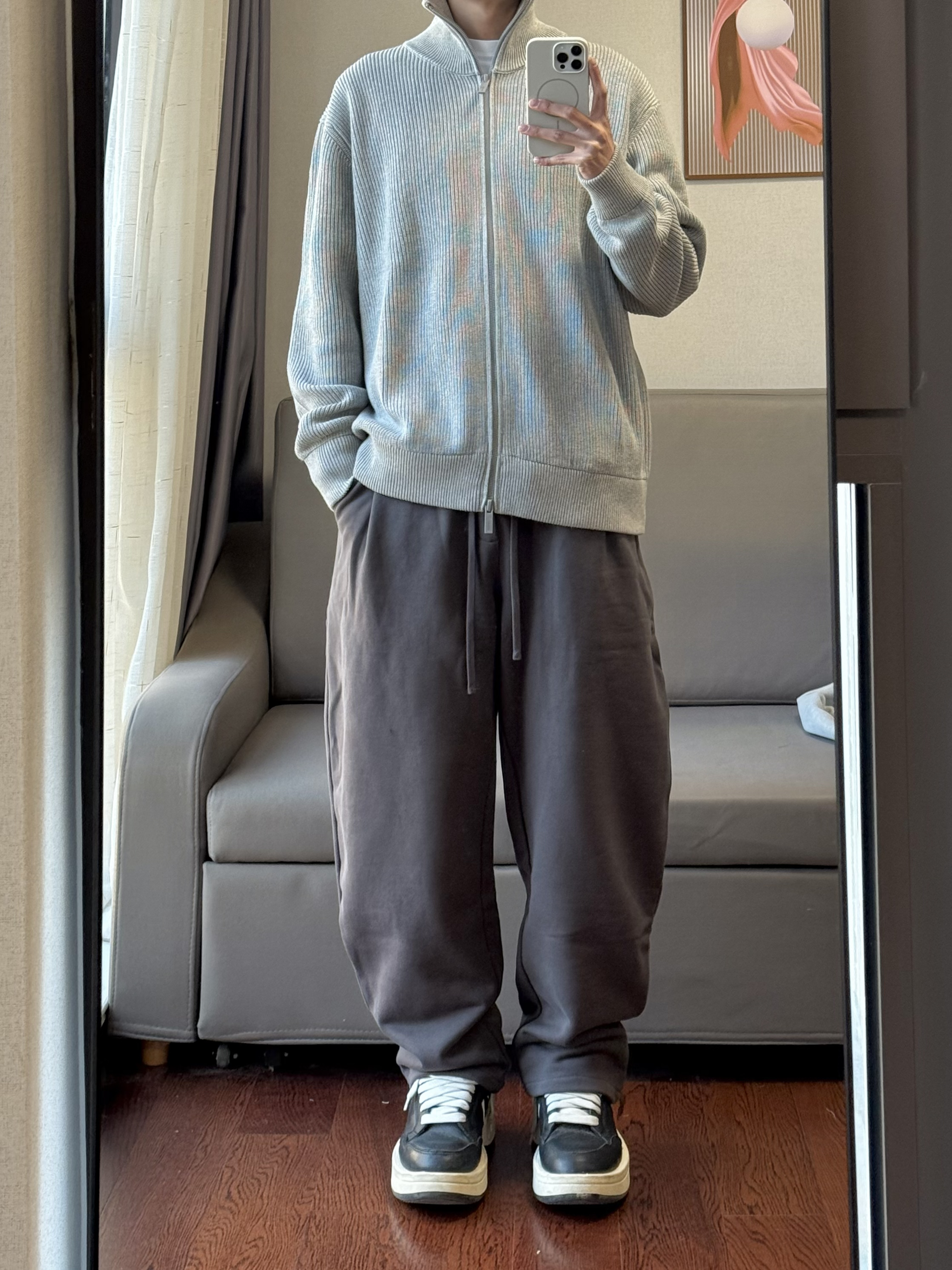 格雷系的开衫真的可以做到拉上拉链一个范儿,拉开拉链一个范儿~再配上经典阔腿卫裤,真的怎么看怎么顺眼