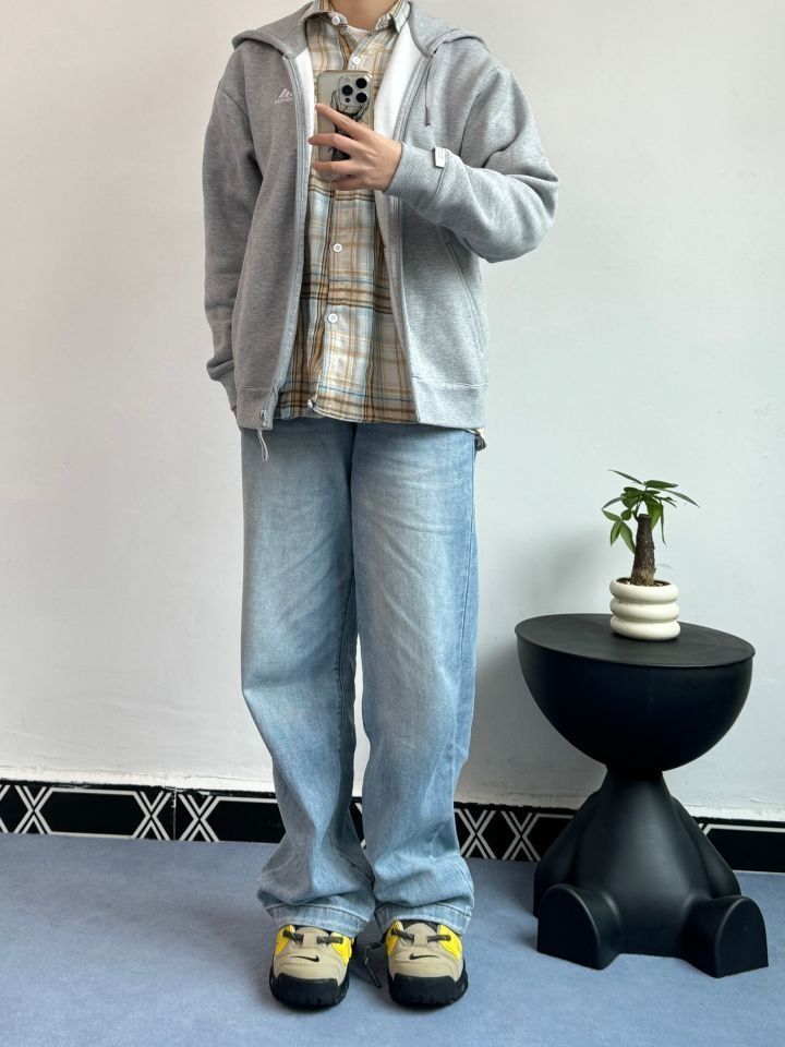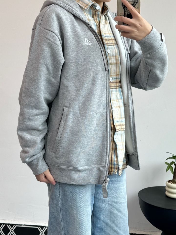 今日上身一件Adidas加绒运动夹克外套 谁懂!我真的很喜欢基础款卫衣! 灰色百搭又好看🤟 里面有加绒的,最近开春刚好穿上✌️ 裤子选择浅蓝色直筒牛仔裤 搭配Nike皮蓬低帮篮球鞋 整体视觉干净简单小清新🍀的感觉 (图源网络侵删)