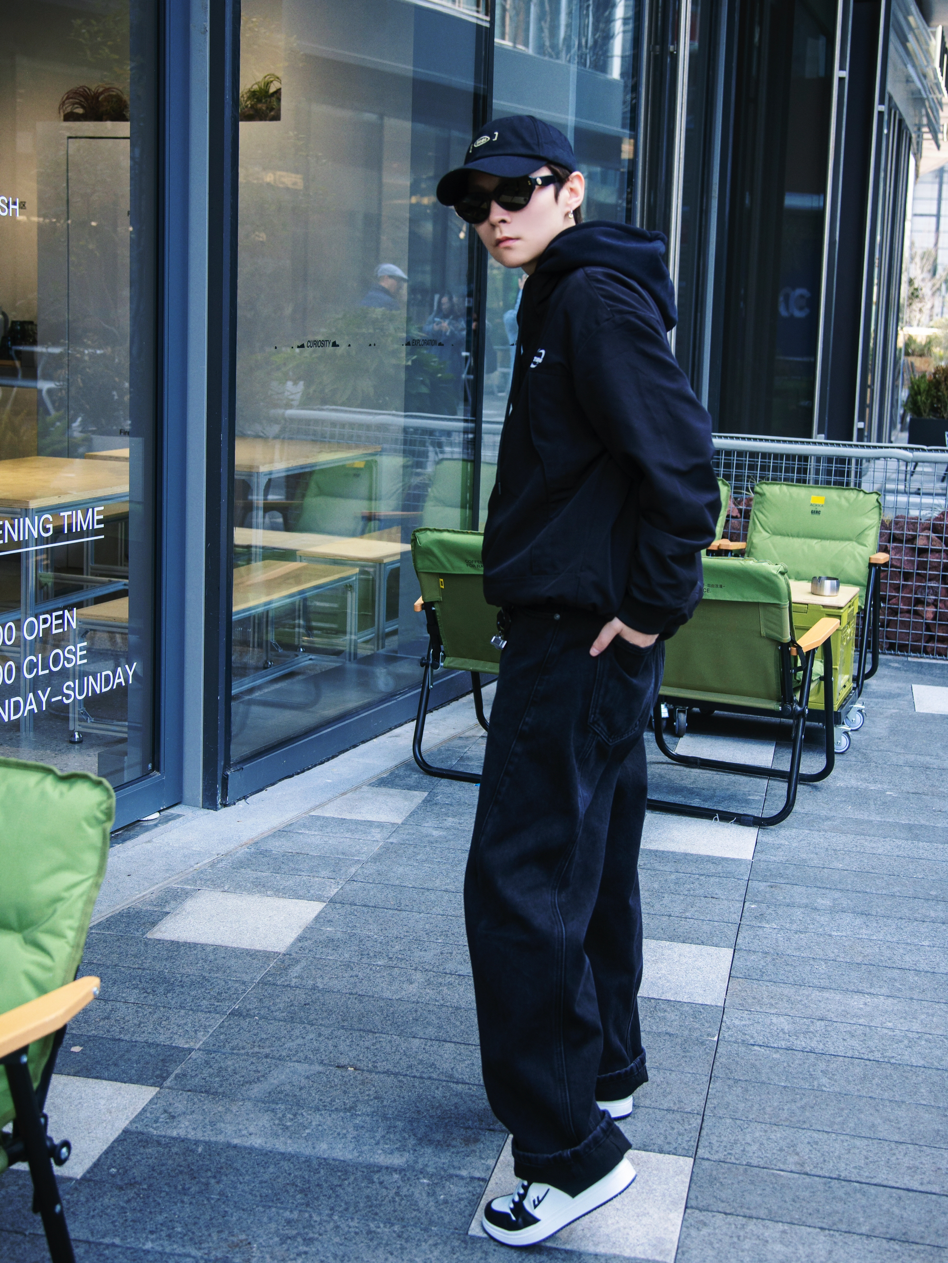 穿搭没灵感 那就回到一身黑吧 穿搭指南; 上身一件黑色连帽卫衣 叠穿黑色夹克外套 同色系也能穿出层次感 配一条黑色休闲牛仔裤 挂几个钥匙扣在裤腰点缀一下 上脚一双回力休闲板鞋 黑白熊猫配色经典又百搭 低帮透气适合春夏 游是被一身黑帅到的一天