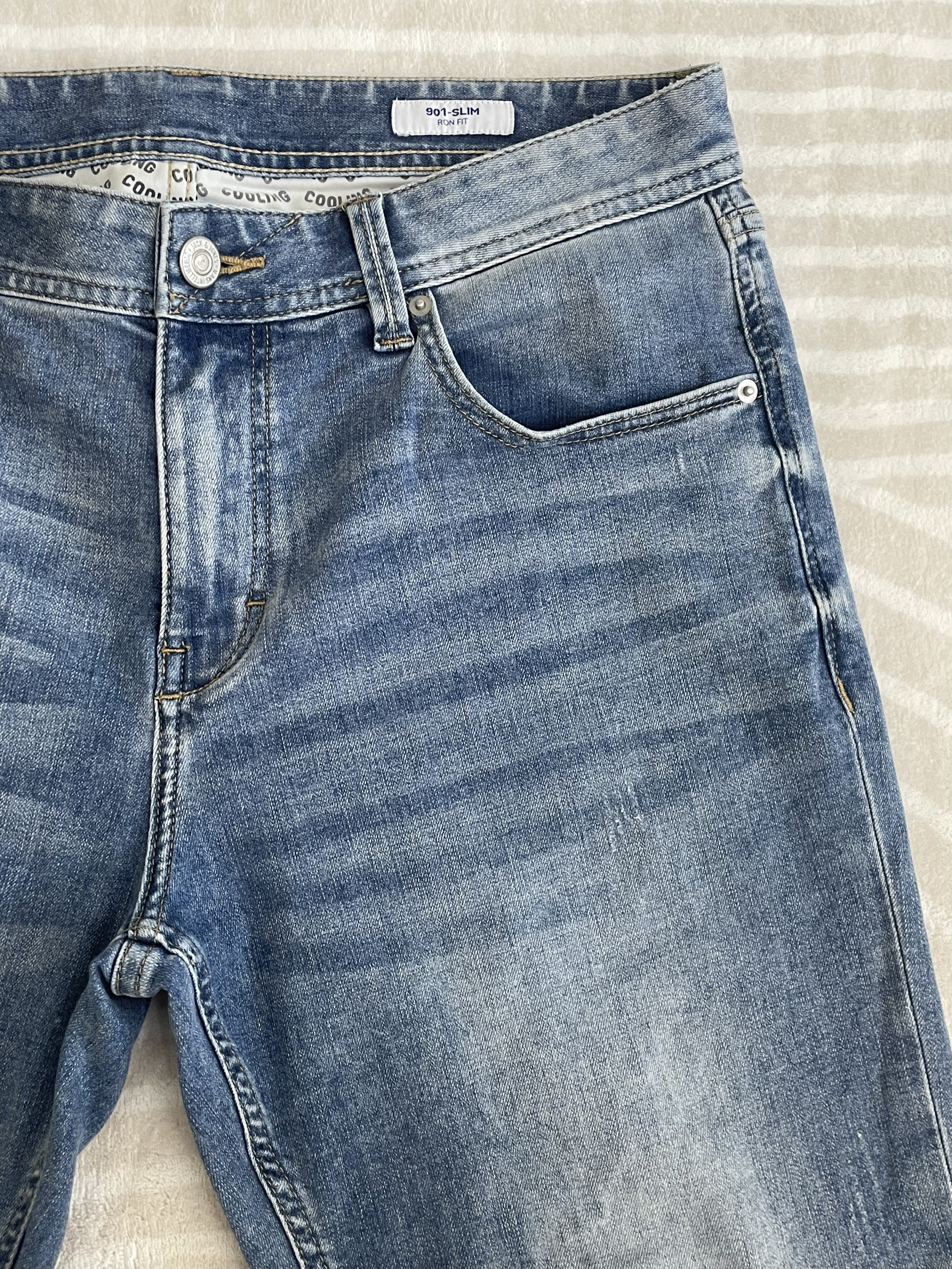 💙颜色:是很正的水洗蓝,自带复古感,又不会过于深沉或鲜艳,日常出街或者上班穿都很合适,随便搭配一件简单的白T或者衬衫,时尚感就有了! 👖版型:修身但不紧绷,能够很好地贴合腿部线条,把腿部修饰得又直又长,不管是梨形身材还是直筒身材,都能轻松驾驭,穿上秒变长腿星人。 🔍细节:金属纽扣上有品牌标识,精致感拉满;YKK拉链质量超棒,顺滑无比,完全不用担心卡顿的问题。后腰的棕色皮标设计,独特又有质感,一下子...