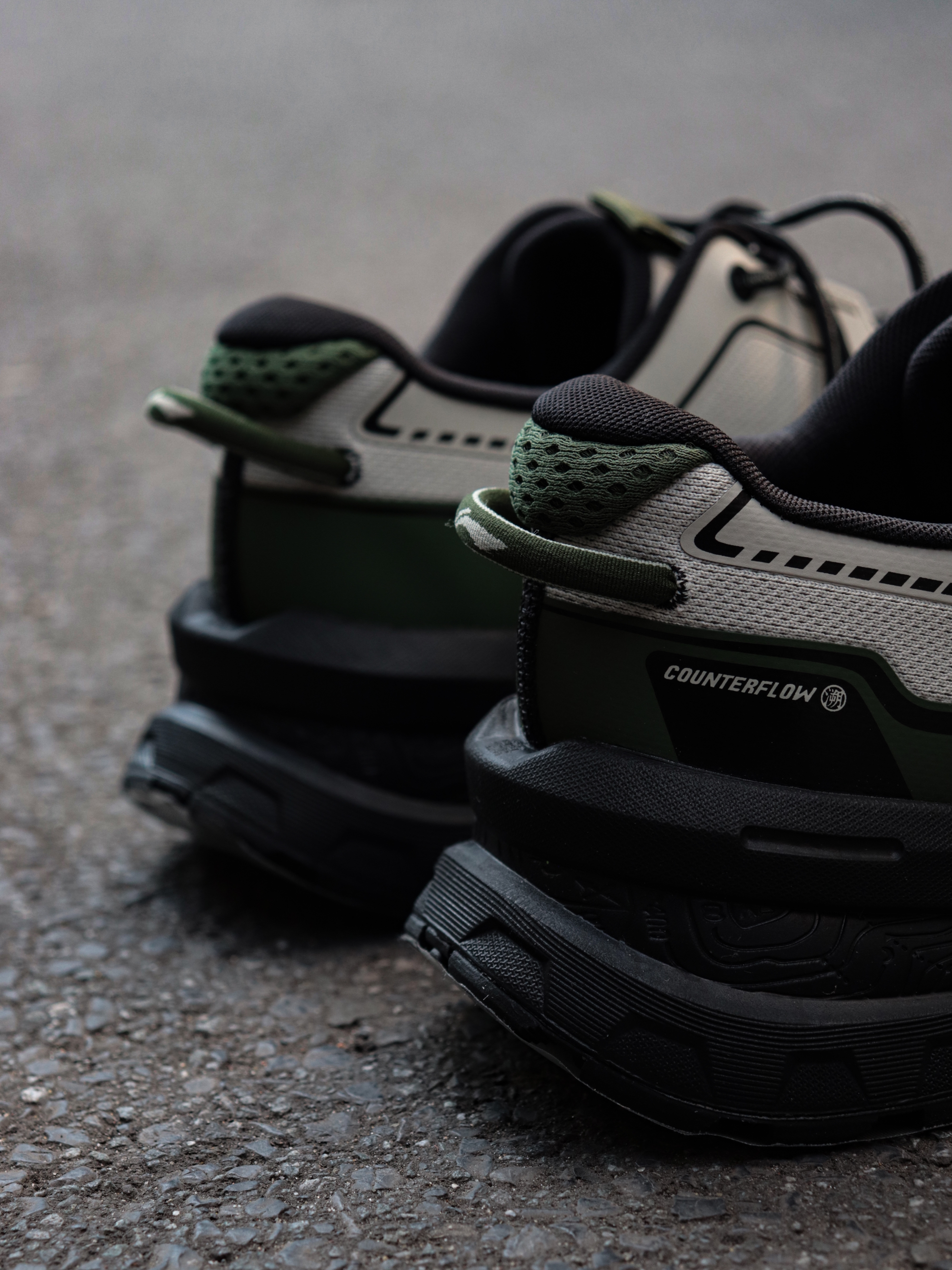 行川系列有蛮多配色选择 这次这款灰绿其实蛮户外的 视觉设计上有层次丰富的感觉 上脚真的蛮酷又特别的 防水的鞋面雨天不怕渗水 中底上脚的时候缓震也是蛮不错的 有不错的支撑性 日常通勤、徒步、登山、露营…都可以驾驭