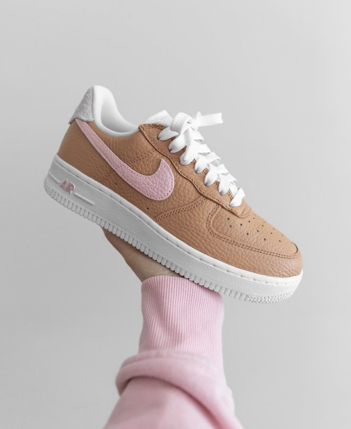 Nike Air Force 1 Linen Kith Exclusive 低帮板鞋以棕色为主调,搭配米白色中底和生胶外底,整体配色复古且富有层次感。鞋面采用优质皮革,质感细腻,Kith专属Logo点缀,彰显联名身份。 棕色系百搭耐看,适合搭配牛仔裤、工装裤或休闲短裤,轻松驾驭日常或潮流造型。男女同款设计,满足情侣穿搭需求。经典Air气垫提供舒适脚感,适合长时间穿着,兼具颜值与实用性。