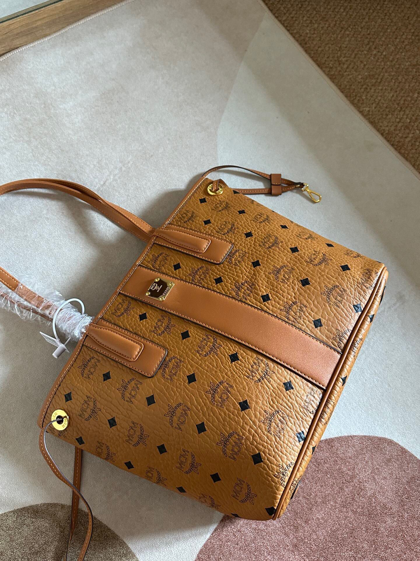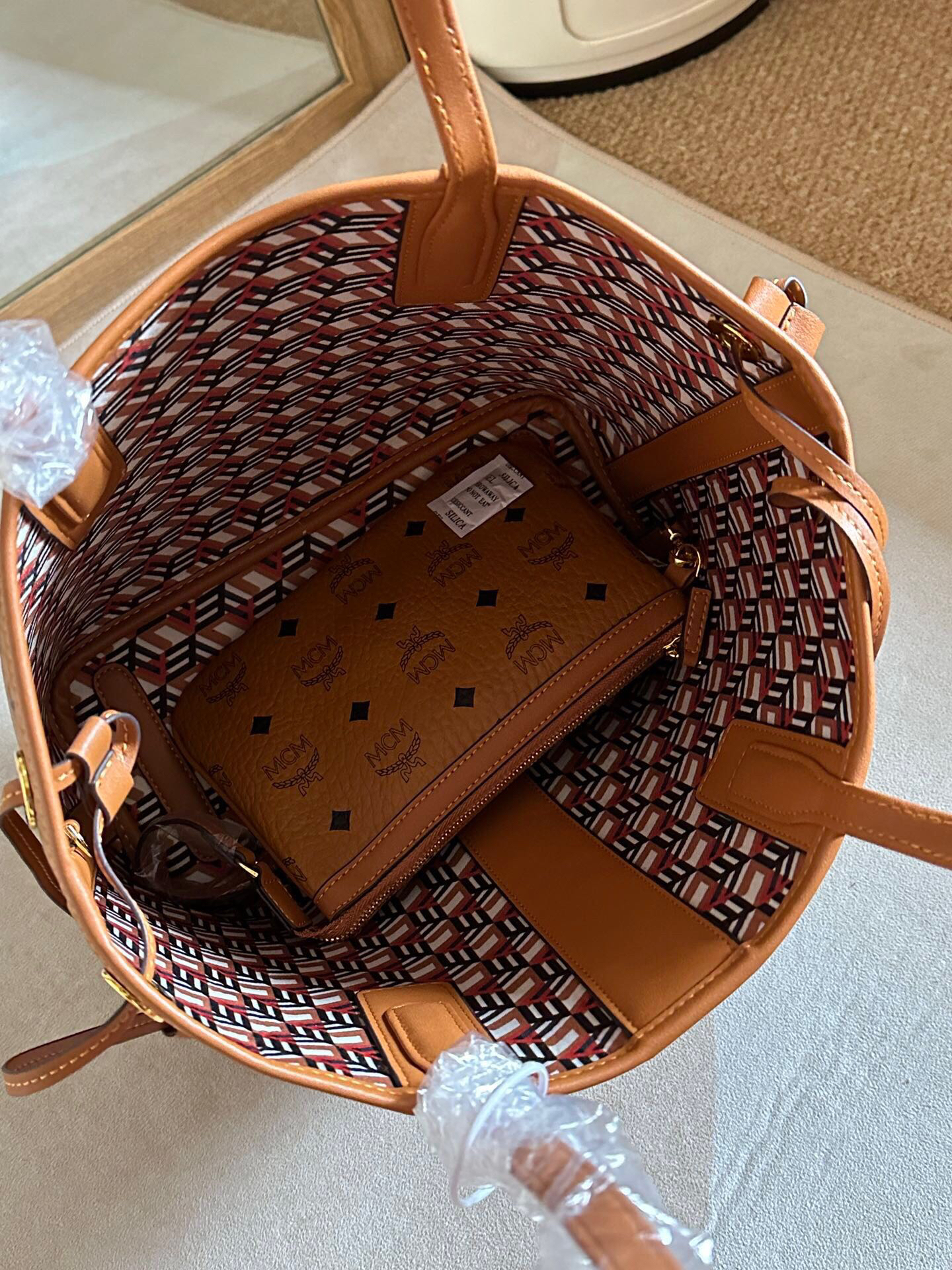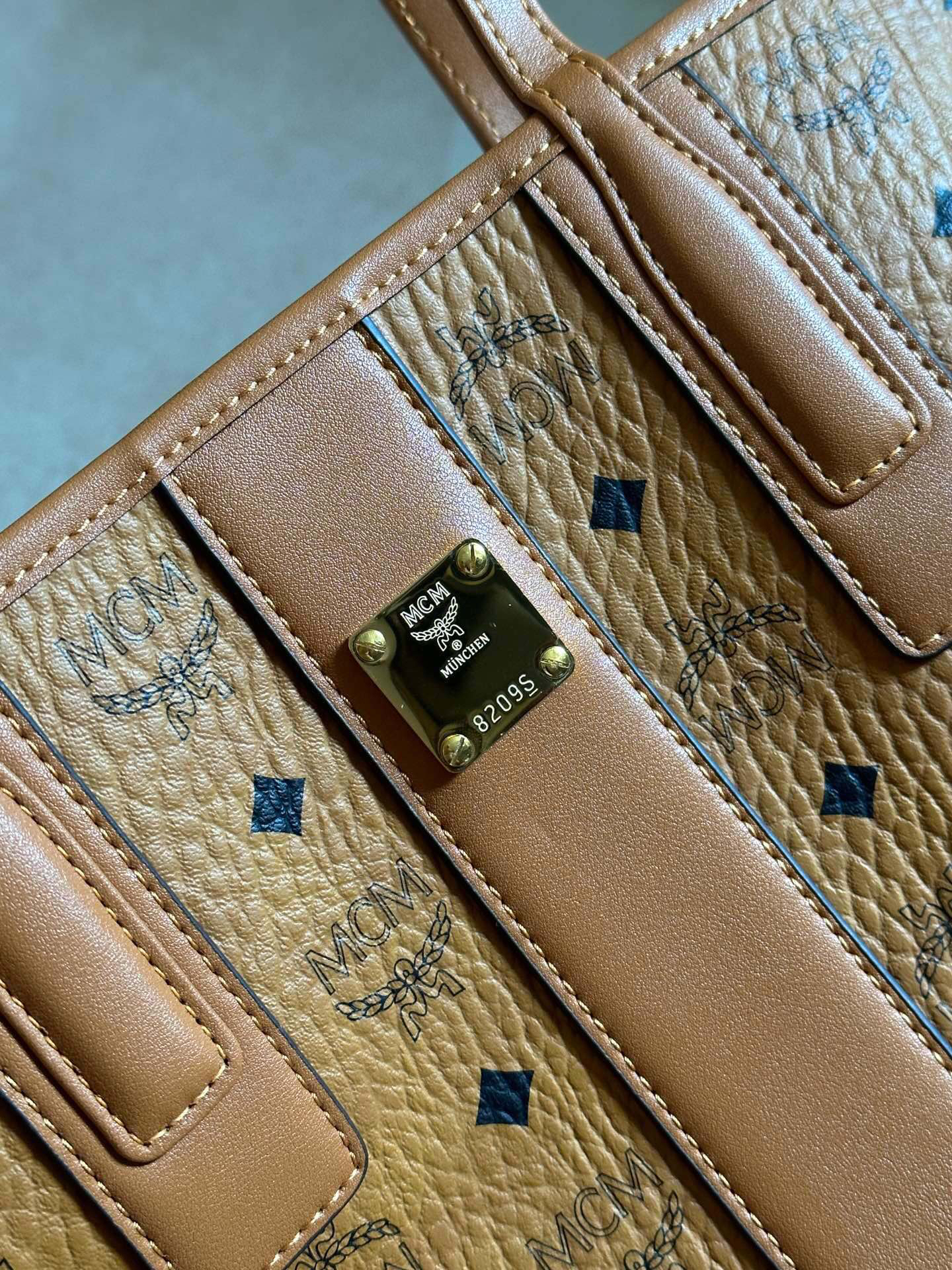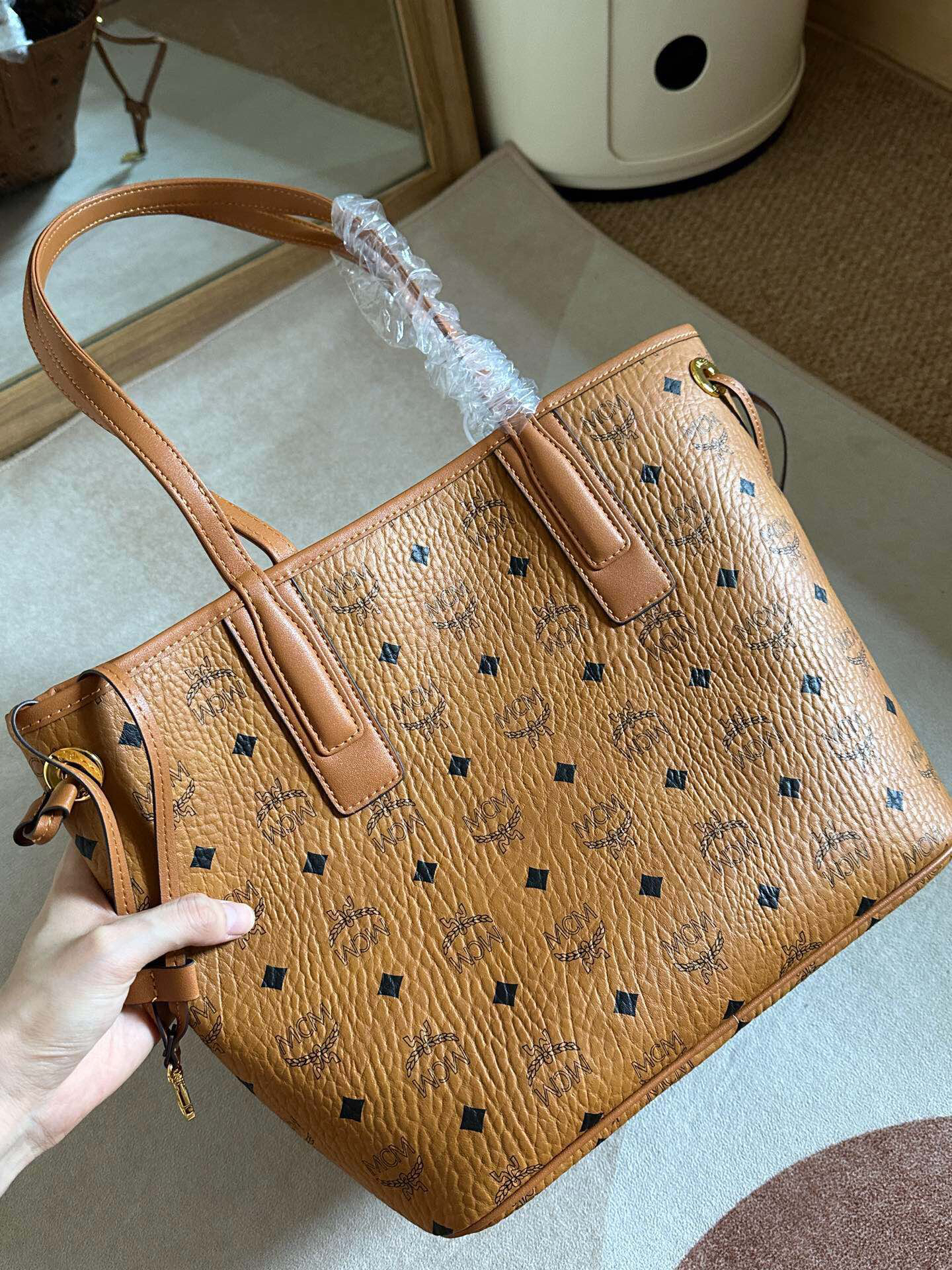 MCM品牌的Liz Visetos双面购物袋,货号6918 。MCM是德国的奢侈时尚品牌,以其标志性的印花和高品质皮革制品闻名,这款包是该品牌二合一的标志性单品。