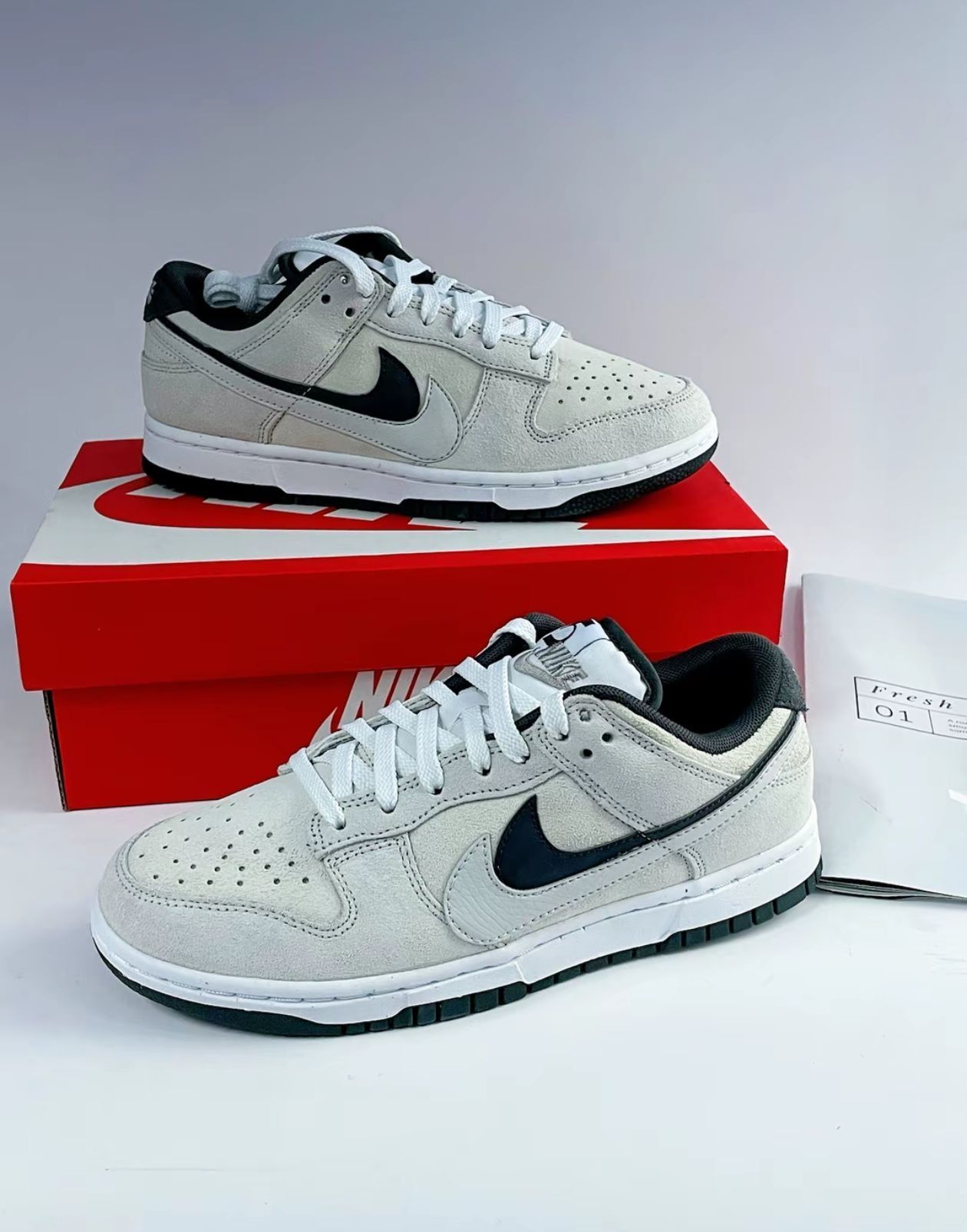 「双倍钩魂暴击」 左右双Swoosh叠buff!纯白皮革打底+灰粉双钩对撞,自带「Dunk界白月光」氛围感,上脚瞬间收割回头率 「踩云脚感+铁板鞋底」 升级EVA缓震鞋垫+翘头生胶底,实测滑板场呲杆稳如磐石,暴走2w步脚底板不罢工!通勤党/板仔闭眼入 「穿搭端水大师」 纯白底色+低帮设计,配工装裤秒变街头OG,搭碎花裙意外解锁甜酷风!