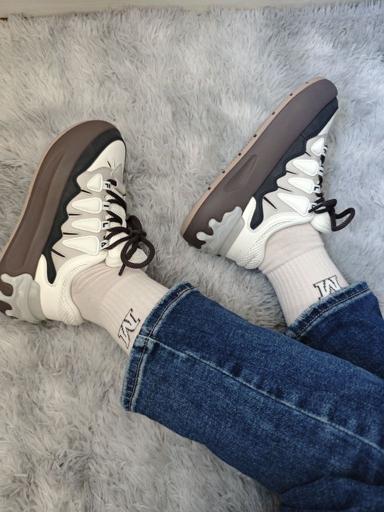 这个配色高级又复古,搭配牛仔裤穿太合适啦。 上脚增高效果明显,增高的同时又不显笨重。 鞋底是采用发泡科技,所以不用担心鞋子的重量。 整双鞋子是围绕萝卜的元素设计,脚后跟的渐变设计,好像融化了的糖果,想让人一口吃掉。 完全是长在我心巴上的一双鞋,现在这个季节穿正好。
