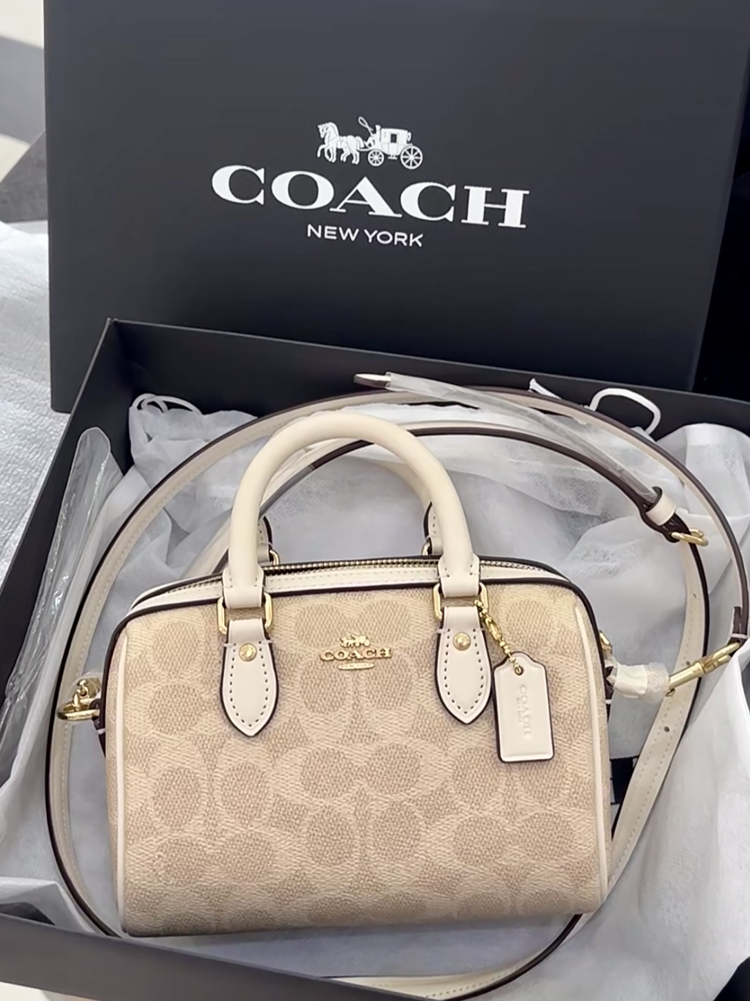 本篇笔记关联了Coach Rowan 18 小号 涂层经典老花印花拉链开合PVC拼皮单肩斜挎手提包 奶茶拼白等商品,为用户提供真实的使用体验和购买参考。