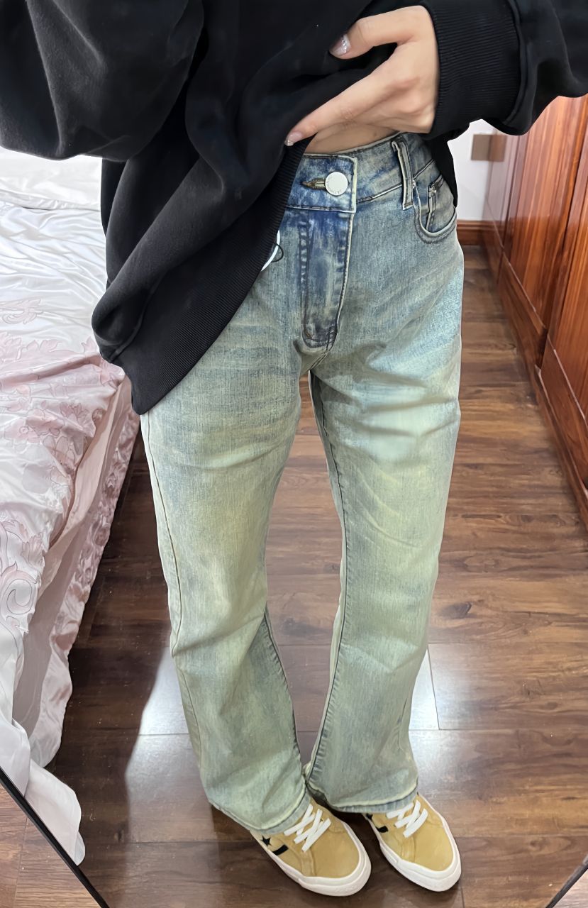 本篇笔记关联了【高杨同款】XINYINSU/新因素 美式水洗做旧弹力纽扣直筒微喇牛仔裤 X9025126 黄泥等商品,为用户提供真实的使用体验和购买参考。