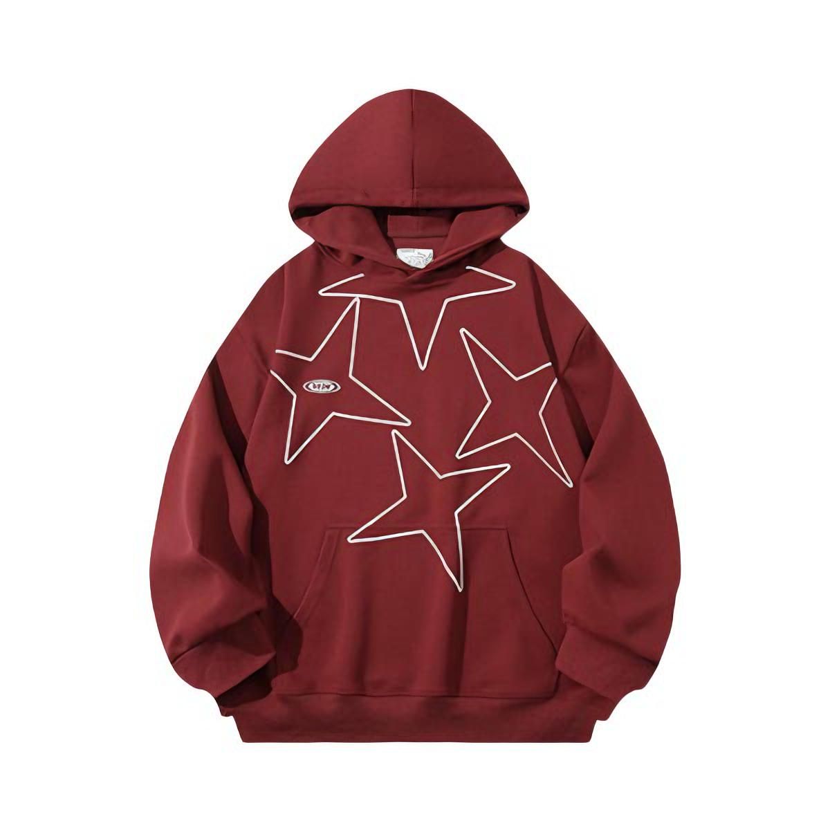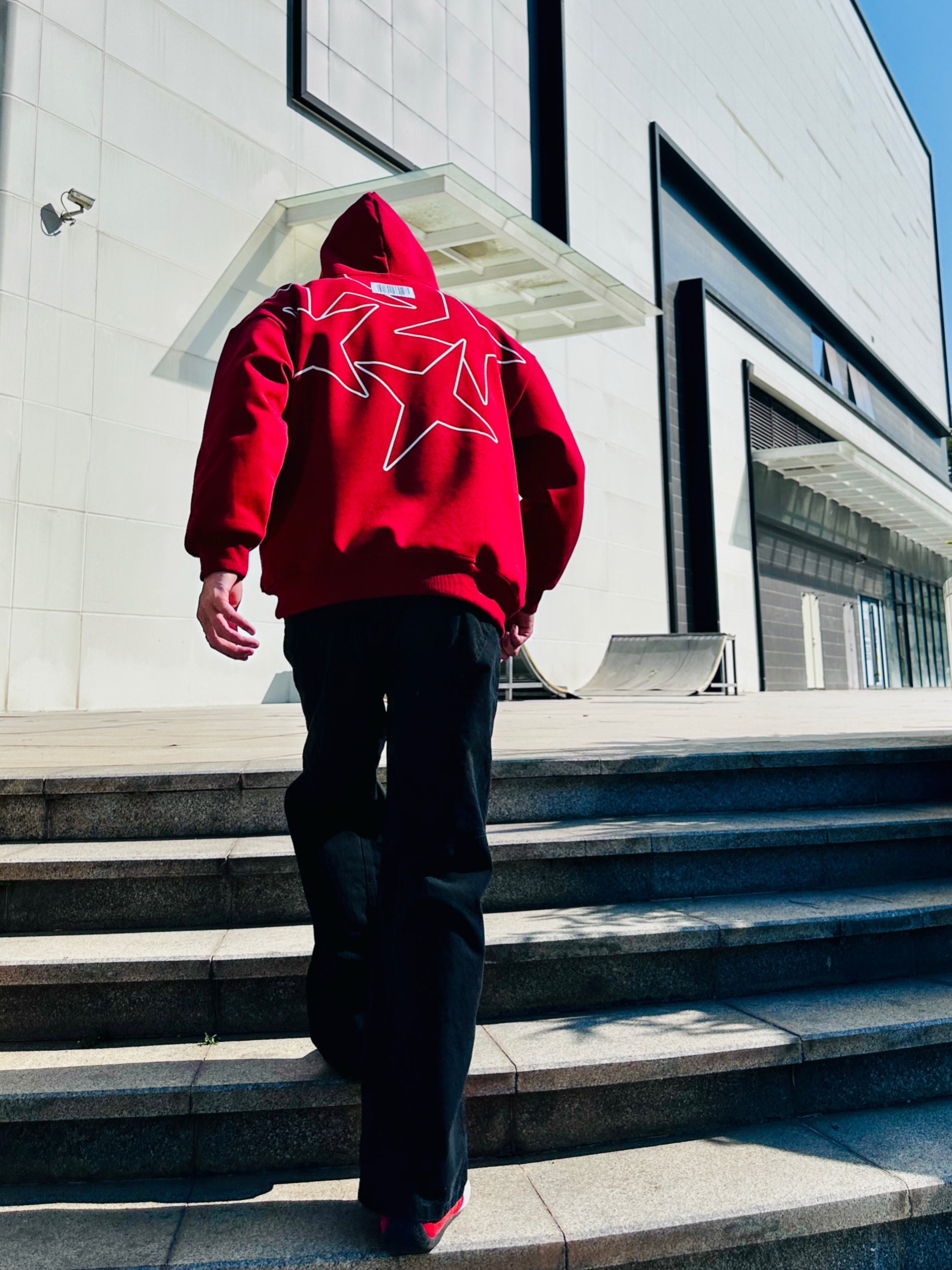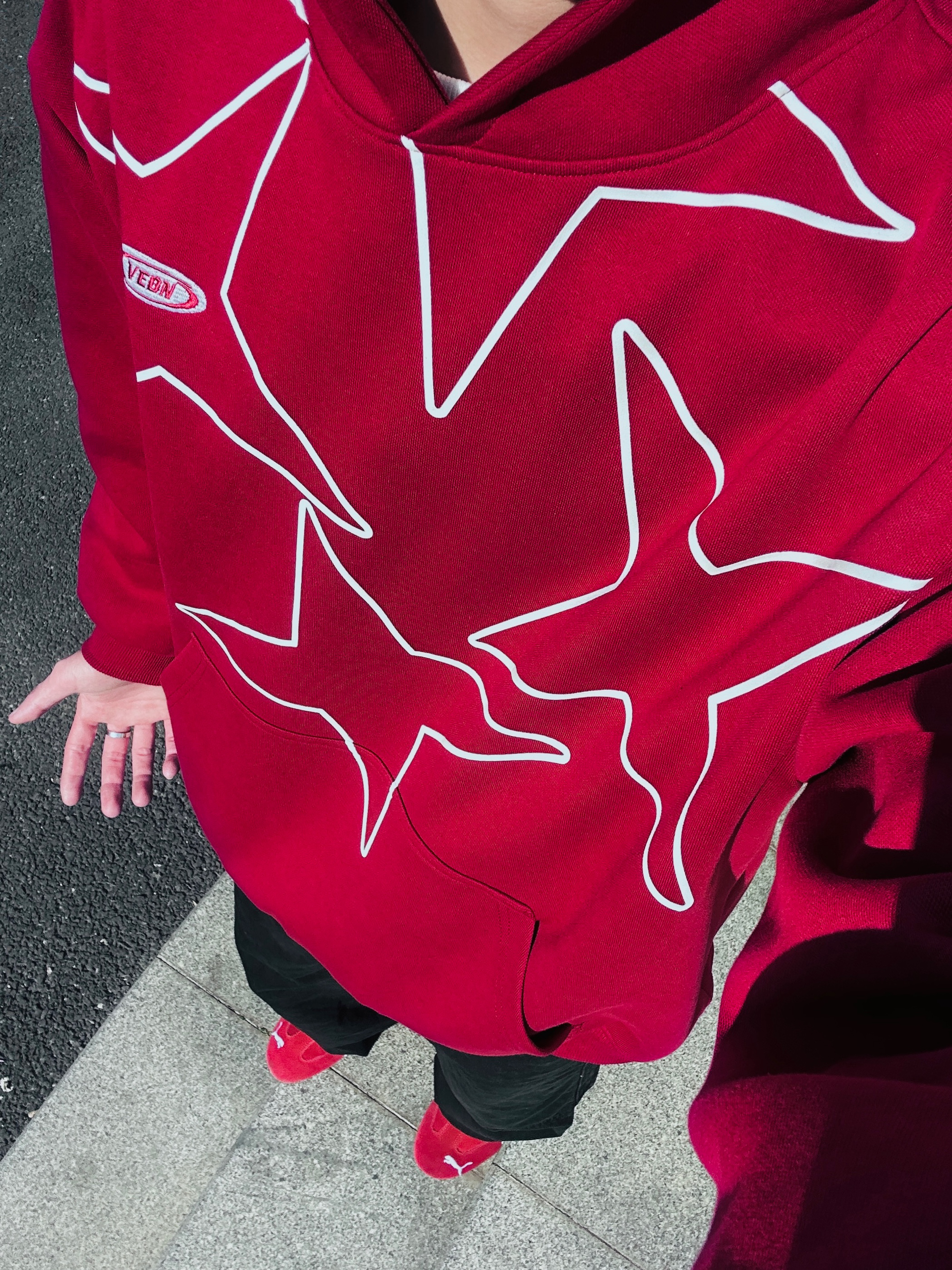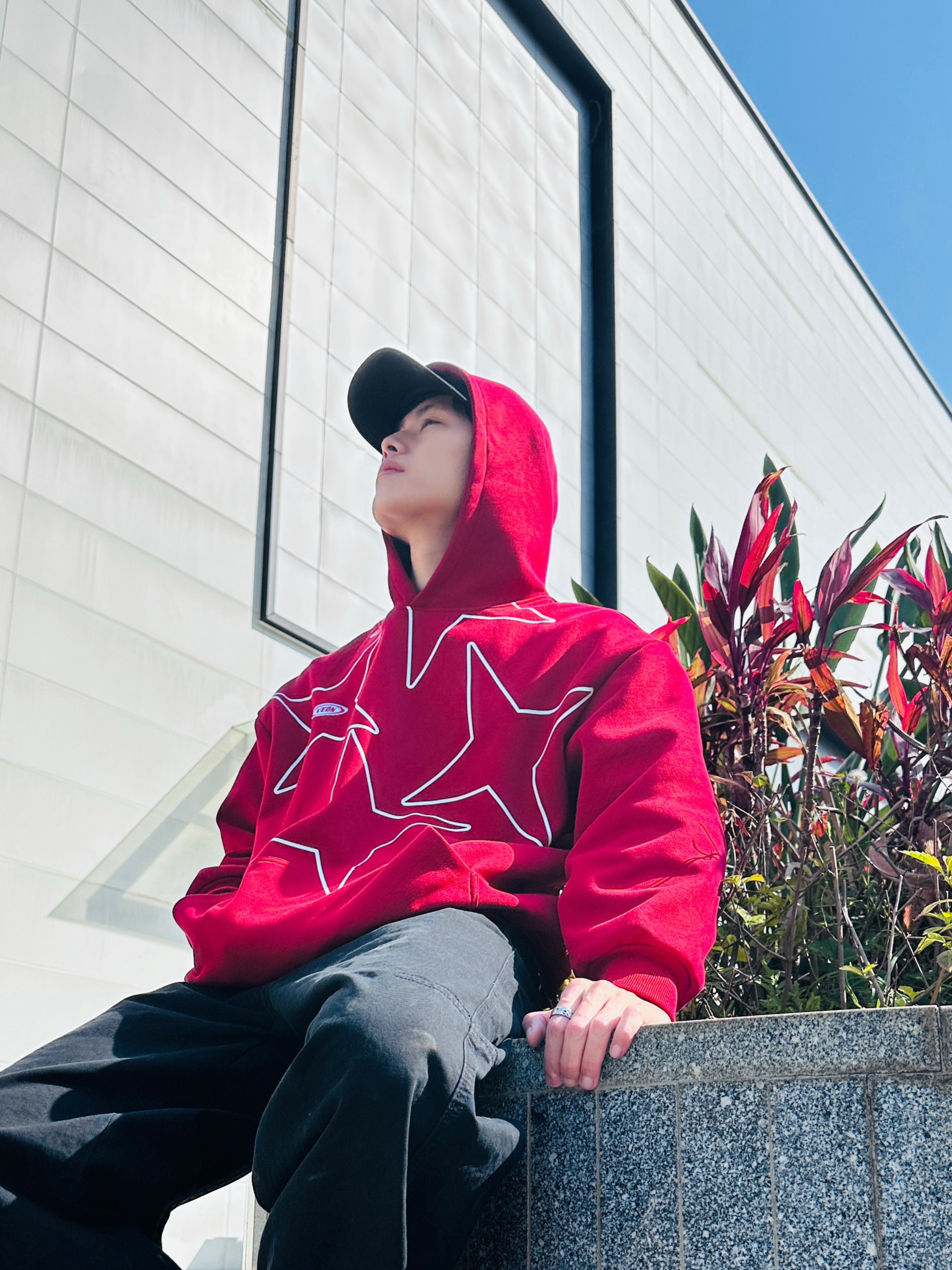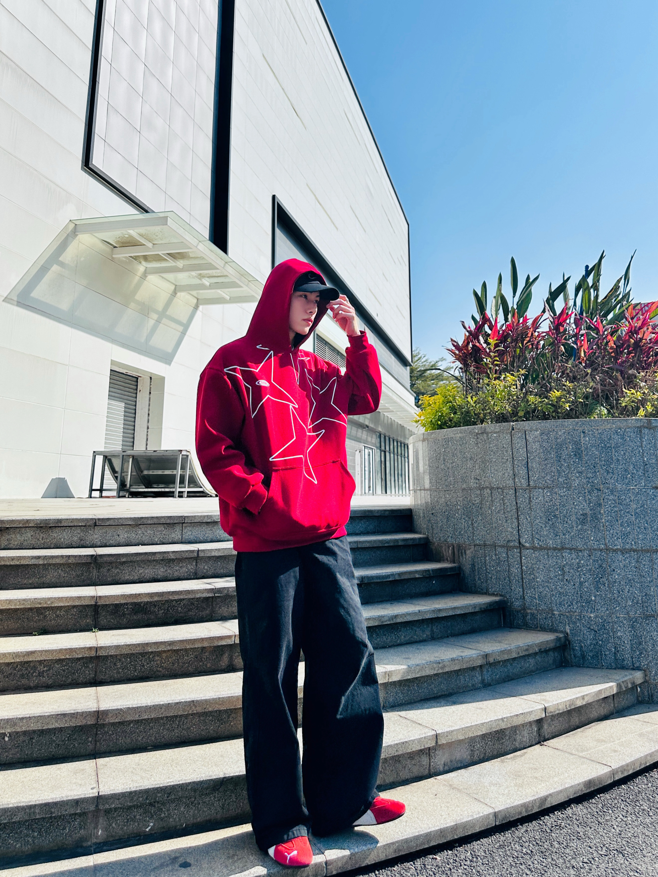 给春天一点颜色瞧瞧👀 穿着元气满满的 白维动 VEIDOORN 红色卫衣 给自己一个积极向上的心里暗示 版型正上身非常嘟美式风格 星星✨印花也好好看 穿上整个就是很舒服 下身选择黑色牛仔裤帅到没边哇 ➖ 尺码参考:180cm | 65kg穿XL码