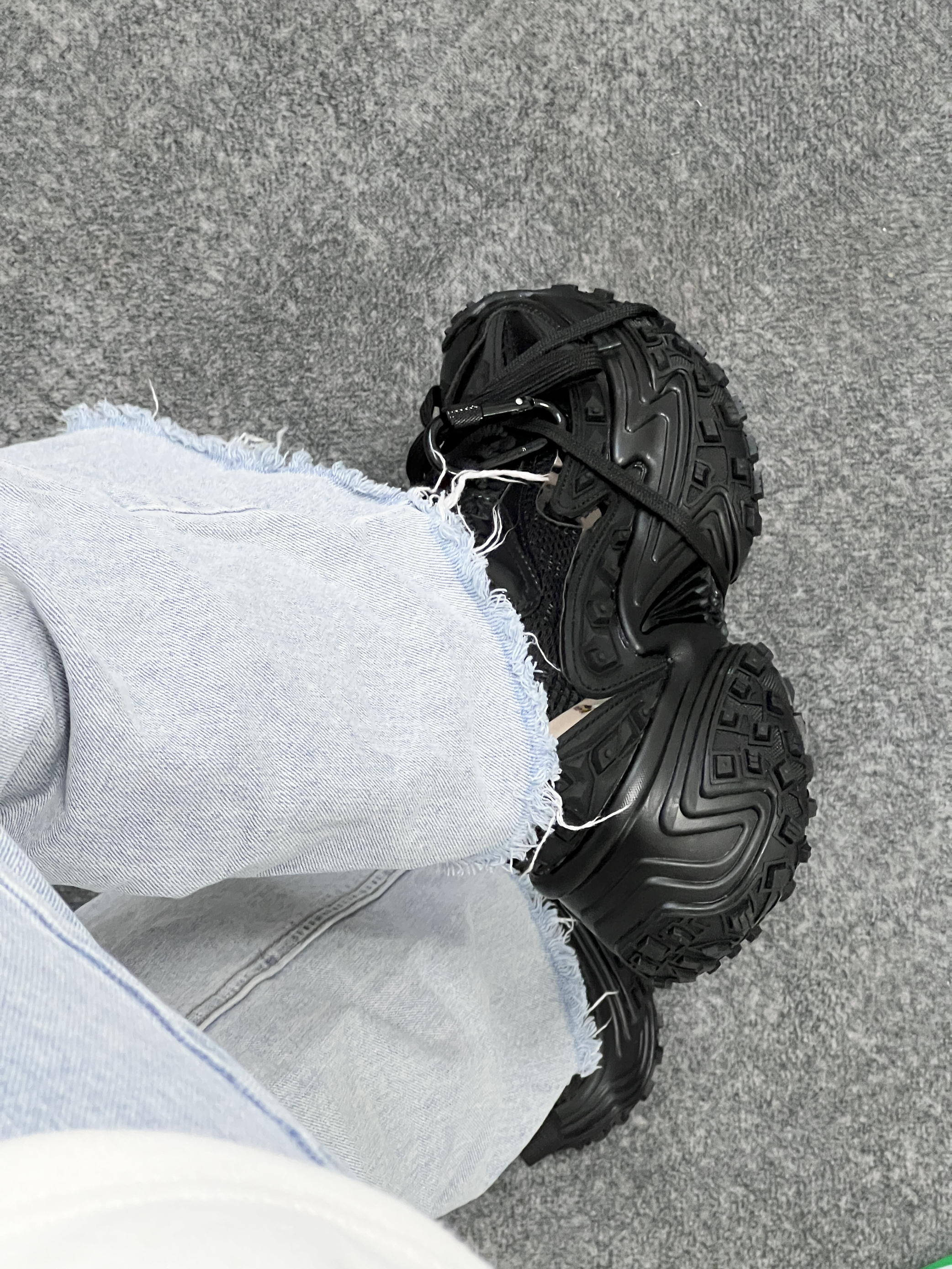 我后悔了 没早点入手这双轮胎鞋 这不妥妥的增高神器~ 对小个子简直不要太好 黑武士的配色敲酷的 平常简单配条阔腿裤 嘎嘎帅 ! 走路蛮舒服的 不会te显笨重 尺码正常 我按平常穿的选没问题 不过脚胖的建议大一码 ~ 鞋 鞋