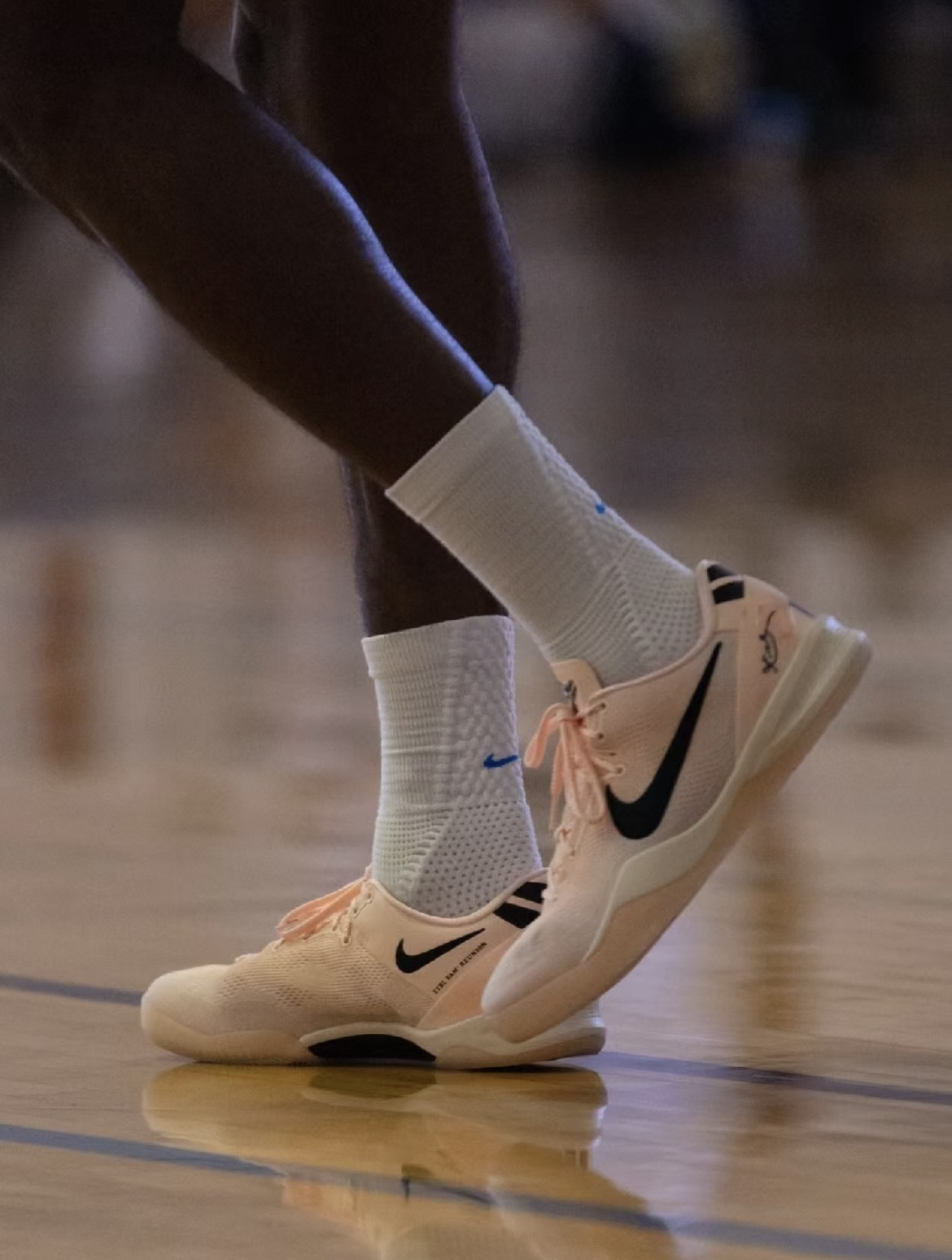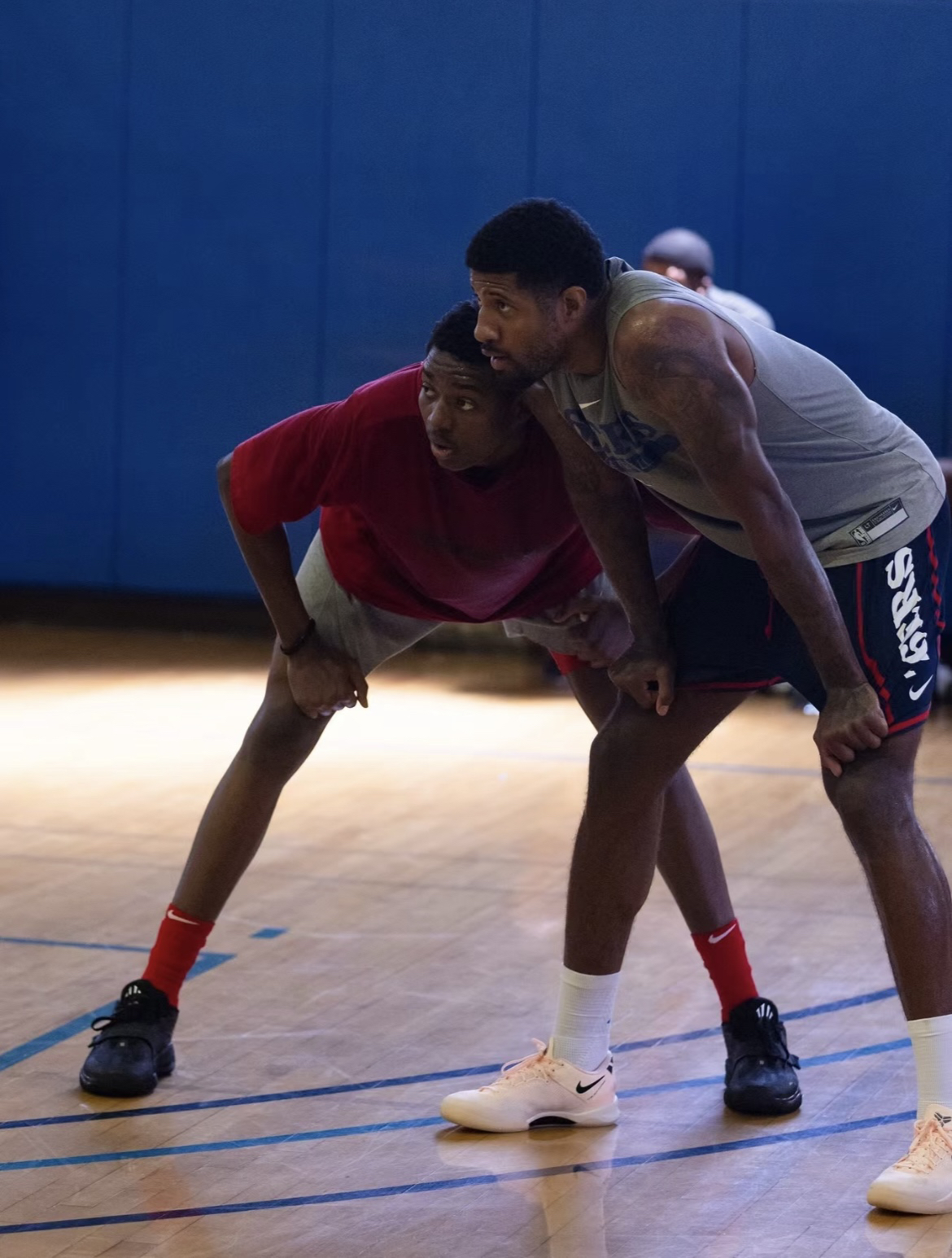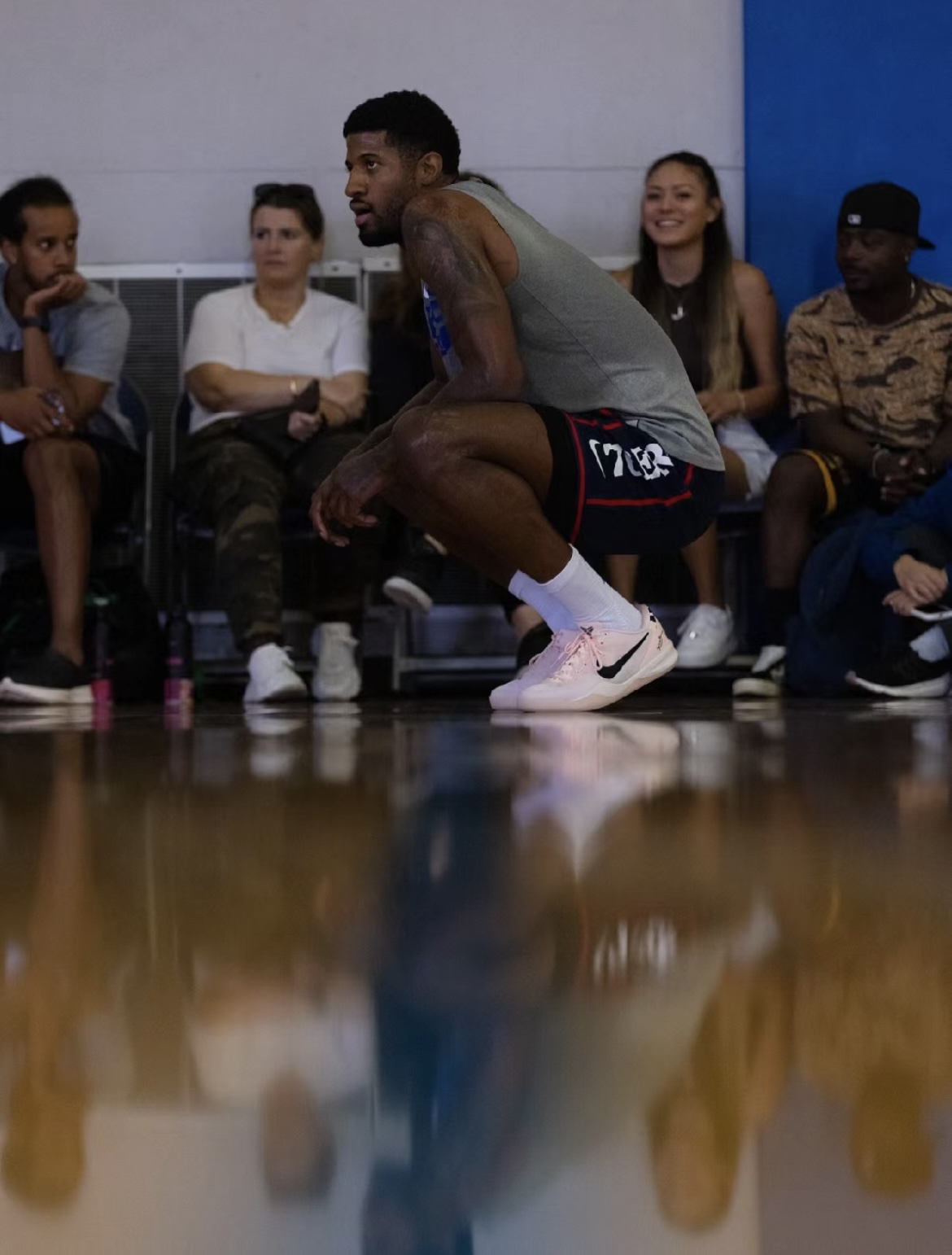 在之前结束中国行回国的保罗乔治再度开启训练,在这次训练对抗赛中,乔治再度穿上了科比系列球鞋,在一众黑人球员当中,这双闪亮樱花粉Kobe8代成为了全场焦点。 众所周知,作为耐克旗下众多大牌球星之一,乔治拥有者自己的签名球鞋Nike PG系列,如今已是出到第六代,然而乔治本人却是钟爱Kobe系列,私下训练中多次穿上科比球鞋打球。