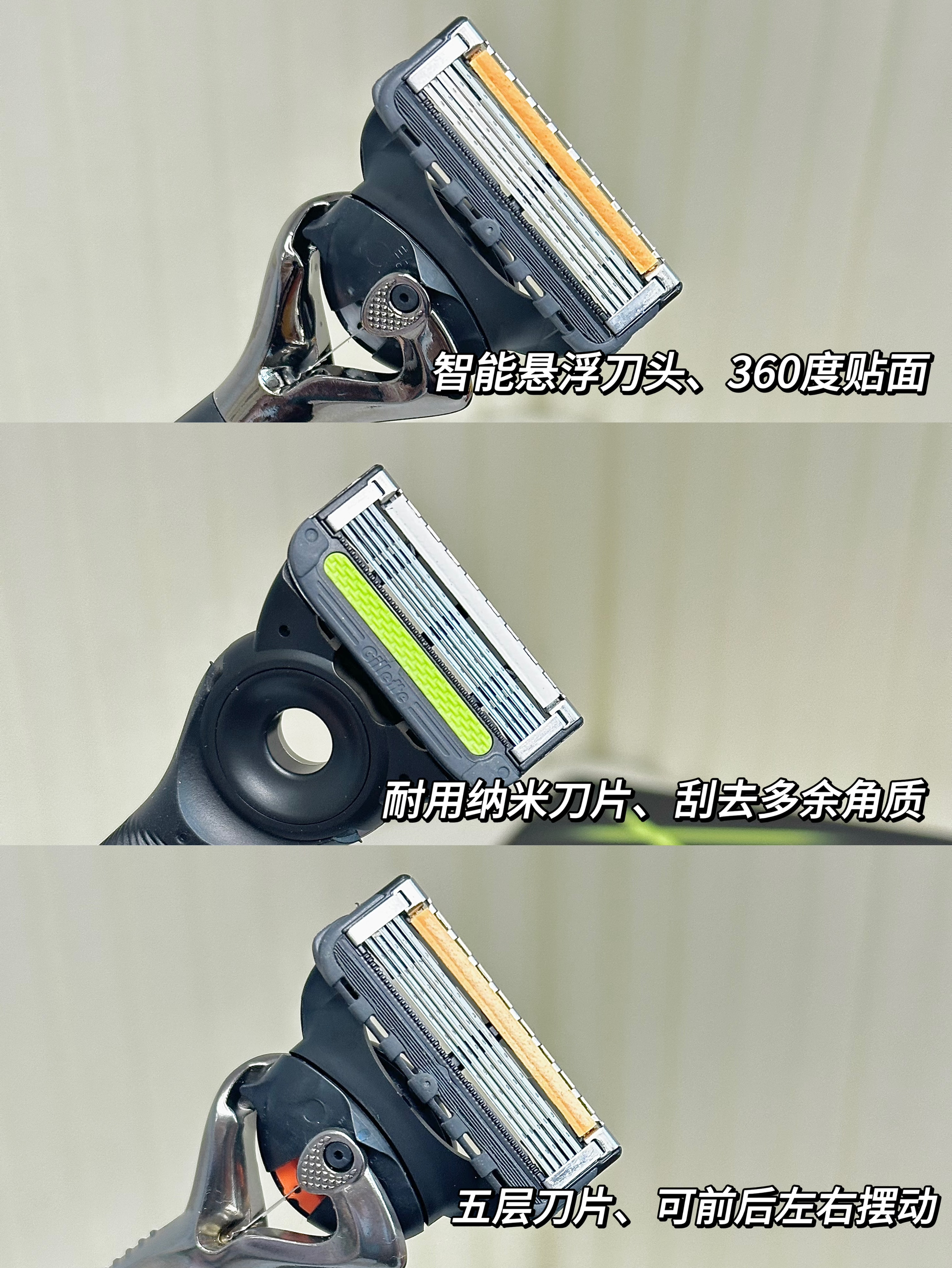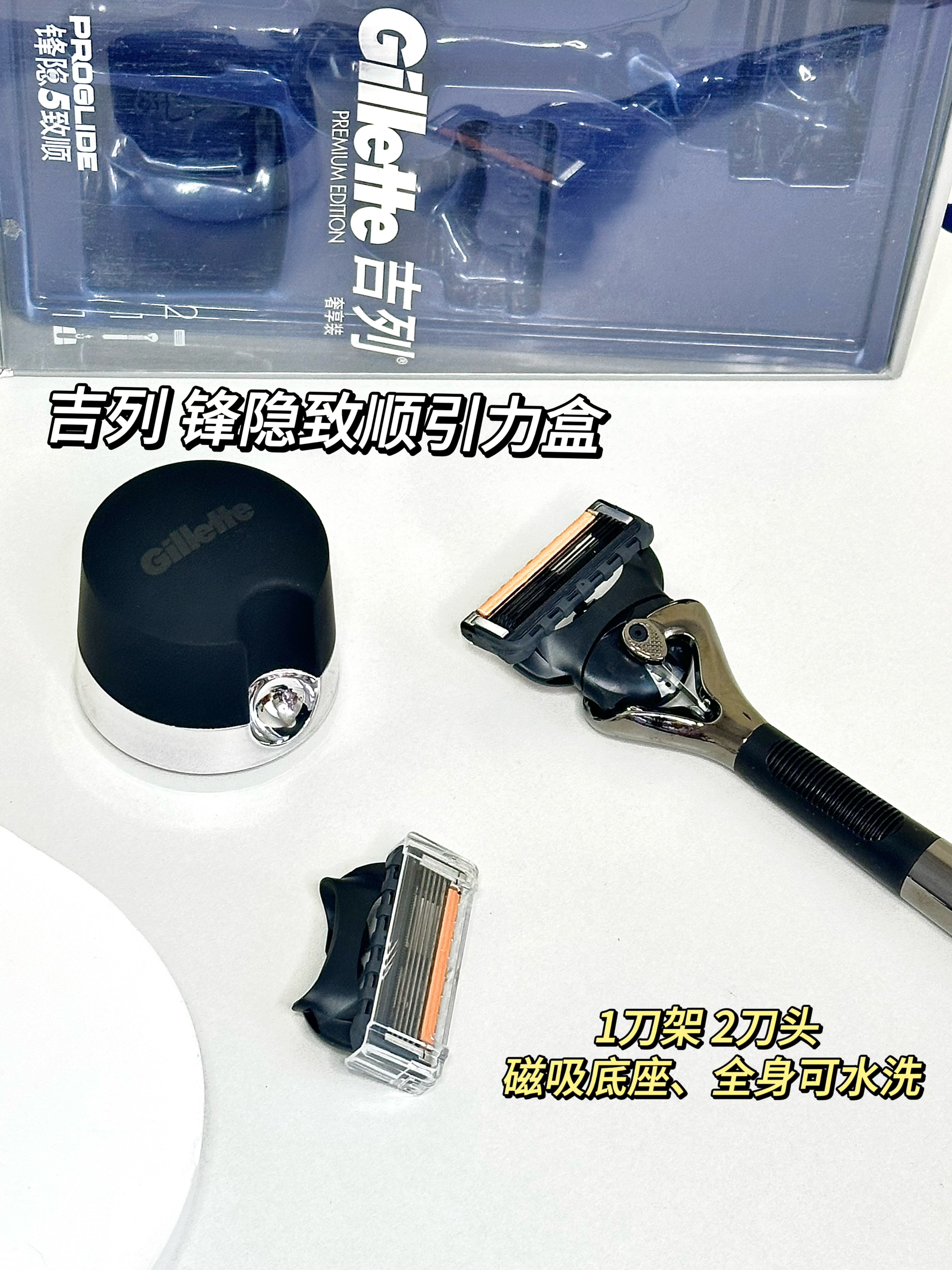 没人告诉我剃须刀也有这么多种类呀 听说手动的比电动用着方便 备选了三款手动的 大家帮我挑一挑 1️⃣吉列 锋隐致顺引力盒 1刀架 2刀头 磁吸底座 全身金属材质,拿在手里有分量有质感 2️⃣吉列 极光剃须刀 1刀架4刀头 圆盘底座 外盒很有设计感,旅行装出门很方便 3️⃣吉列 锋隐5致顺 1刀架4刀头1底座 塑胶手柄防滑效果好