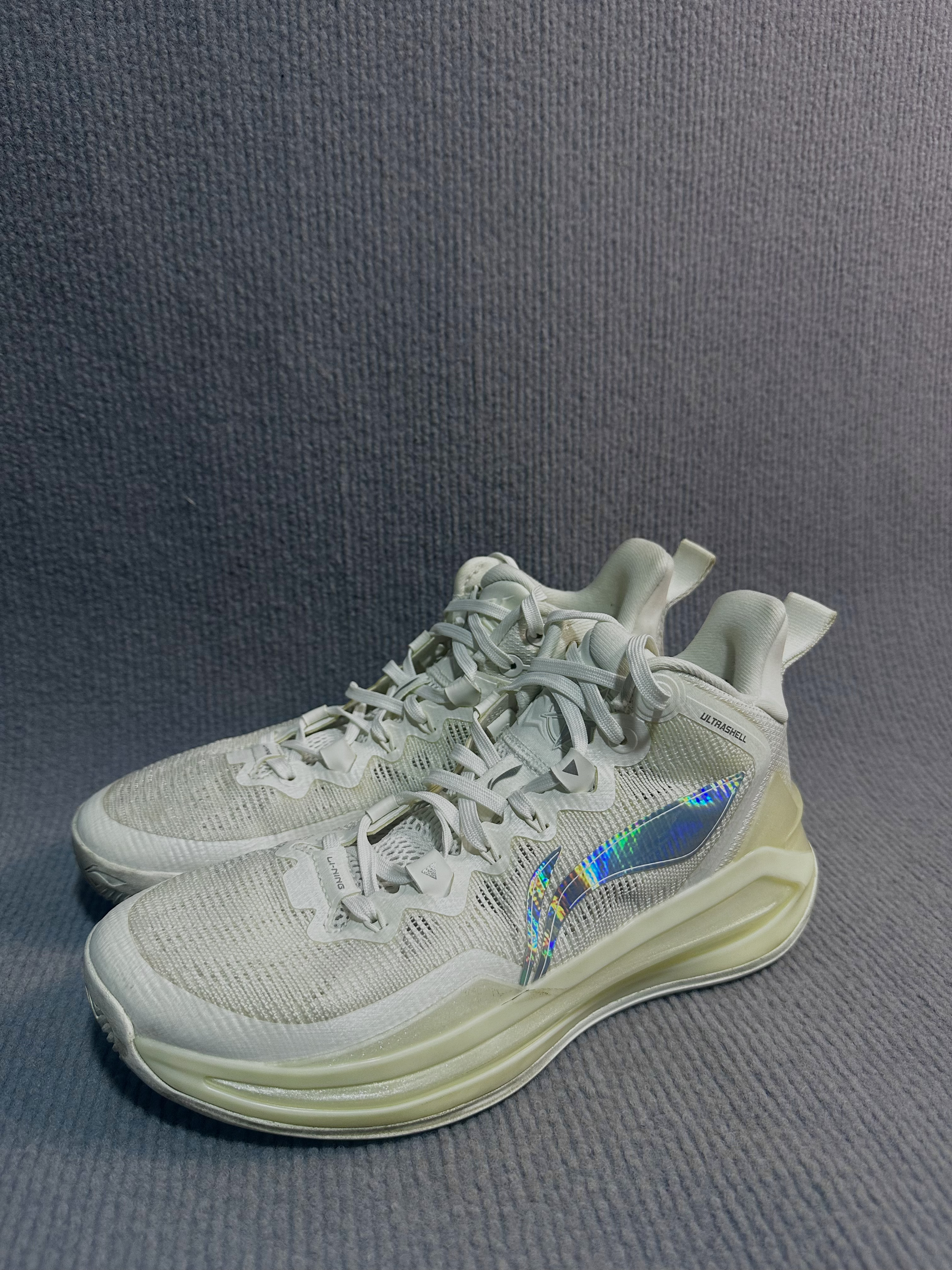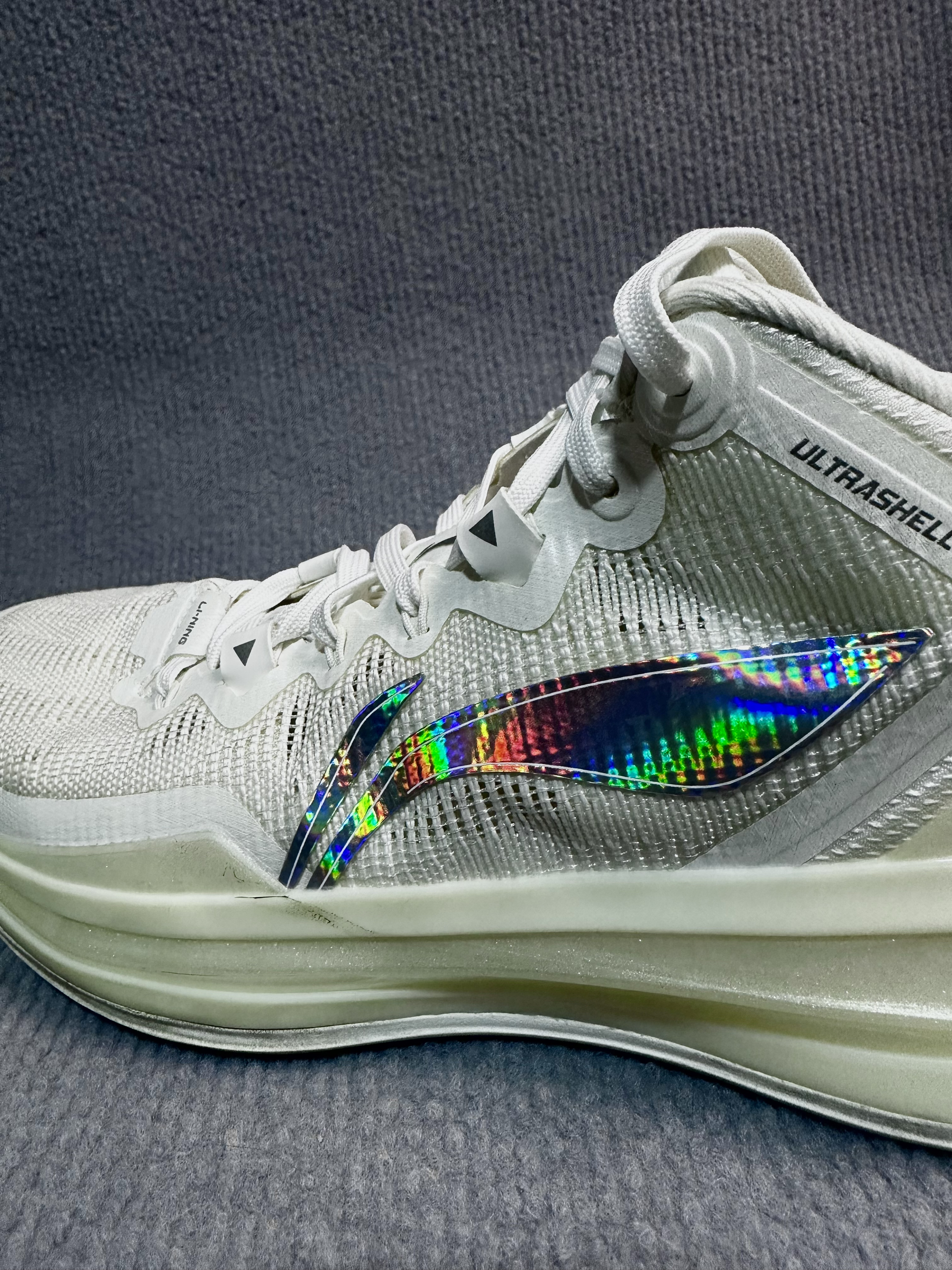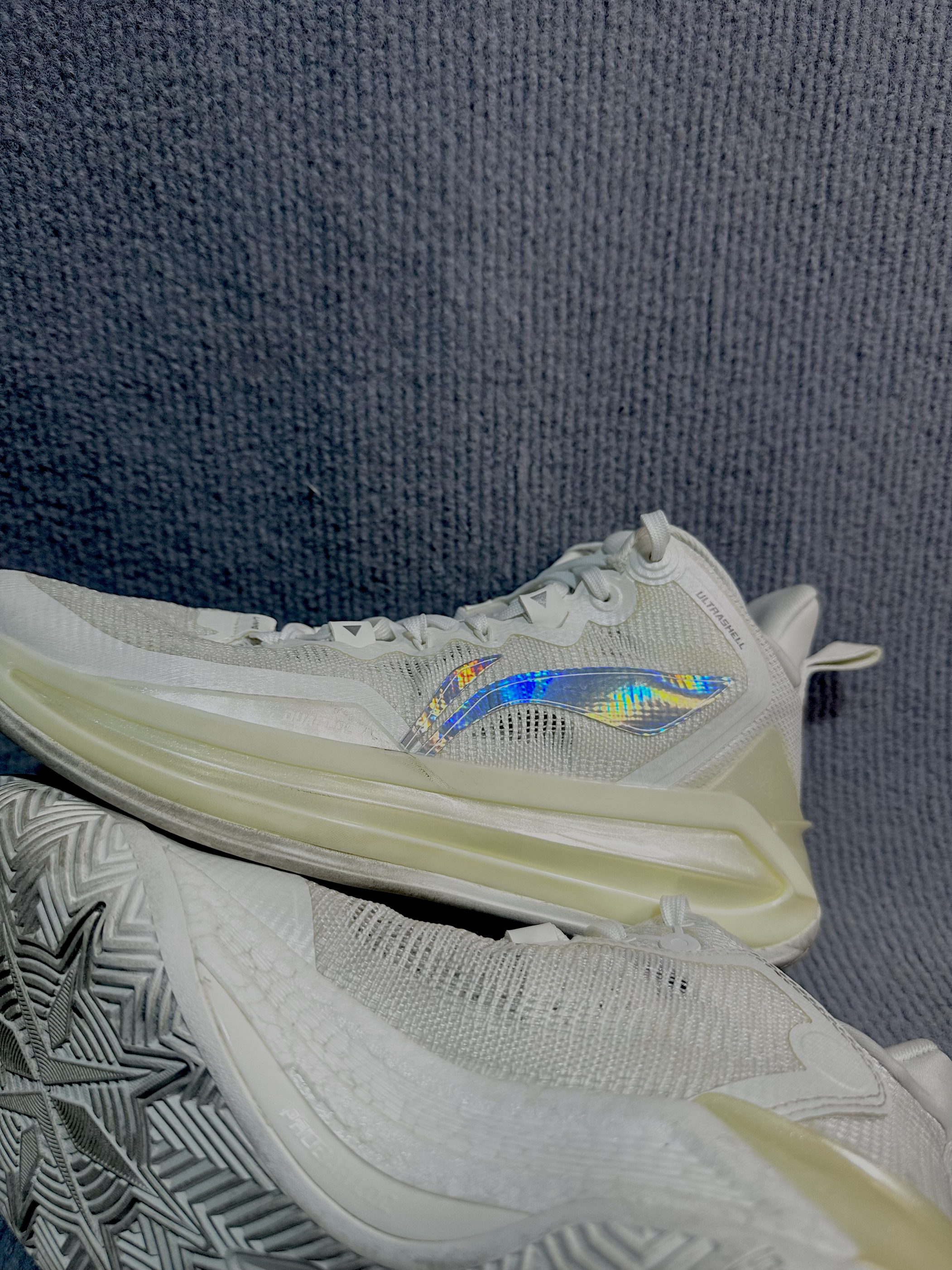 今天附上李宁利刃3代的实物图 李宁利刃3代篮球鞋,以全掌䨻轻弹科技中底带来出色缓震与能量回馈,外底多项人字纹toughrubber橡胶设计,抓地力强。轻质透气鞋面搭配TPU支撑,兼顾包裹与稳定,目前在3开,是一双具有性价比的实战口粮好鞋
