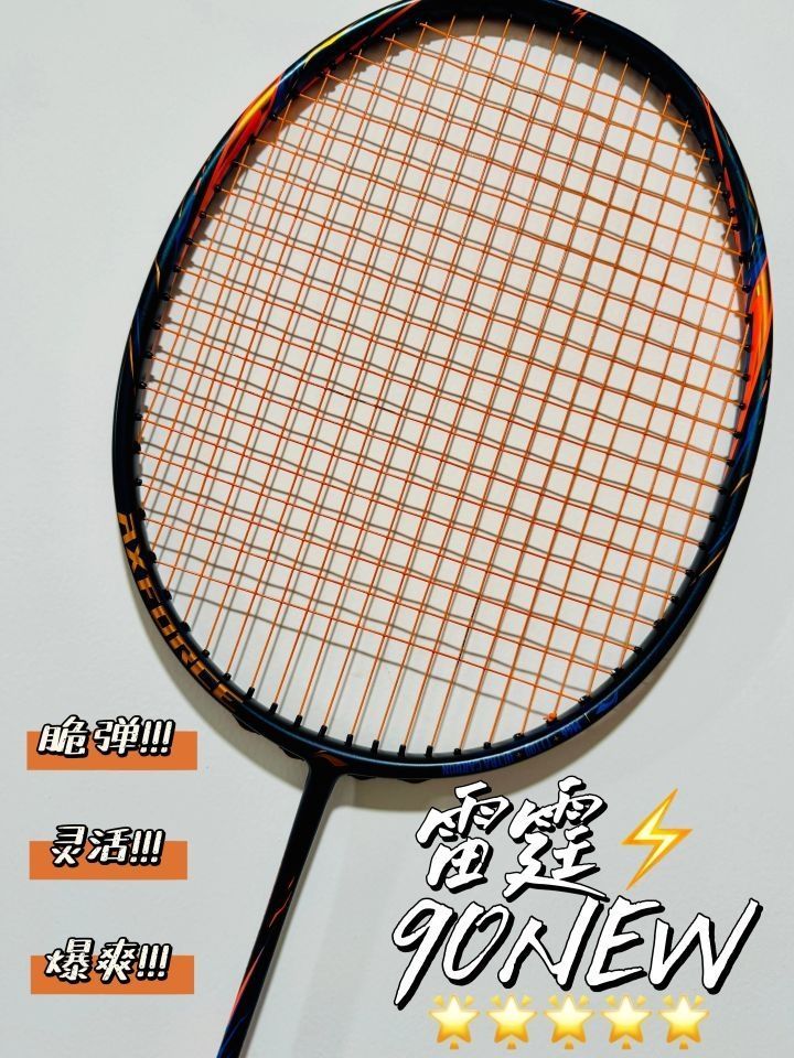 雷霆90NEW像是雷霆80+90虎的集大成球拍,类似90虎的连续进攻的迅猛,类似80的中杆硬弹感加强。拍头破风设计保证中前场快节奏进攻,小拍面和6.4的弹性中杆带来后场突击的扎实进攻。