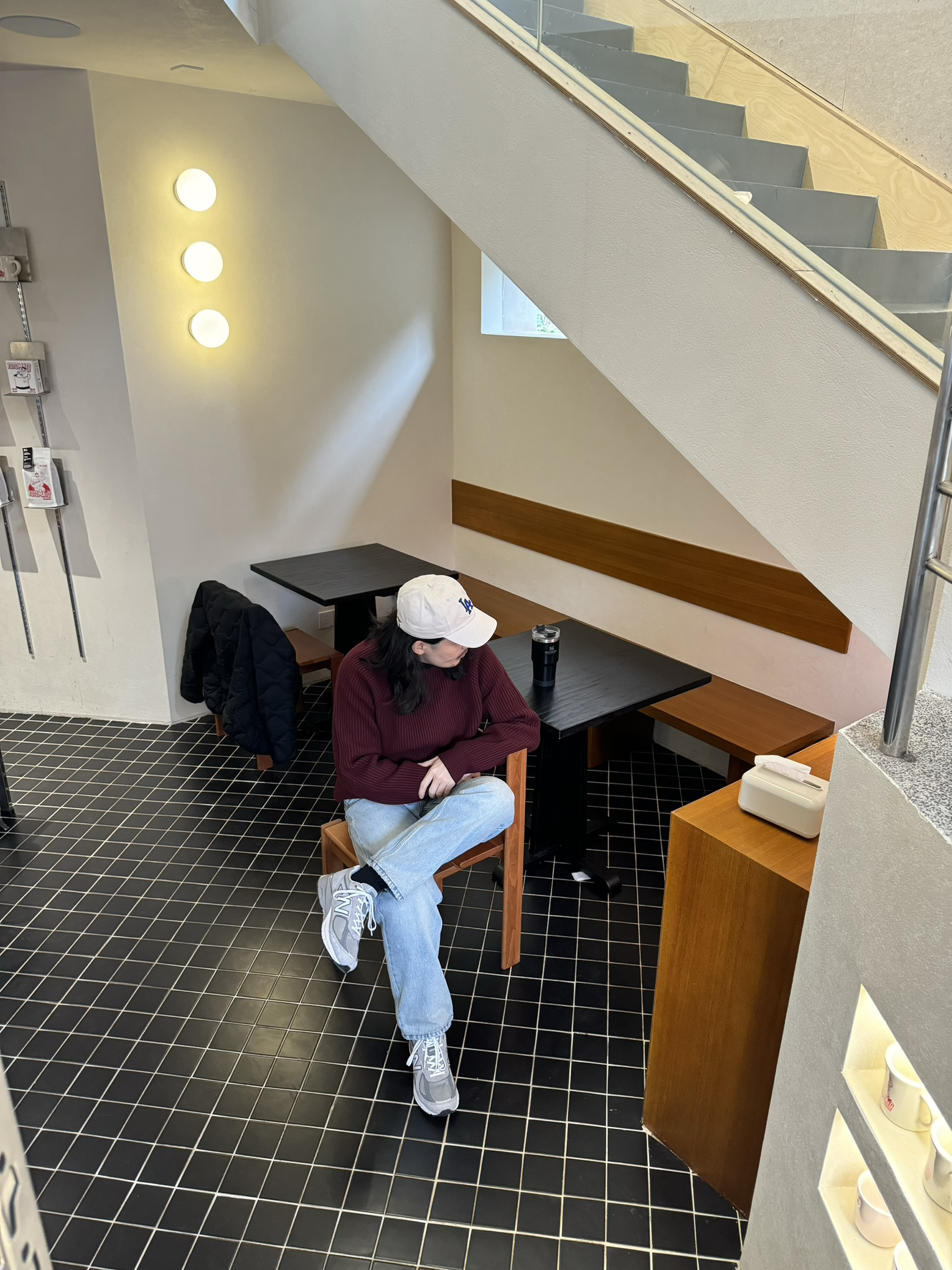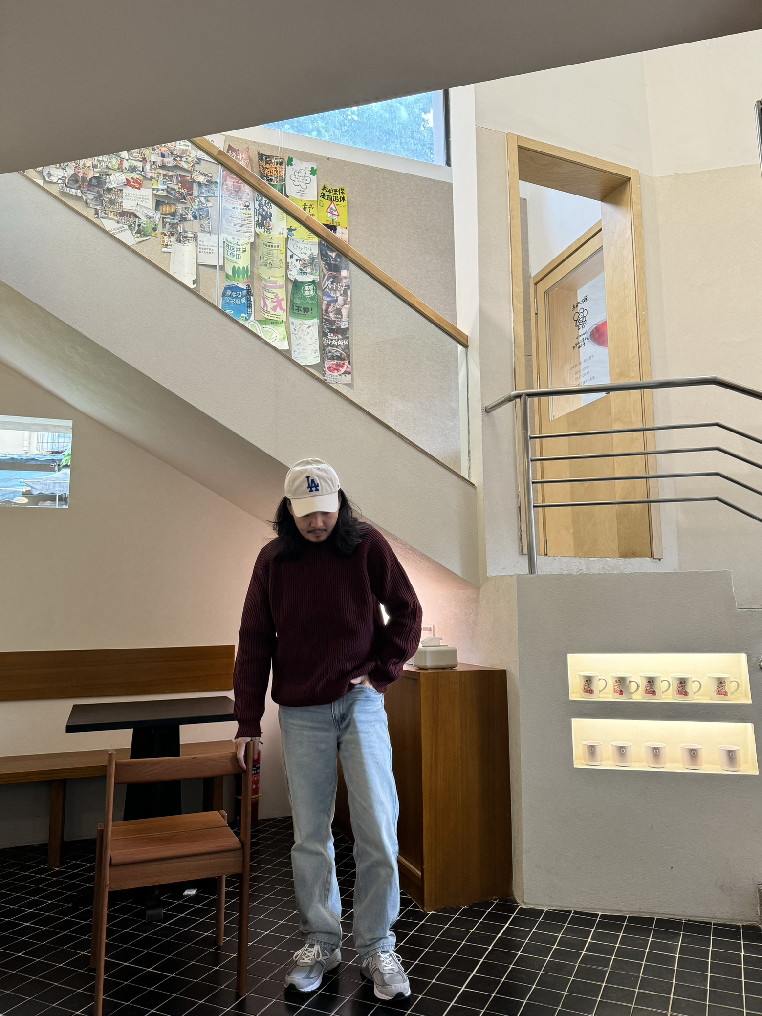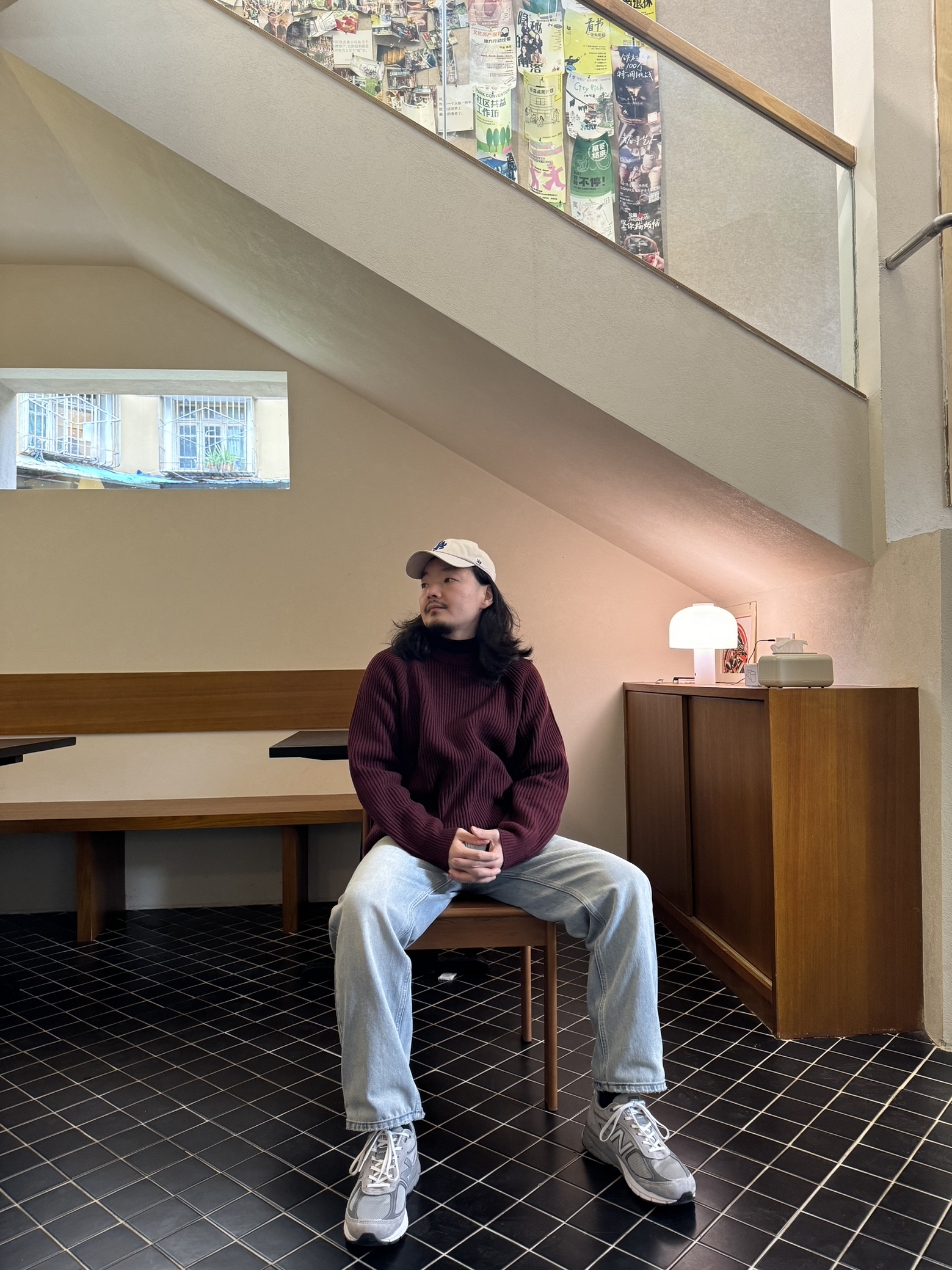 🧶🧶🧶 浅色系宽松牛仔裤搭配灰色990v4👟 上衣浆果红羊毛卫衣 米白色棒球帽 舒适 轻松 自在🆓