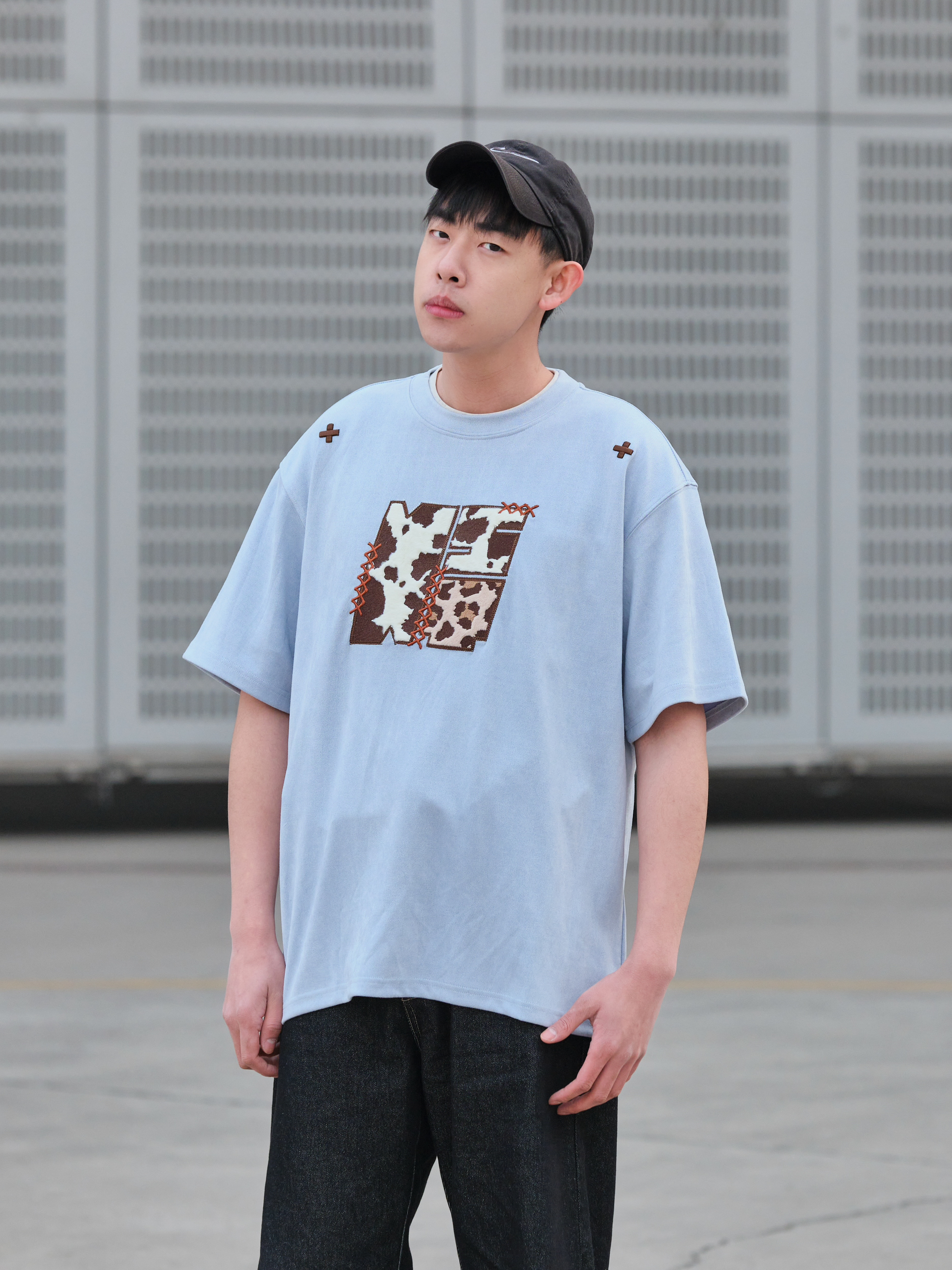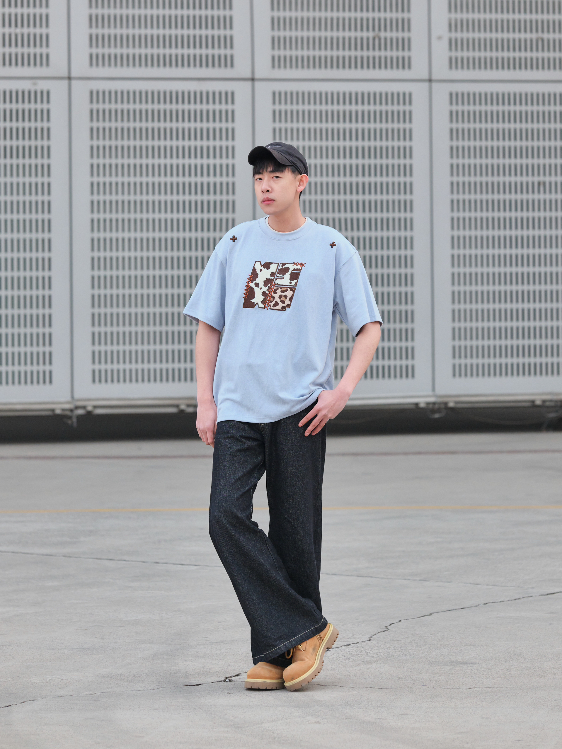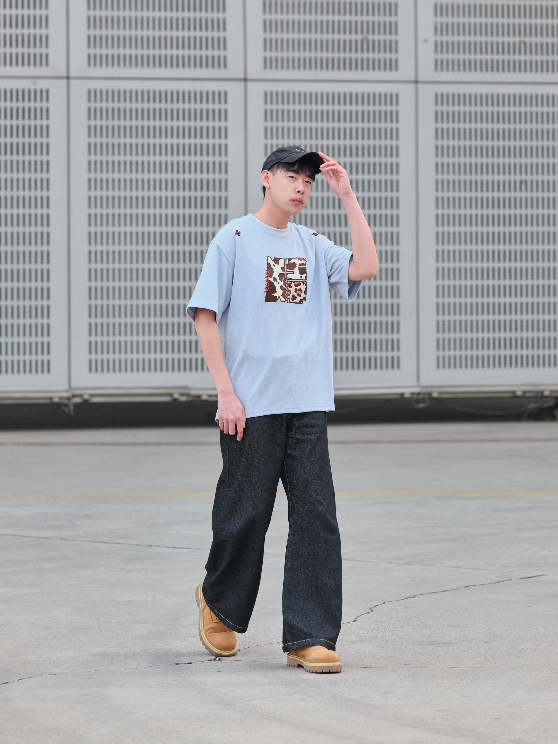哟!wassup!大家好 早春玩转牛仔元素🤠 今天也要当个清爽潮boy - 上半身的T恤来自NSTNEW START 麂皮面料垂坠感在线 自带慵懒buff 而且胸口logo很有特点 奶牛纹刺绣图案 有质感又精致 整体辨识度蛮在线 身高185 体重150 穿着XL - 搭配深色原牛和大黄靴 丰富穿搭的牛仔元素 一句话总结今日OOTD 「奶蓝麂皮T+深色牛仔+棕调配饰」 早春出街慵懒感穿搭模版