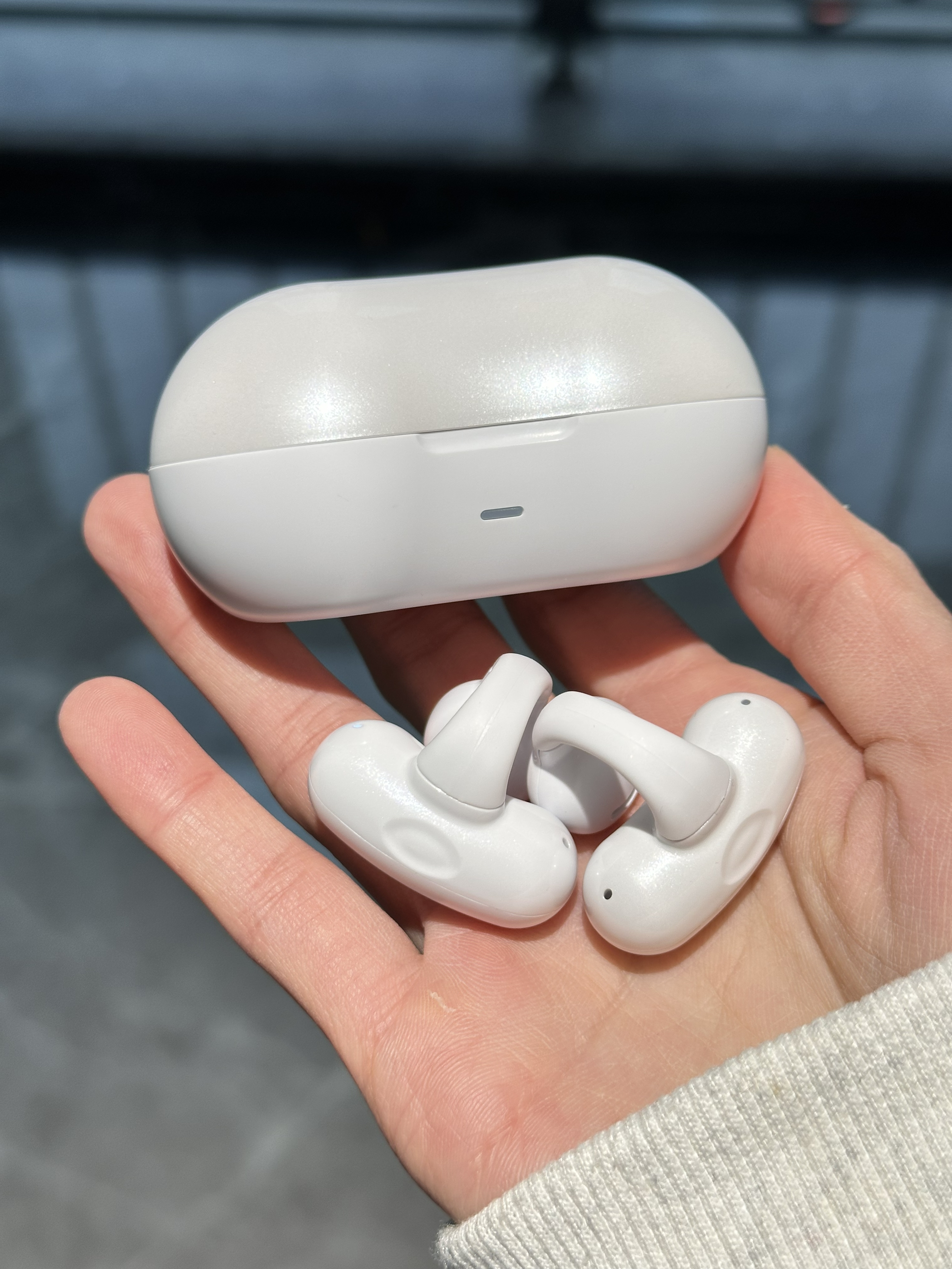 分享一下我的新耳机😉 颜值还挺高的 挂在耳朵上像耳饰一样 音质也很好,不会漏音 充一次电能用好久 以后听歌就用它啦~