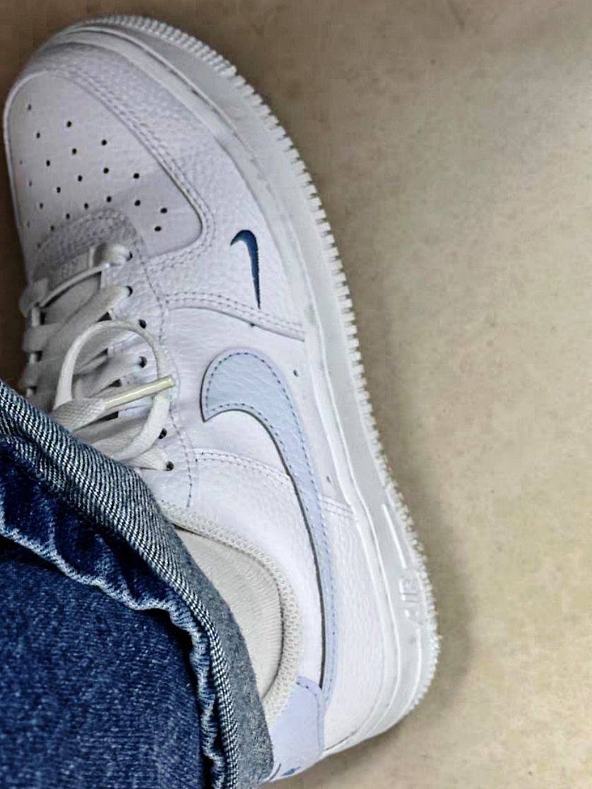Nike Air Force 1 Low 说到空军,百搭一定是它不可或缺的色彩,但白色空军大街上触目皆是,那么这双空军一定是你的不二之选。 淡蓝色的鞋标,旁边还有小标作为点缀,在保持干净的基础上又不会单调。
